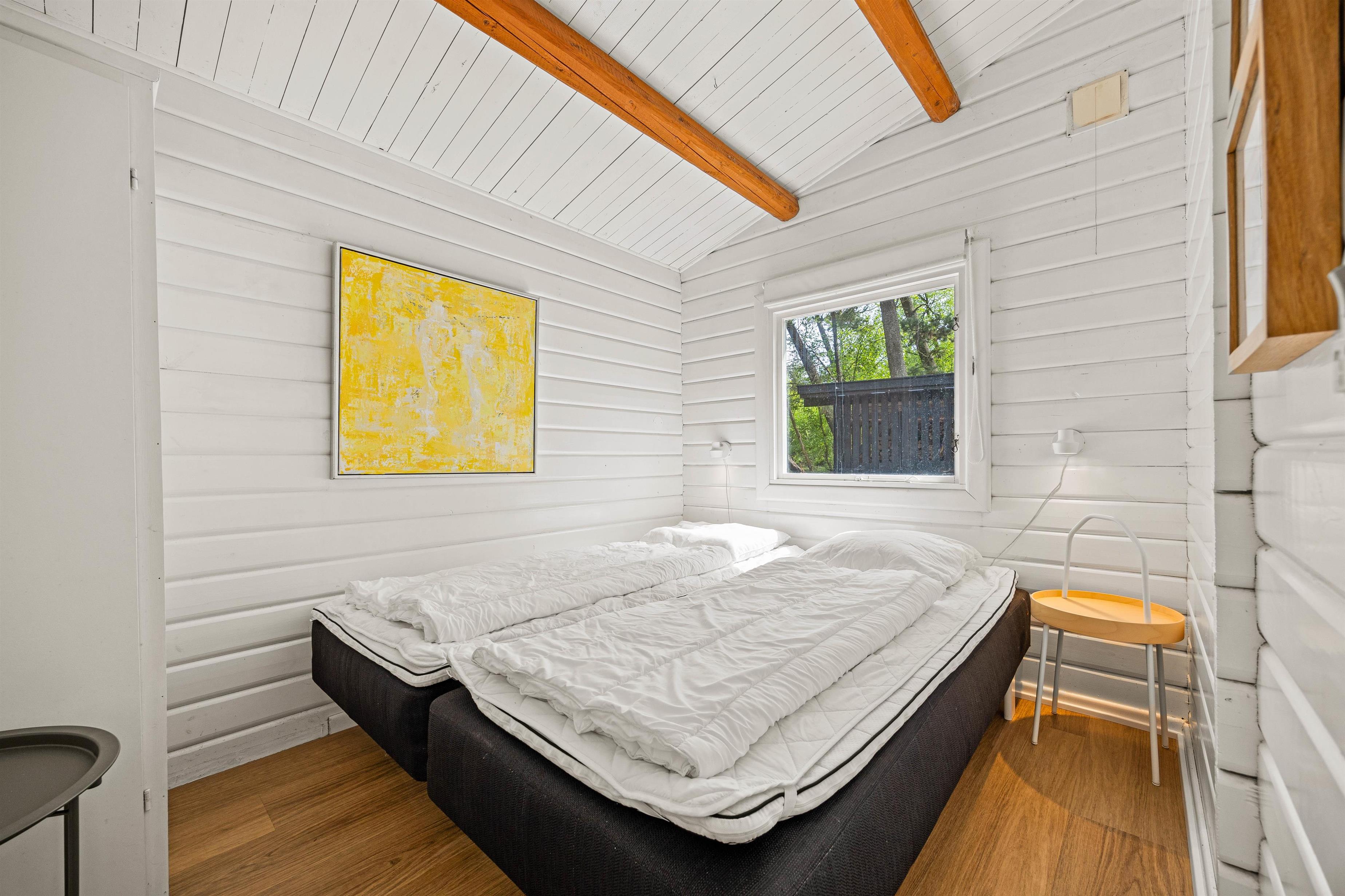 Det lille, klassiske sommerhus med de fritliggende loftsbjælker har fine trægulve samt et gennemtænkt indgangsparti, hvor I kan opbevare overtøj og fodtøj, og i stuen kan I tænde op i brændeovnen og få varmen på kølige sommeraftener. Køkkenet er udstyret med en opvaskemaskine, så I ikke skal tænke på at svinge opvaskebørsten.