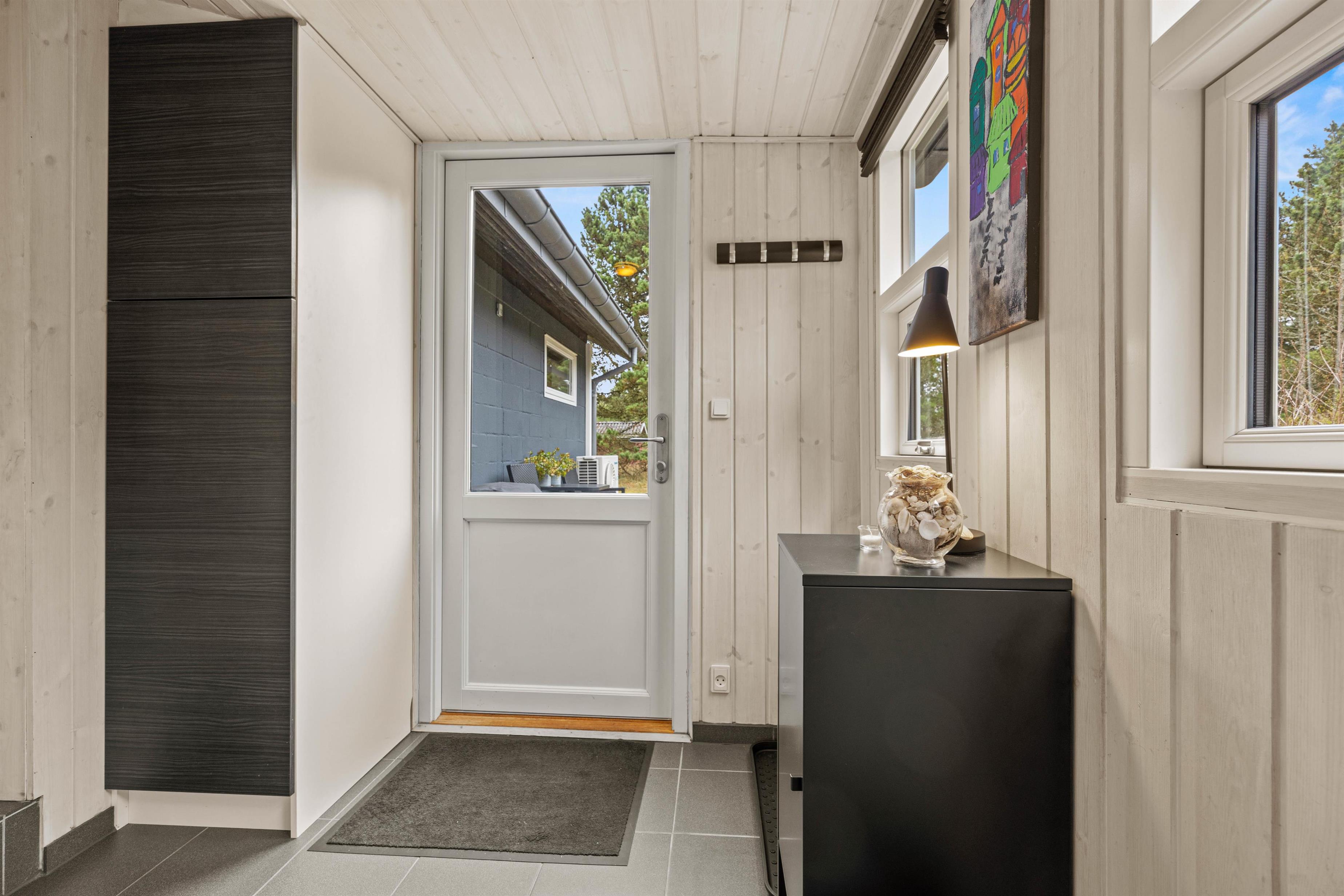 Allerede når du kommer ind i huset kan du mærke, at dette er et hus, hvor der er tænkt over tingene og sørget for det hele. Entreen er rummelig med god plads til sko og jakker. Hele huset er fint indrettet med sans for stil. De lyse trævægge og lofter sørger sammen med store vinduespartier for den rette kombination mellem lys og hygge.