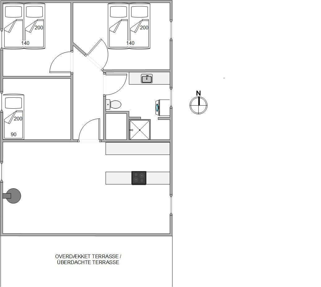 Det lille køkken er udstyret med en opvaskemaskine, som tager opvasken for dig, og en 70-liters fryser står også til rådighed for dig, hvis du gerne vil fryse en større mængde mad.