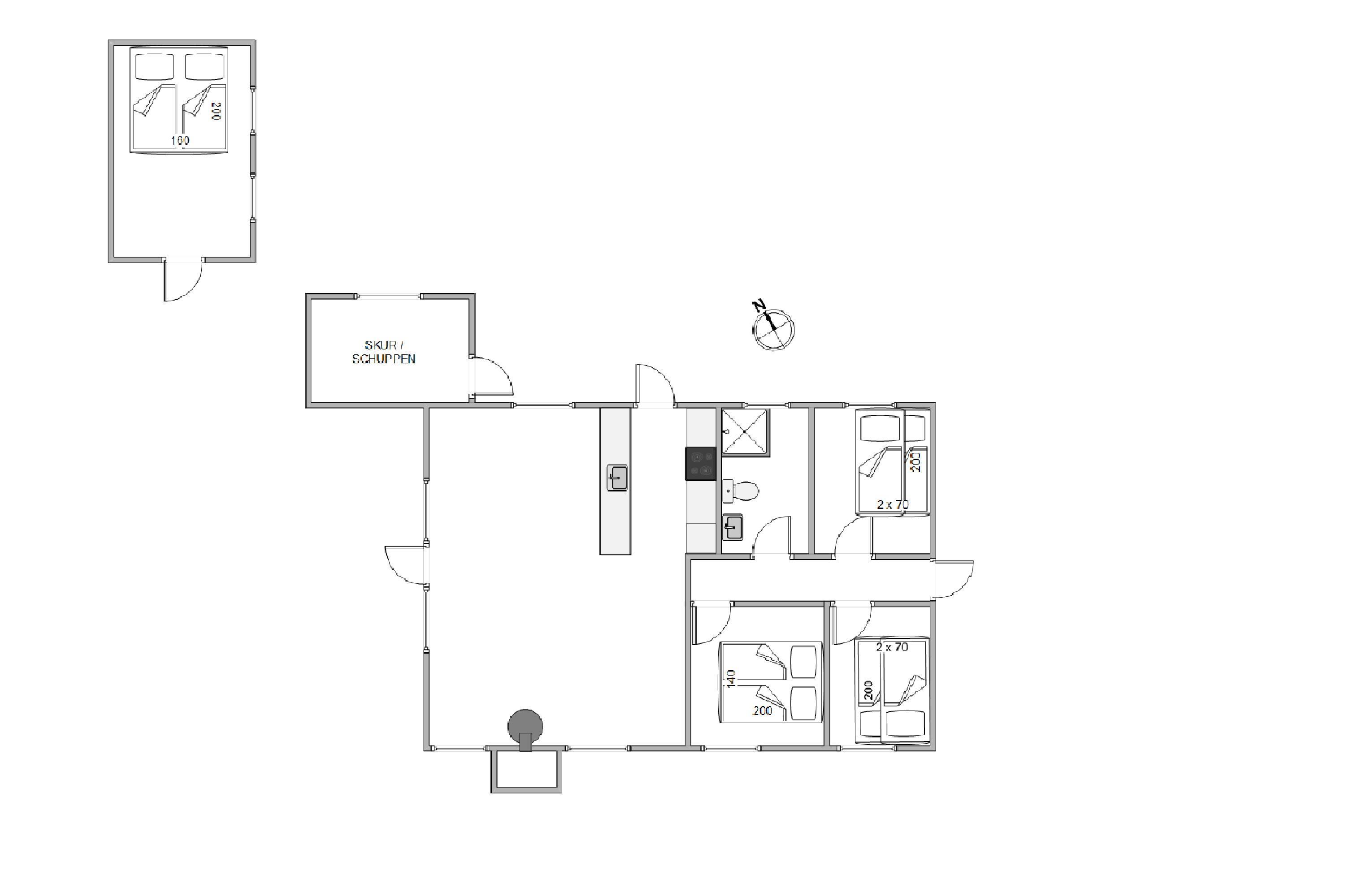 Sommerhusets 65 kvadratmeter byder desuden også på 3 soveværelser, som I kan søge mod om aftenen, så I kan få samlet ny energi til næste dag. På det ene soveværelse er der 1 dobbeltseng, mens der på hvert af de 2 andre soveværelser er 1 etageseng. Derudover er der ekstra sovepladser i annekset.