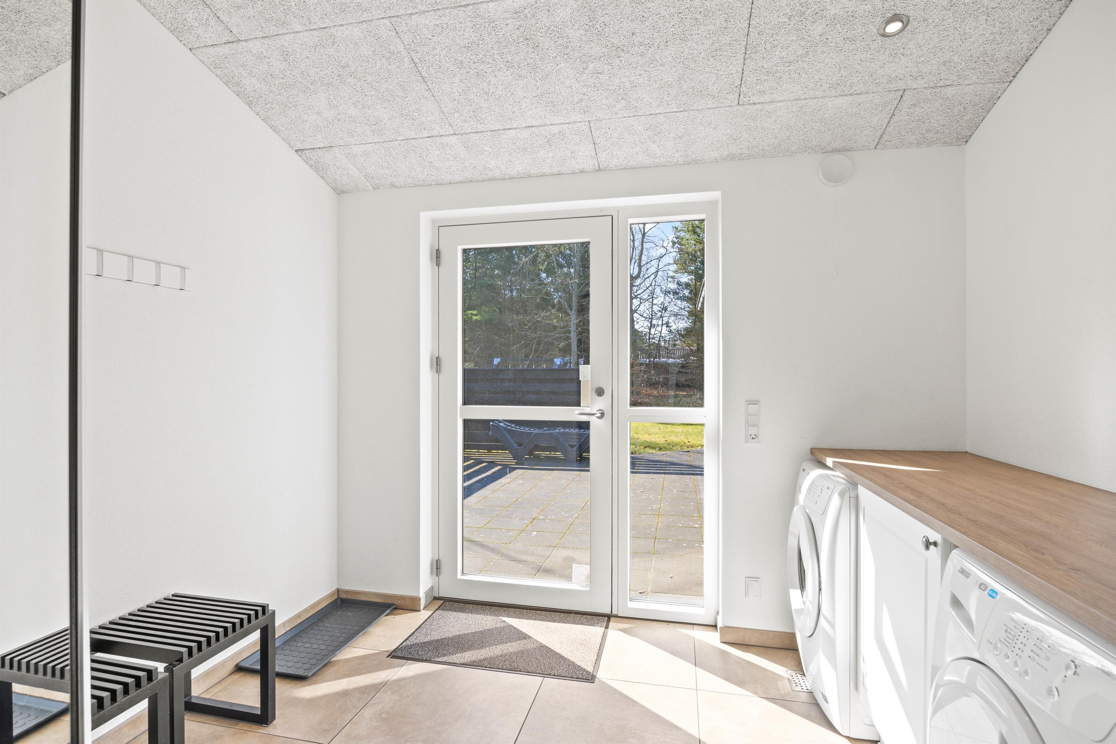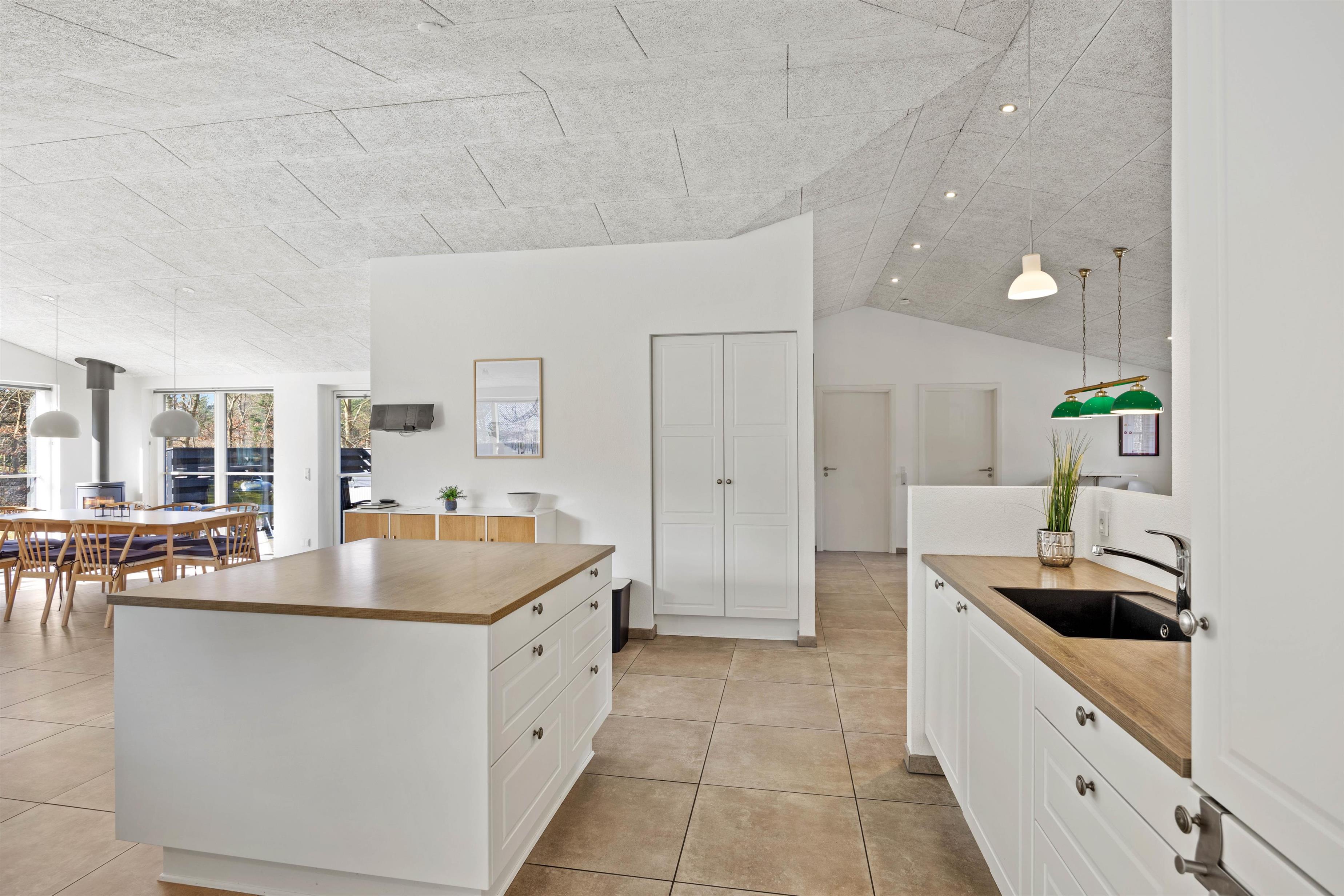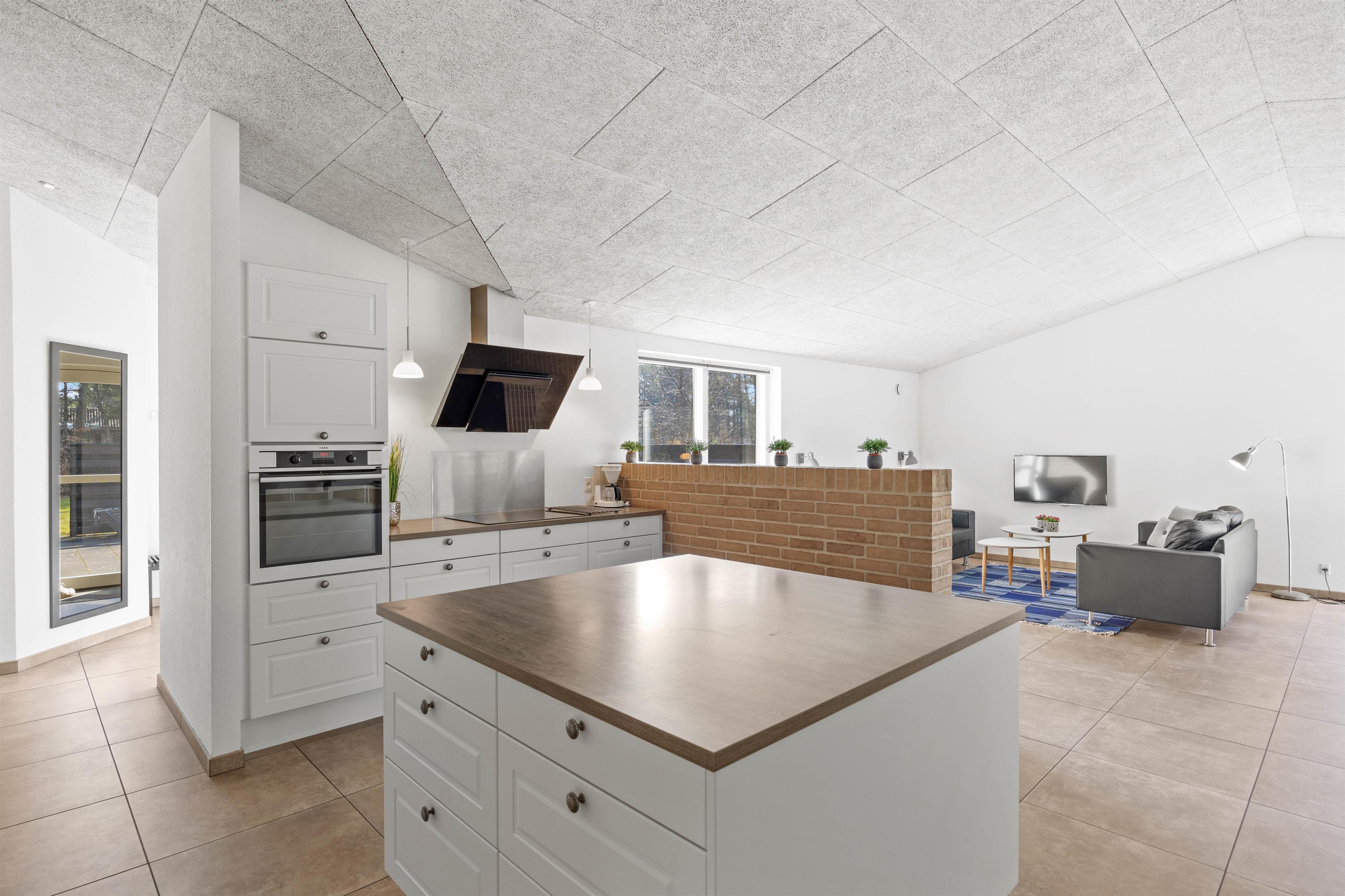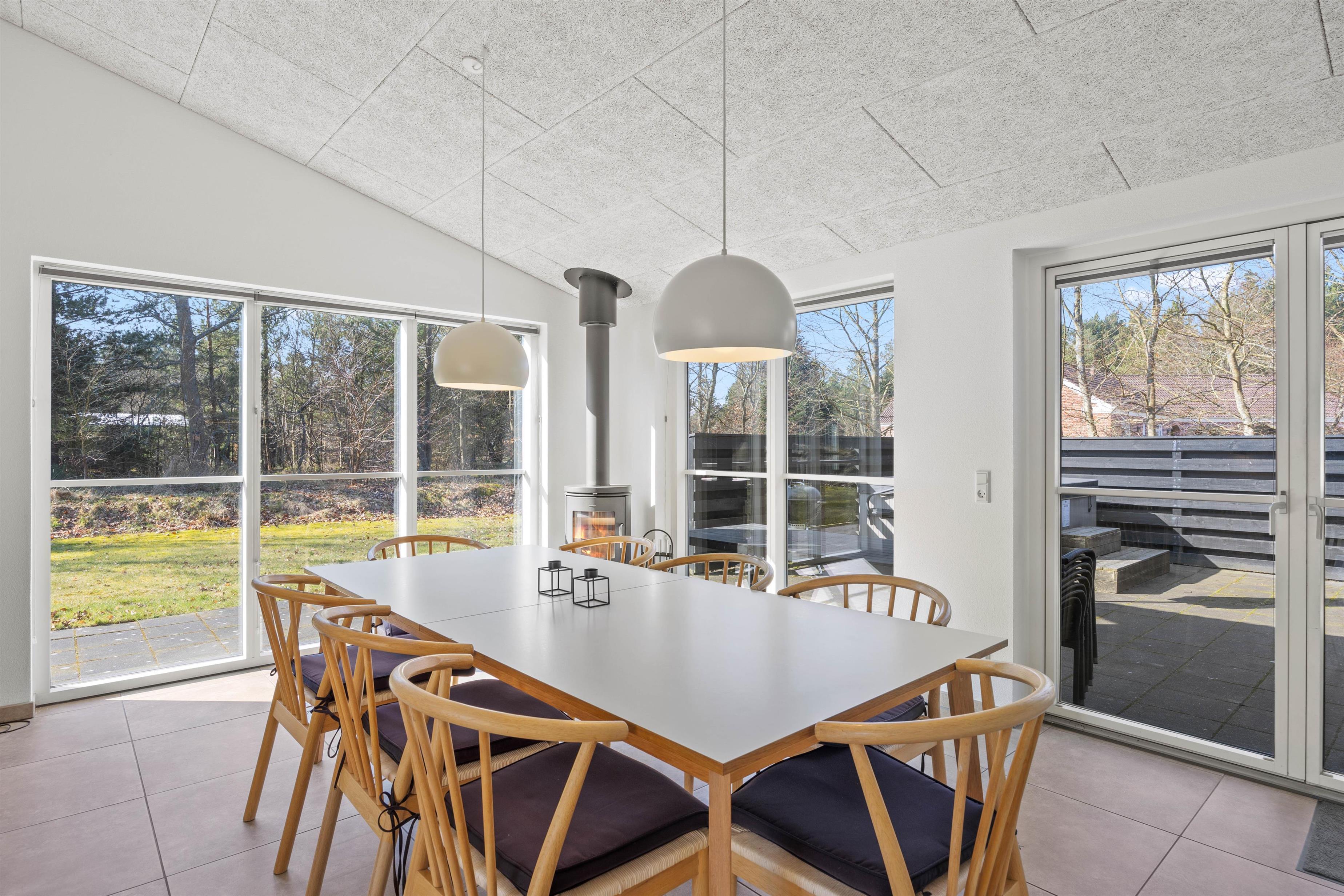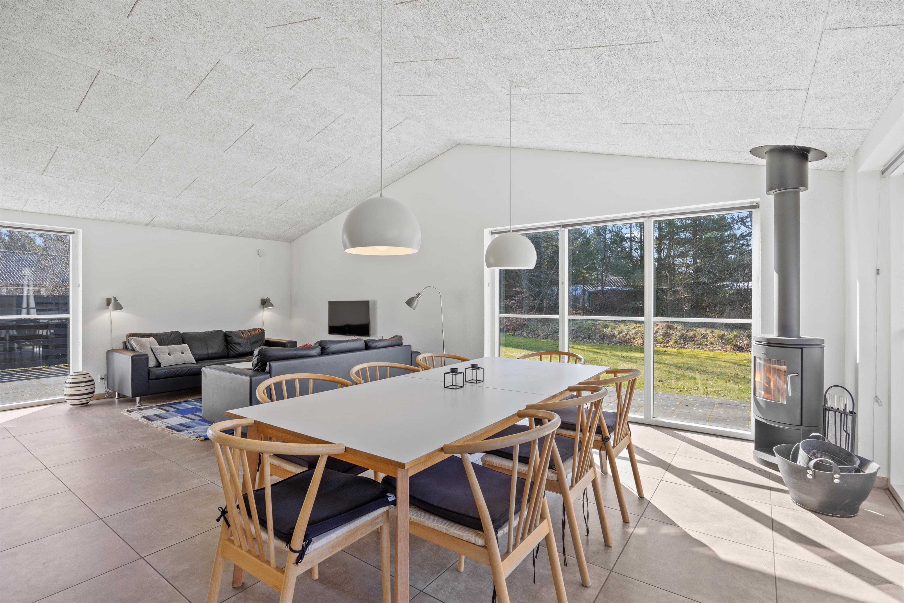 Ved spisebordet står den klassiske brændeovn, som helt sikkert vil sprede god varme på de kølige dage, og har I brug for at blive varmet ekstra igennem, kan I tænde op i saunaen og tanke ny energi til de næste oplevelsesrige feriedage.