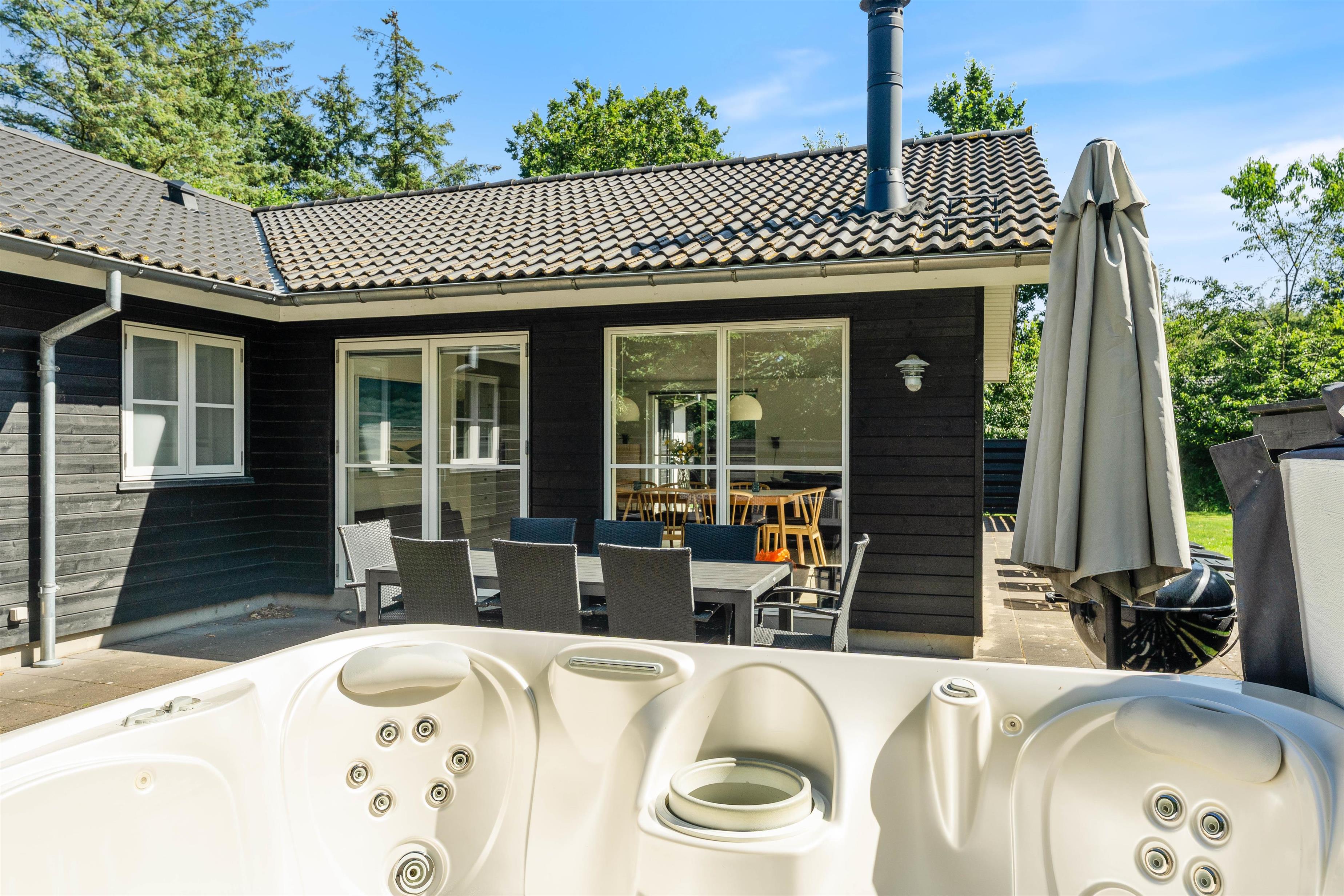 På terrassen finder I også et af de fedeste highlights ved huset; Her står det store udendørs spabad nemlig. Efter grillmiddagen når mørket er faldet på, og stjernerne blinker på himlen, kan I runde dagen godt af i det boblende spabad, inden det er tid til at gå i seng.