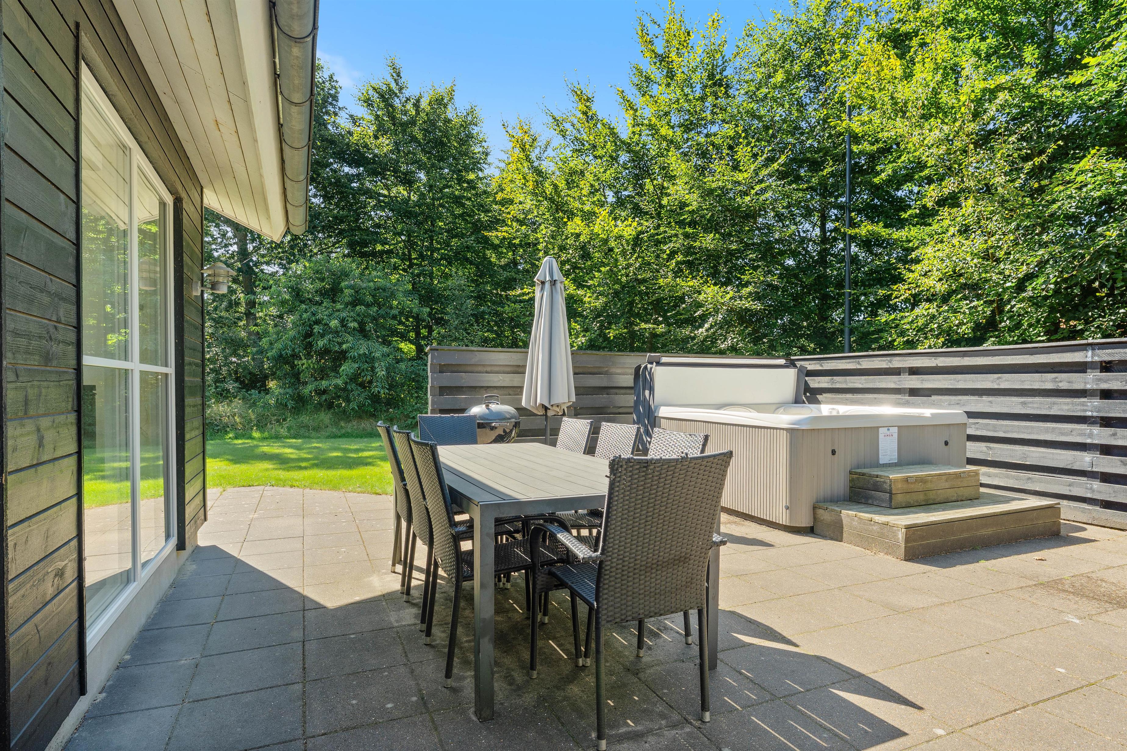 Afskærmet terrasse, udendørs spabad og skøn beliggenhed
