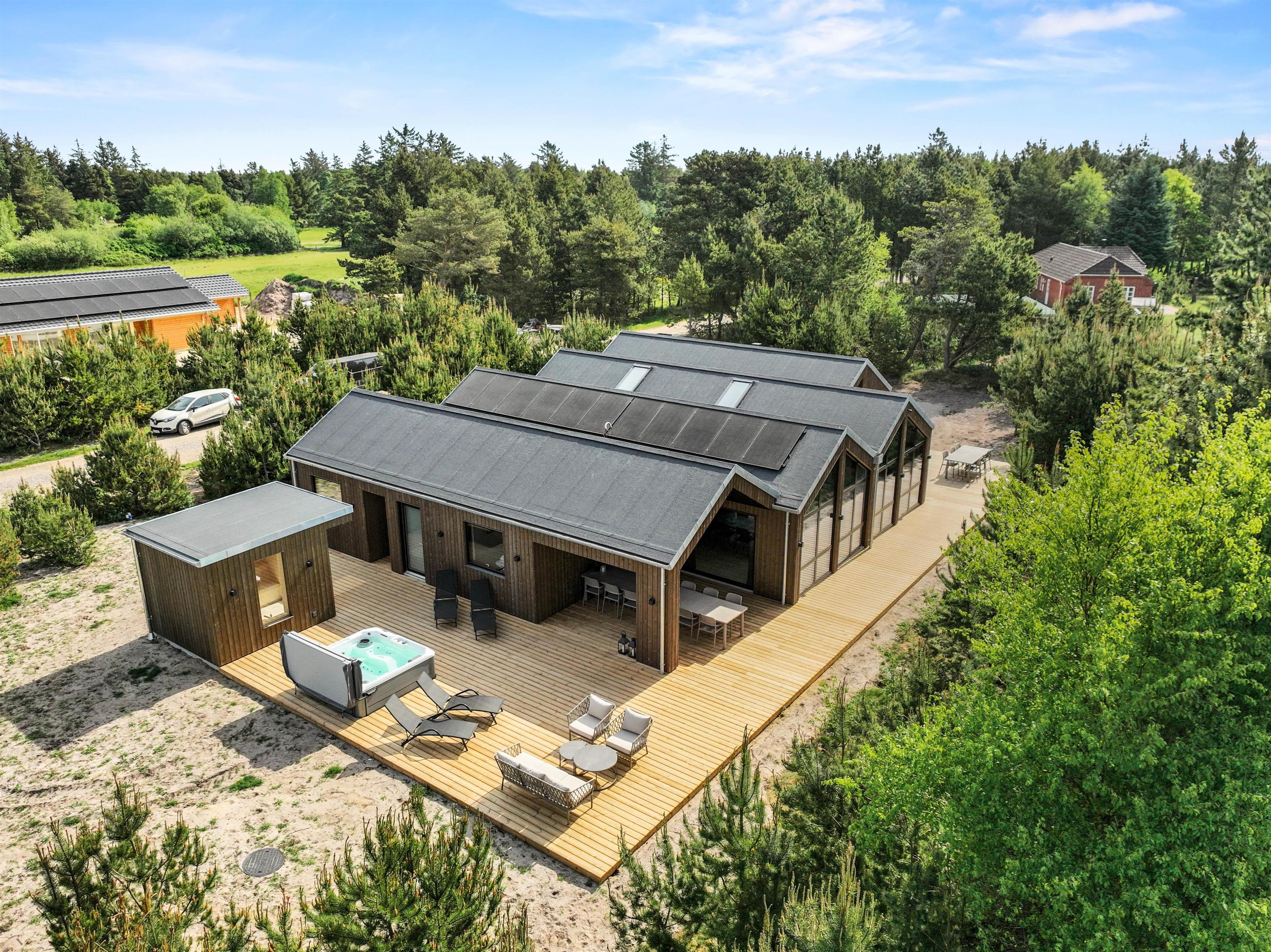 Er I på jagt efter et luksussommerhus til 12 personer, hvor I kan nyde den storslåede, vestjyske natur med udespa, udesauna og udebruser, finder I det hele i det store, smukke feriehus på Vesterballevej 26 – inden døre er der sågar bordtennis og billard.
