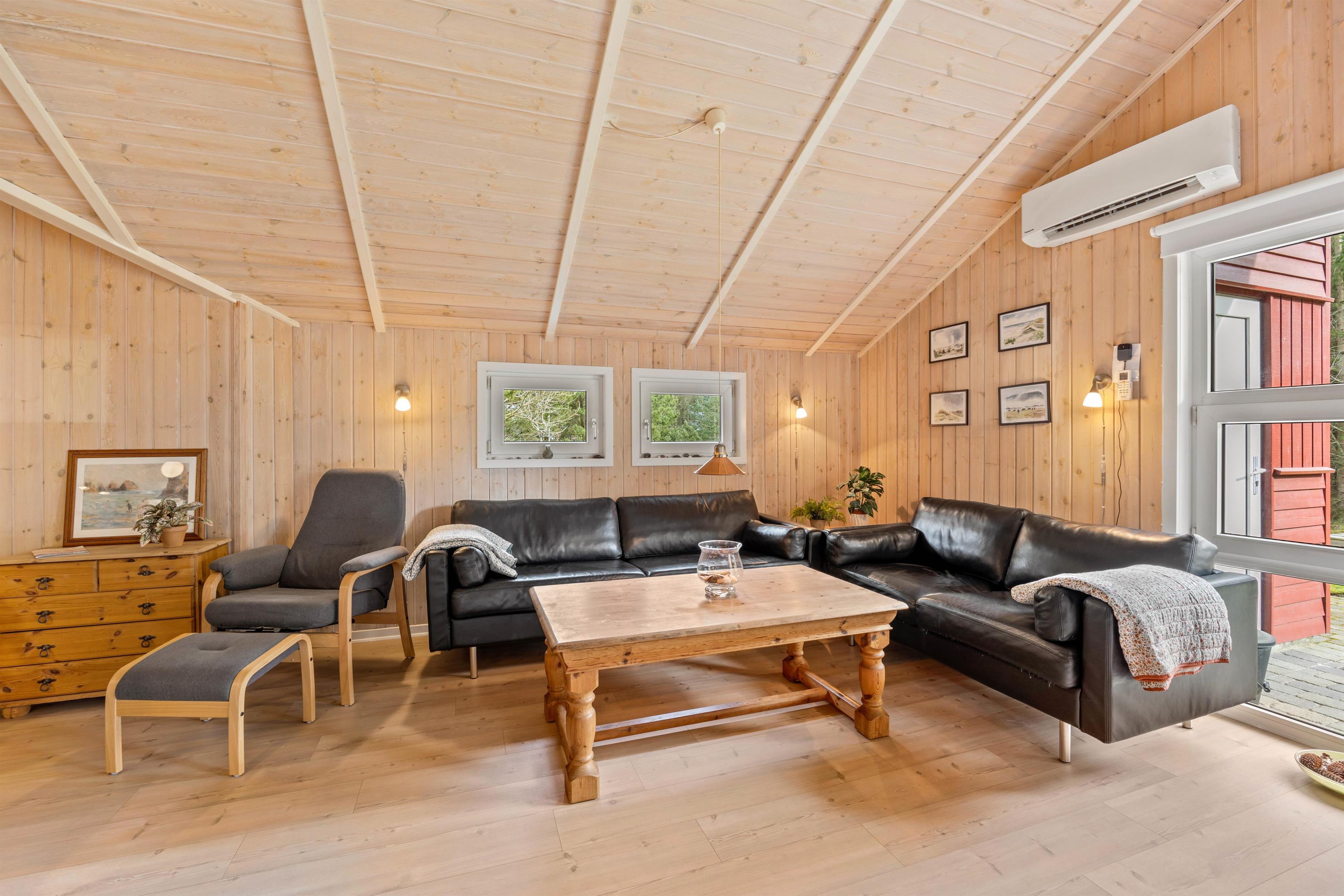 I sommerhuset vil I opleve en hyggelig indretning, som I straks vil føle jer hjemme i. Her er der et godt lysindfald og højt til loftet, der er med til at skabe den helt rette ferieatmosfære.