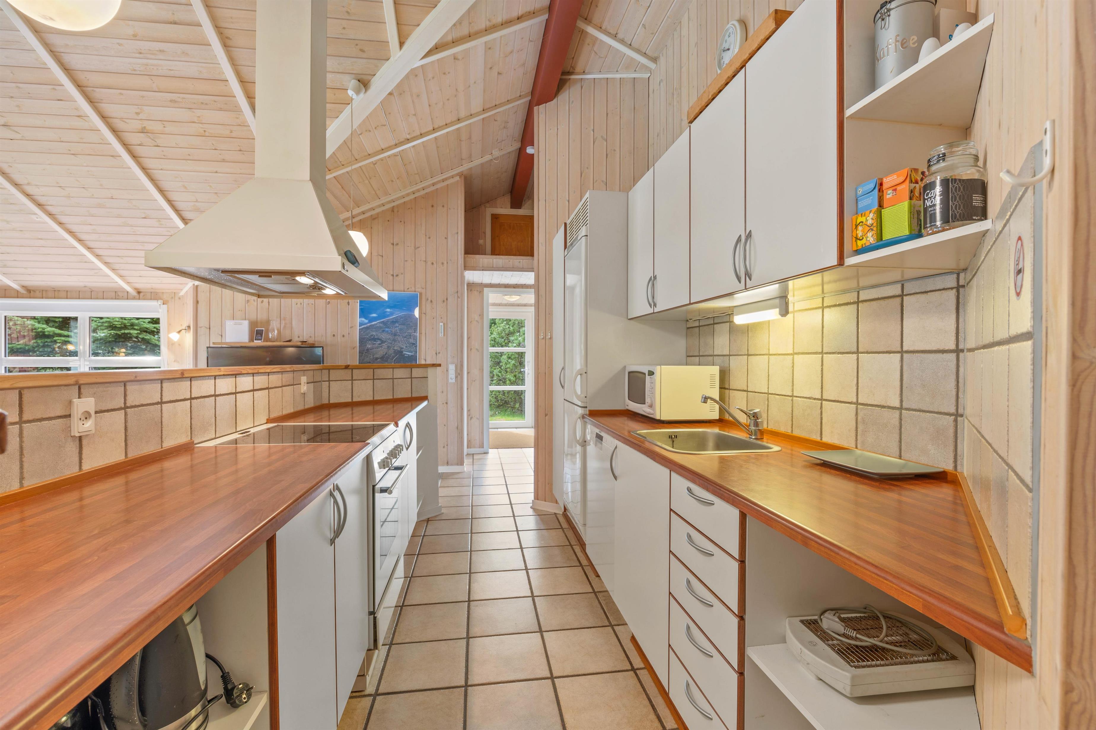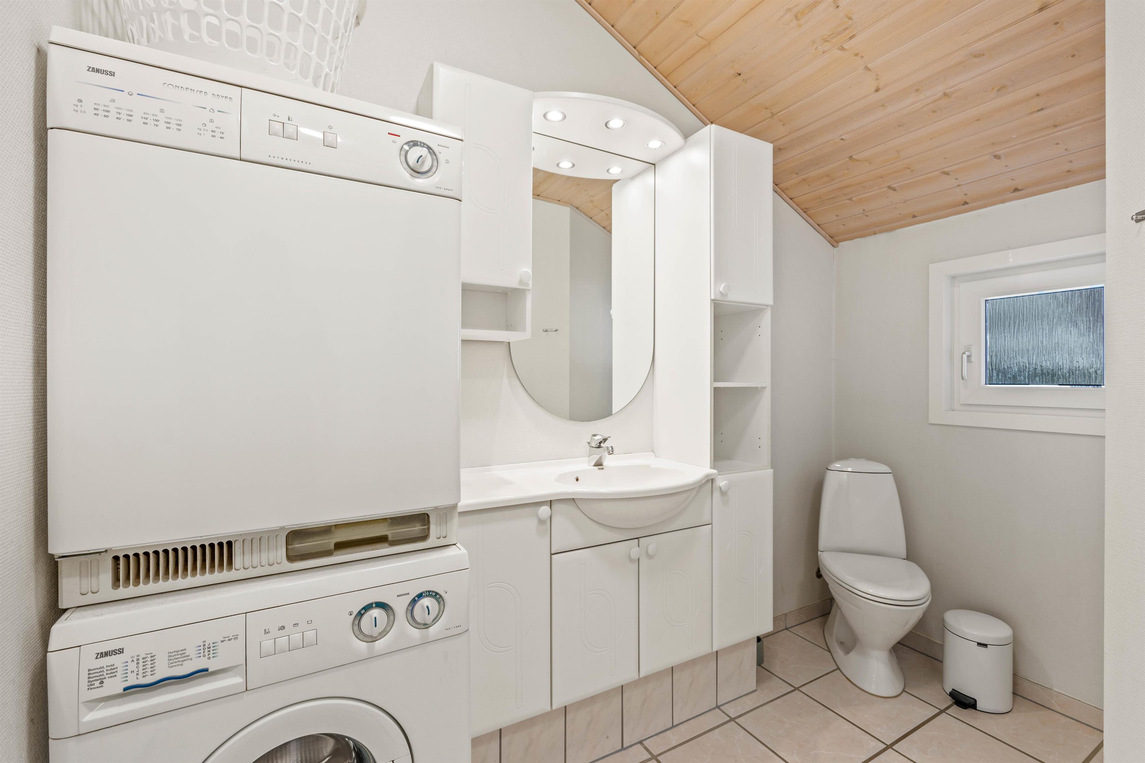 Takket være opvaskemaskinen, vaskemaskinen og tørretumbleren skal I ikke bruge en masse af jeres ferietid på praktisk husarbejde. Desuden er der en energivenlig varmepumpe i feriehuset, der sørger for behagelige temperaturer.
