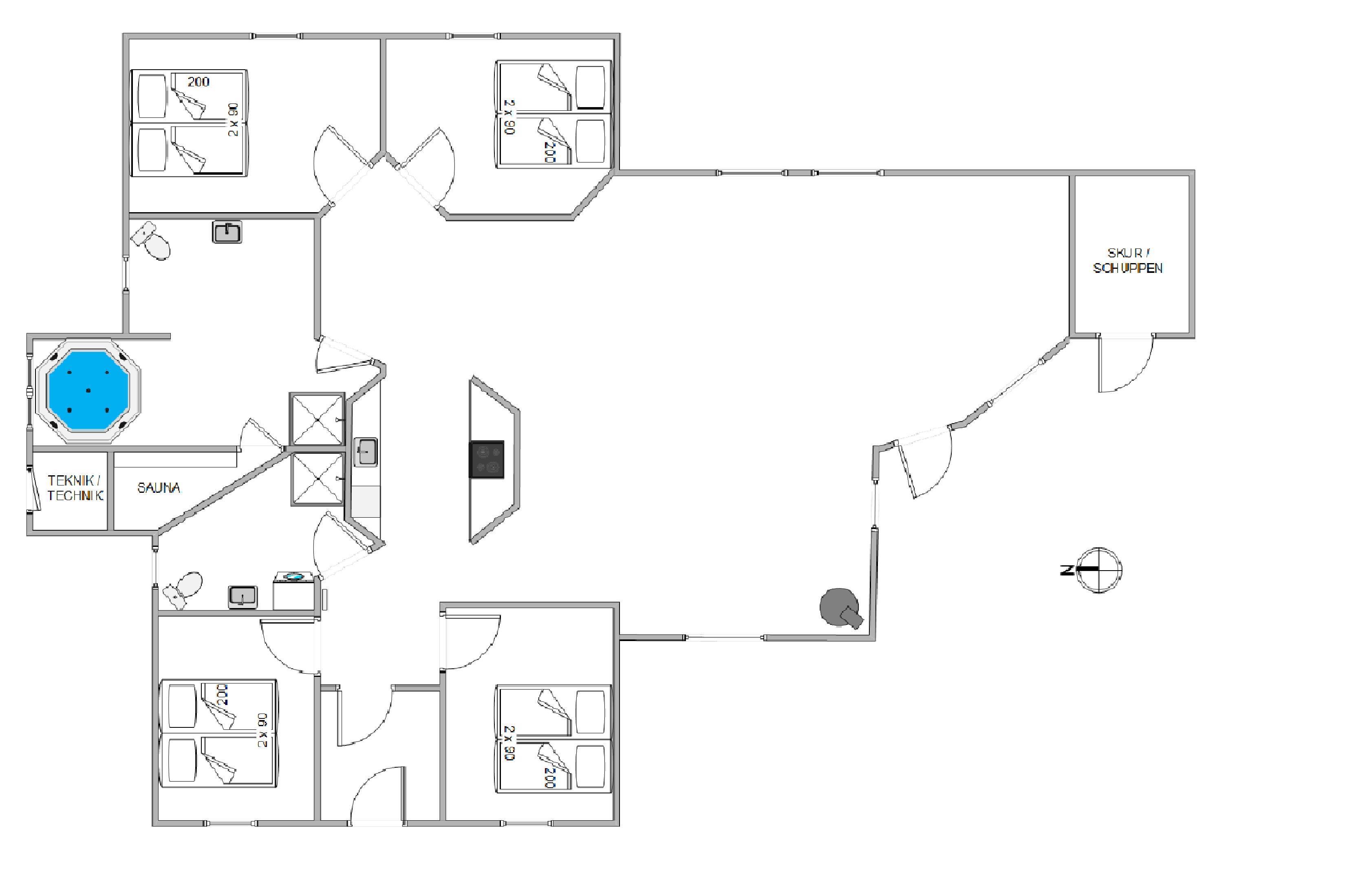 Når I skal samle ny energi til de kommende feriedage, kan I fordele jer på sommerhusets 4 soveværelser, der alle er indrettet med en dobbeltseng hver. Frygt ikke for kø til badeværelset eller kolde fødder fra morgenstunden – her er nemlig 2 badeværelser, der begge er udstyret med gulvvarme.