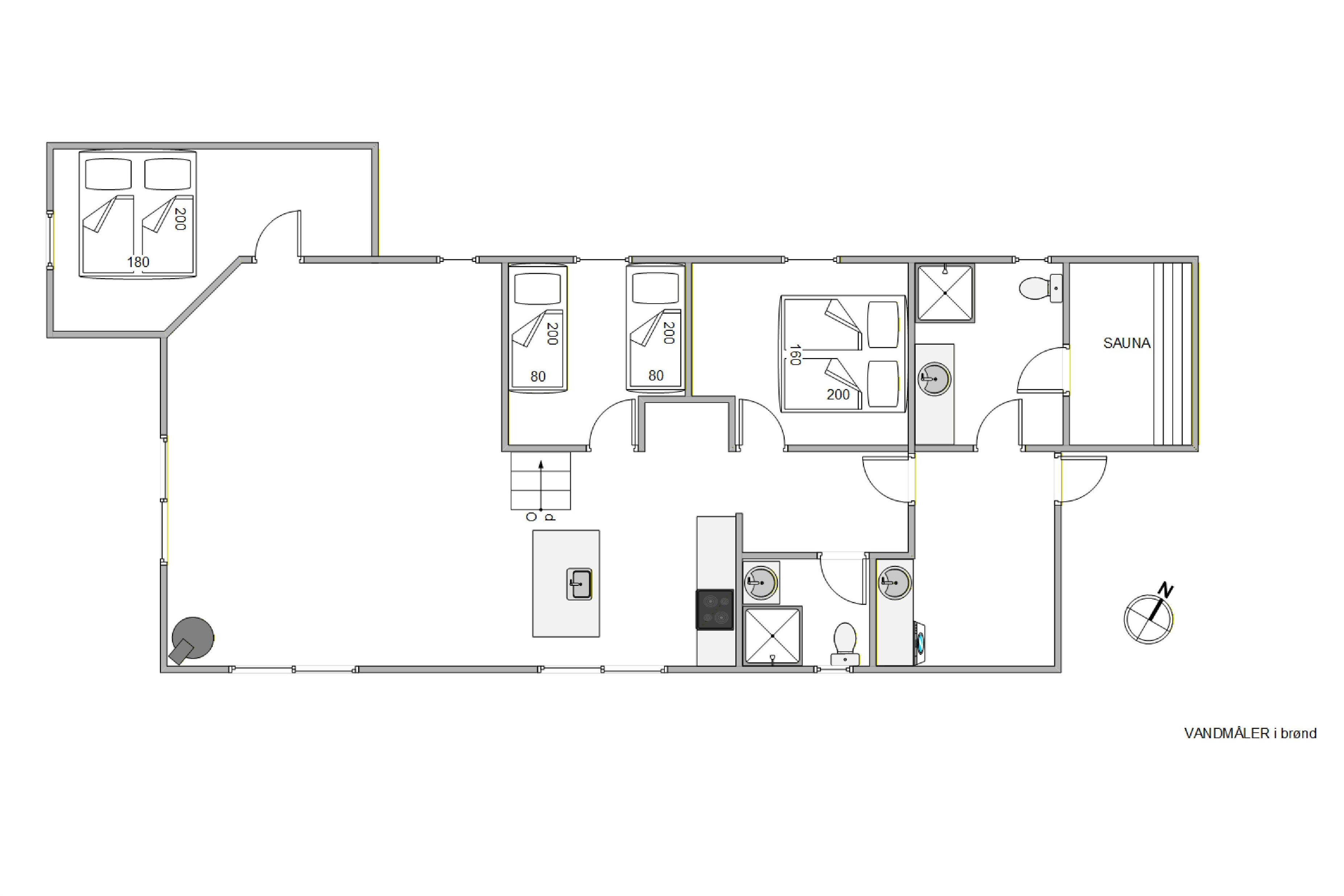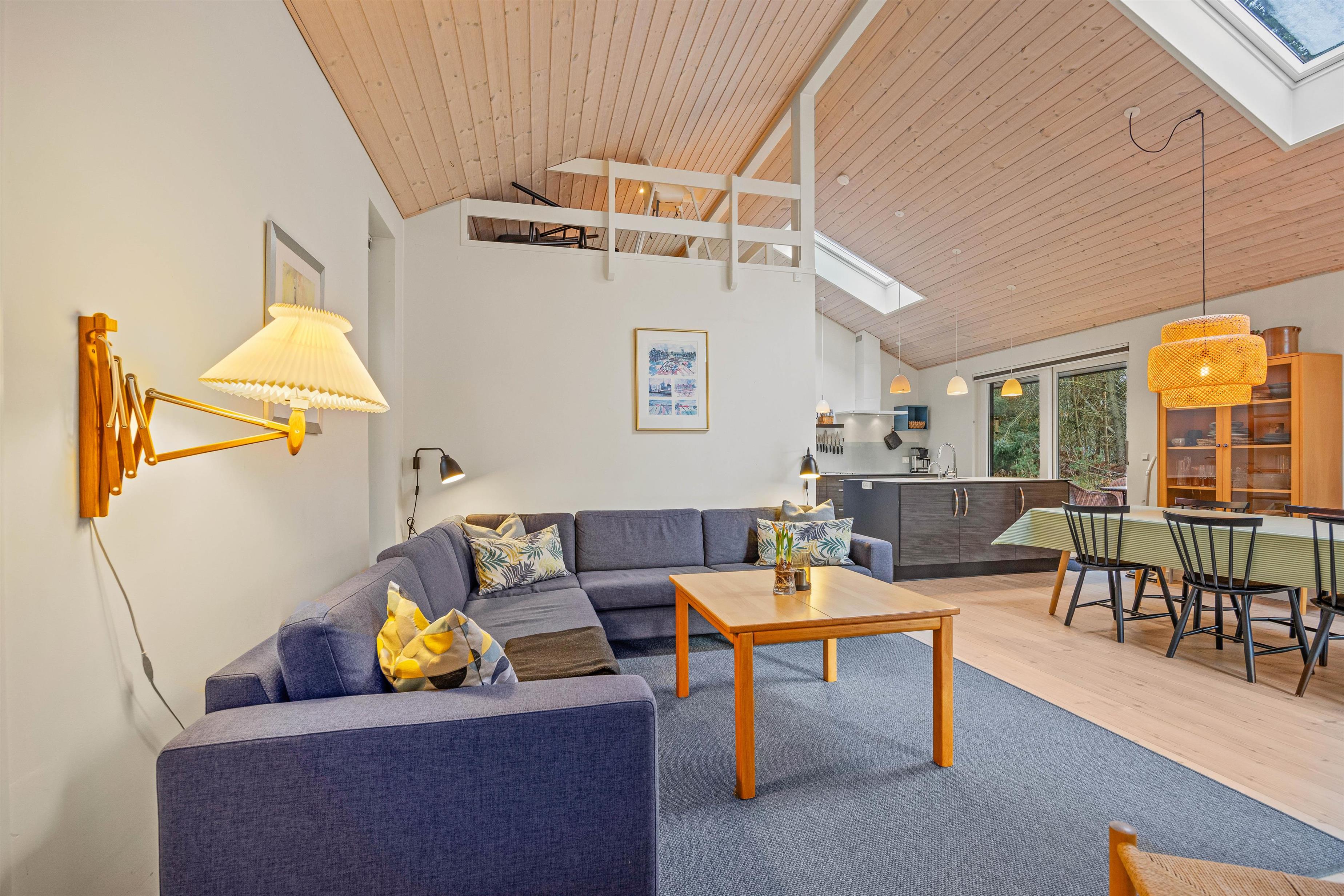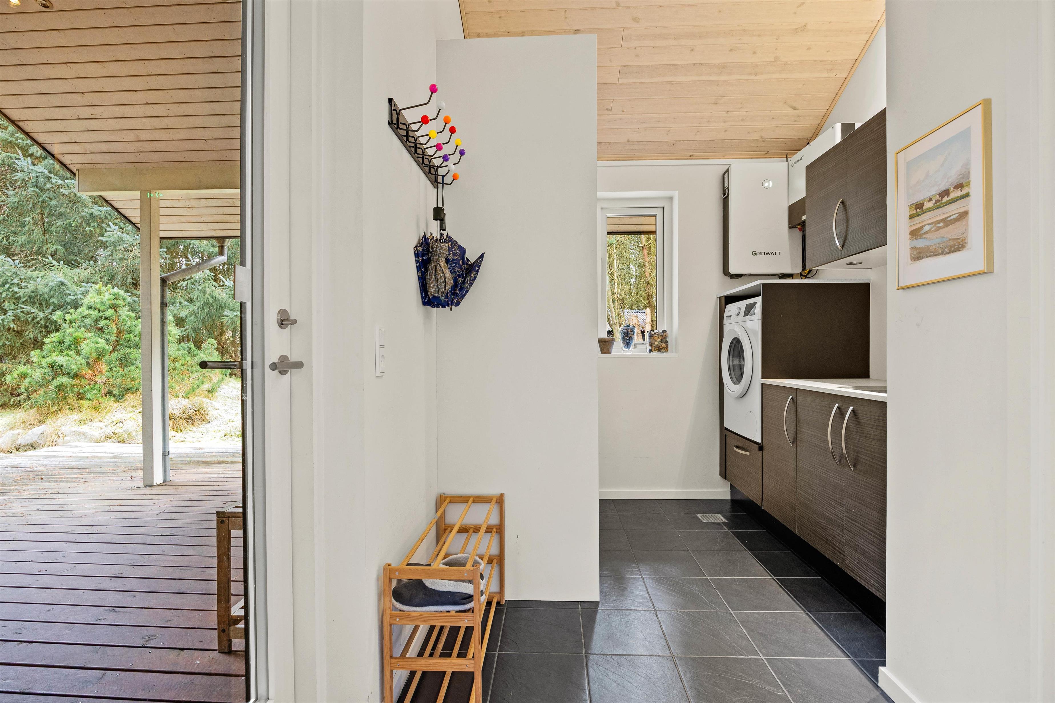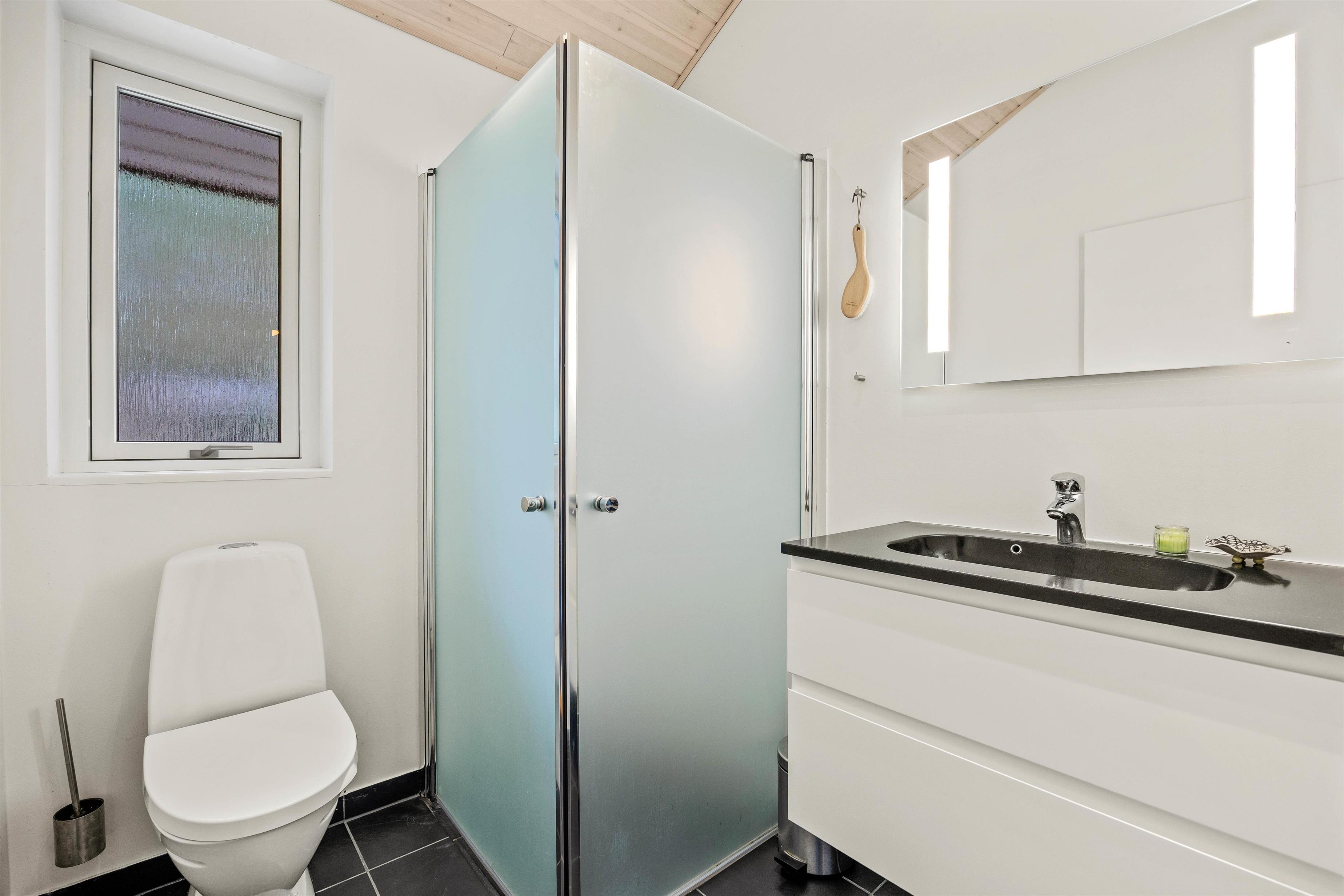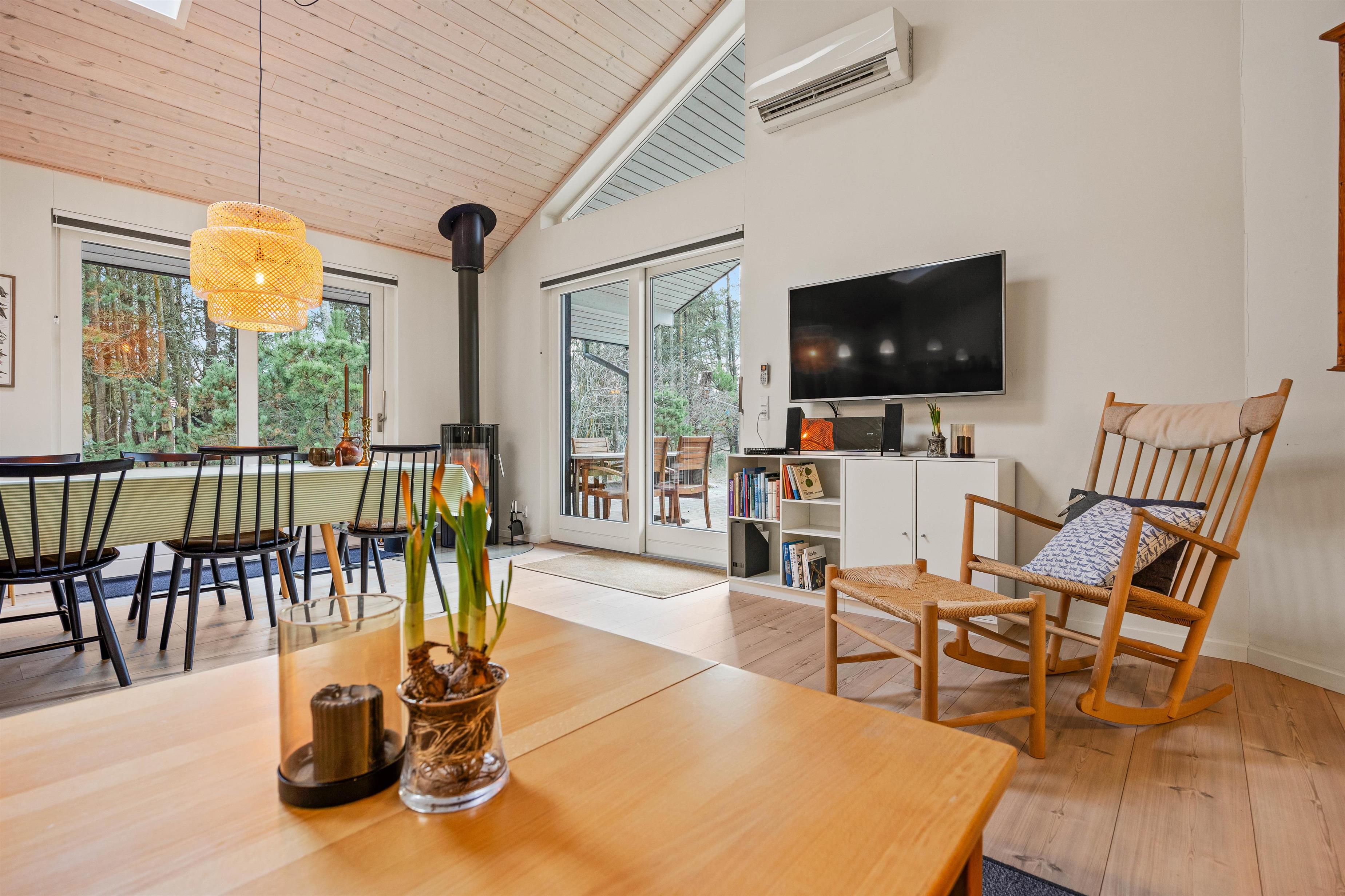 Det åbne og fuldt udstyrede køkken er hjertet i sommerhuset. Med en separat fryser på 50 liter, en opvaskemaskine og en vaskemaskine har du alt, hvad du behøver til et behageligt ophold. Tilbered dine yndlingsretter og nyd dem på den hyggelige spiseplads ved de store vinduer eller på den solrige terrasse.