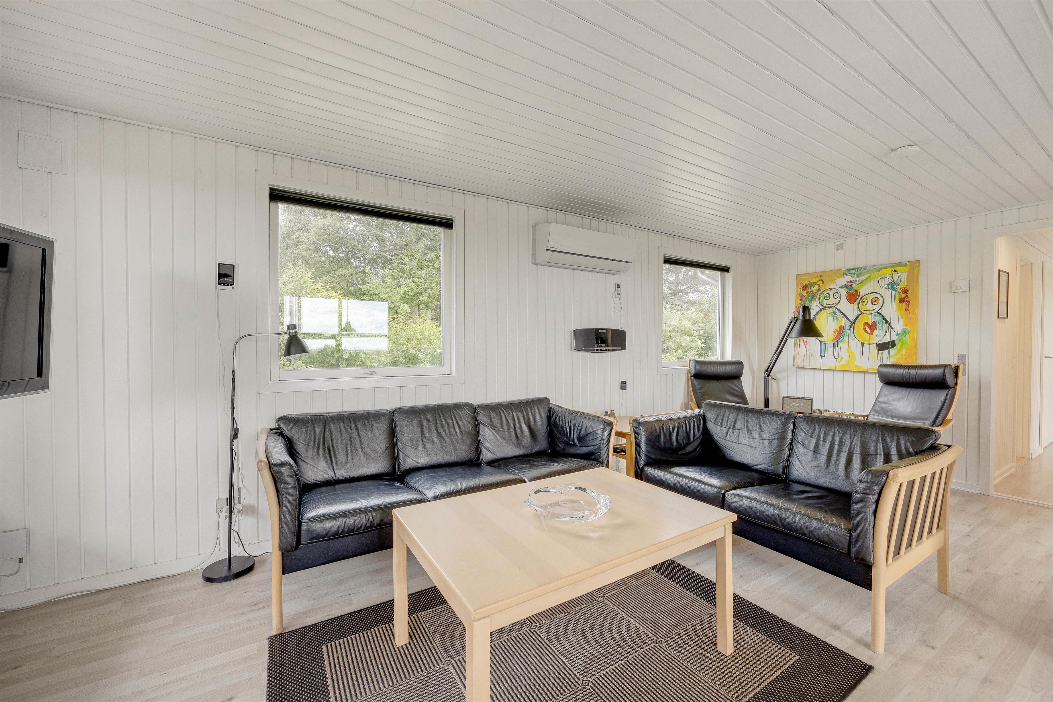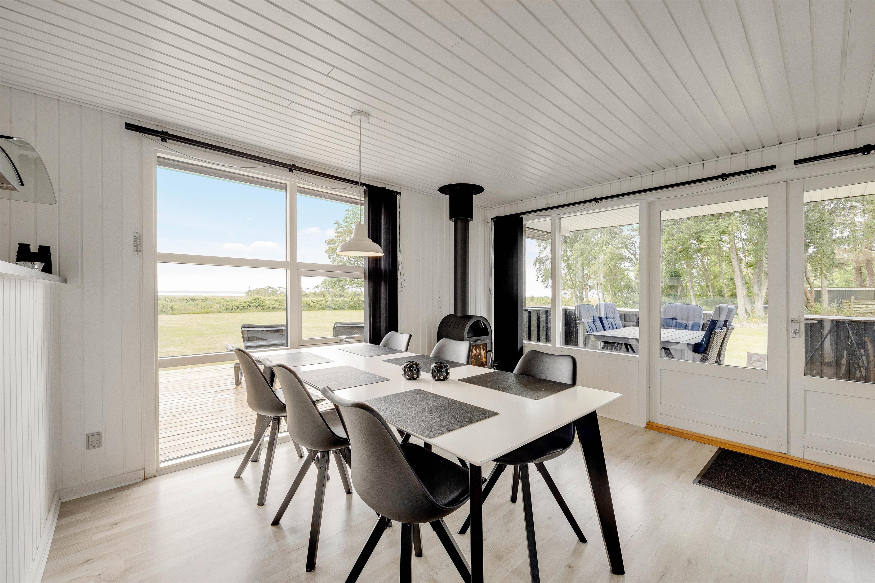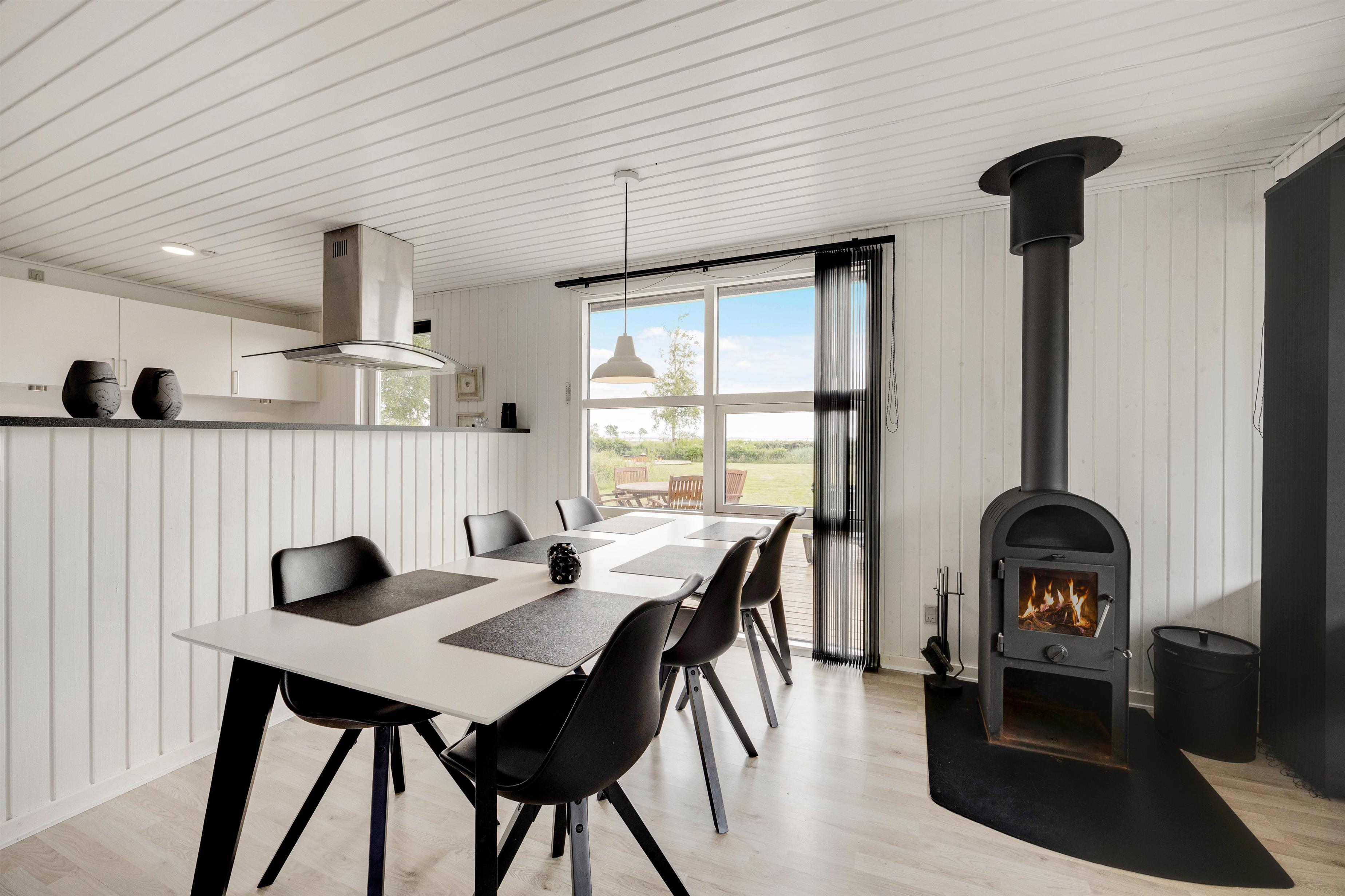 Tænder I op i brændeovnen i alrummet, sørger den med sine knitrende flammer for, at feriestemningen er i top. Derudover har I også en varmepumpe, der på energivenlig vis sikrer jer et godt indeklima i løbet af jeres ferie i sommerhuset.