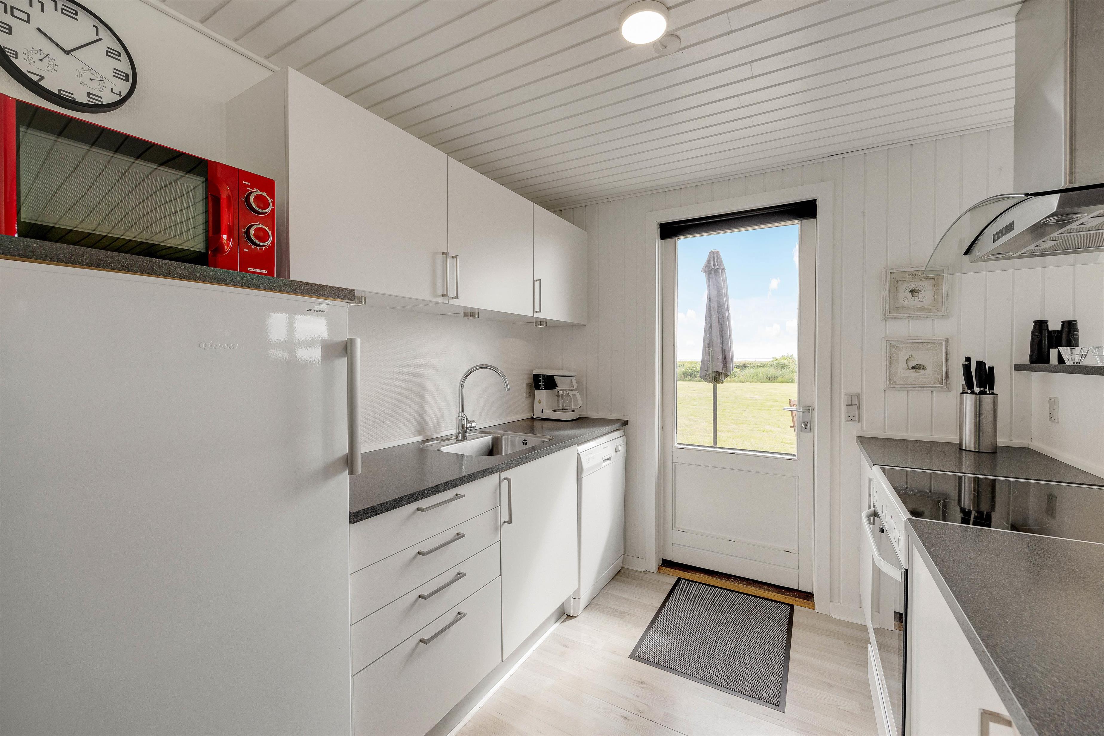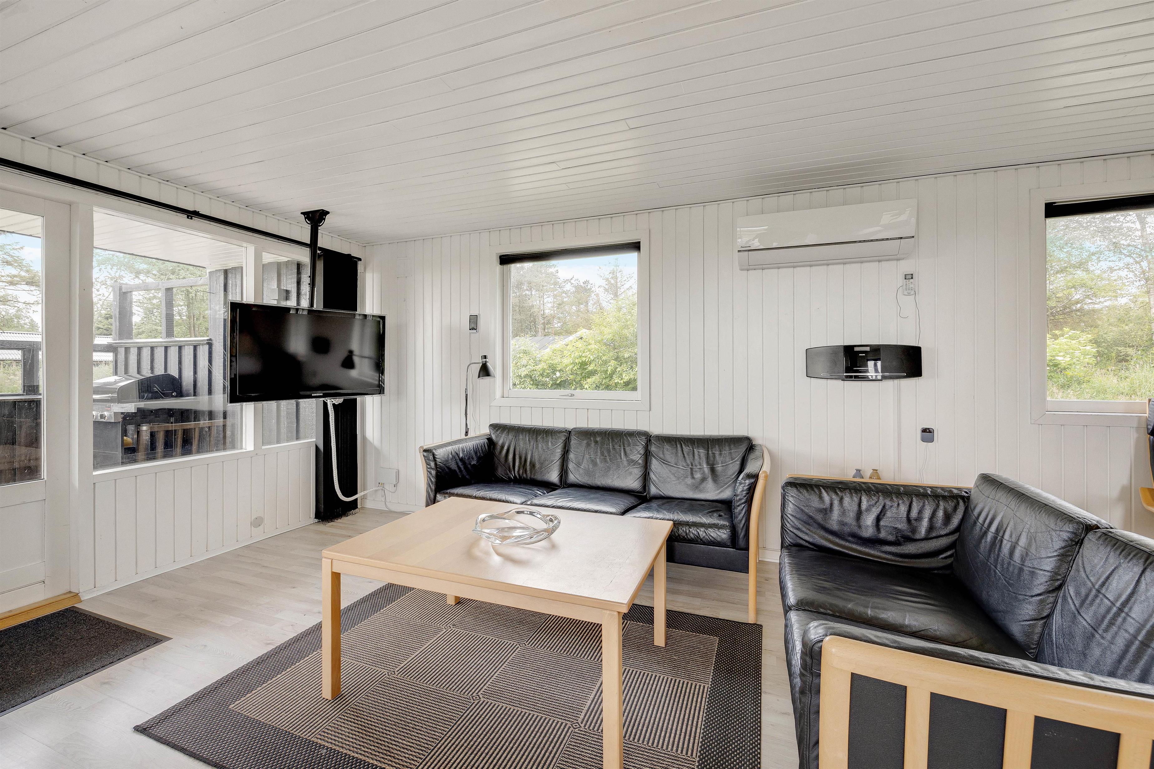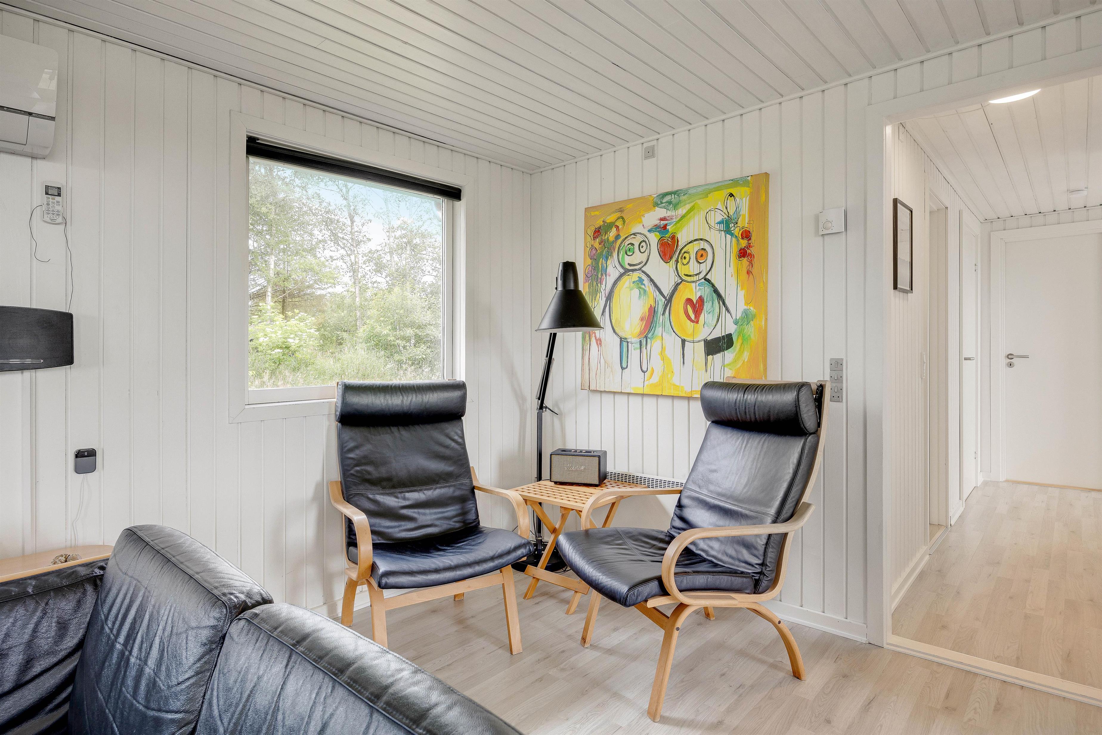 Tænder I op i brændeovnen i alrummet, sørger den med sine knitrende flammer for, at feriestemningen er i top. Derudover har I også en varmepumpe, der på energivenlig vis sikrer jer et godt indeklima i løbet af jeres ferie i sommerhuset.