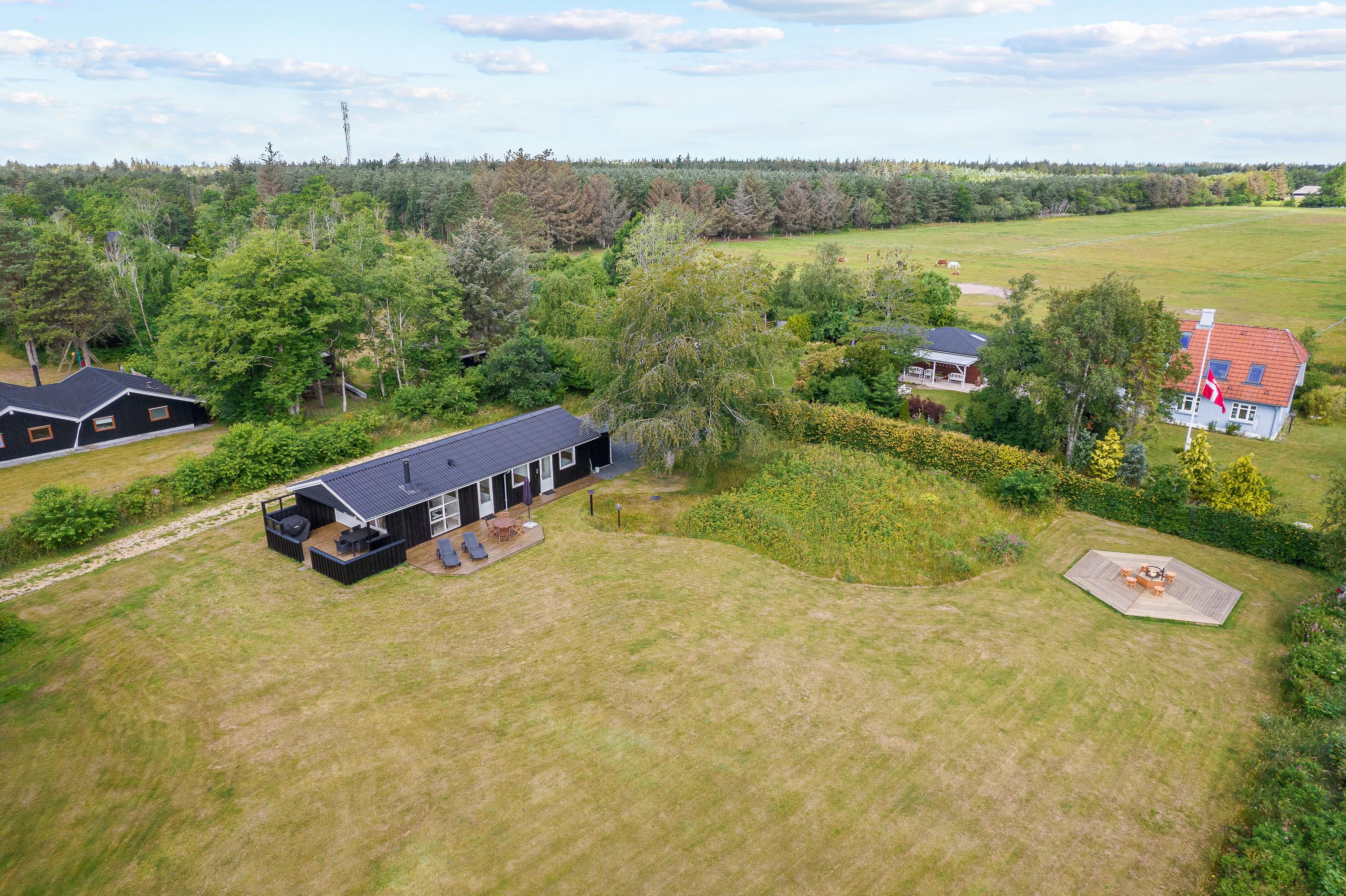 Sommerhuset er beliggende på en naturgrund, der er 3.050 kvadratmeter stor, hvor der er god plads til, at hele familien kan nyde de solrige feriedage udendørs. Til familiens yngste er der et gyngestativ i haven. Fra sommerhuset kan I desuden nyde en skøn panoramaudsigt, hvor I har udsyn til Esbjerg.