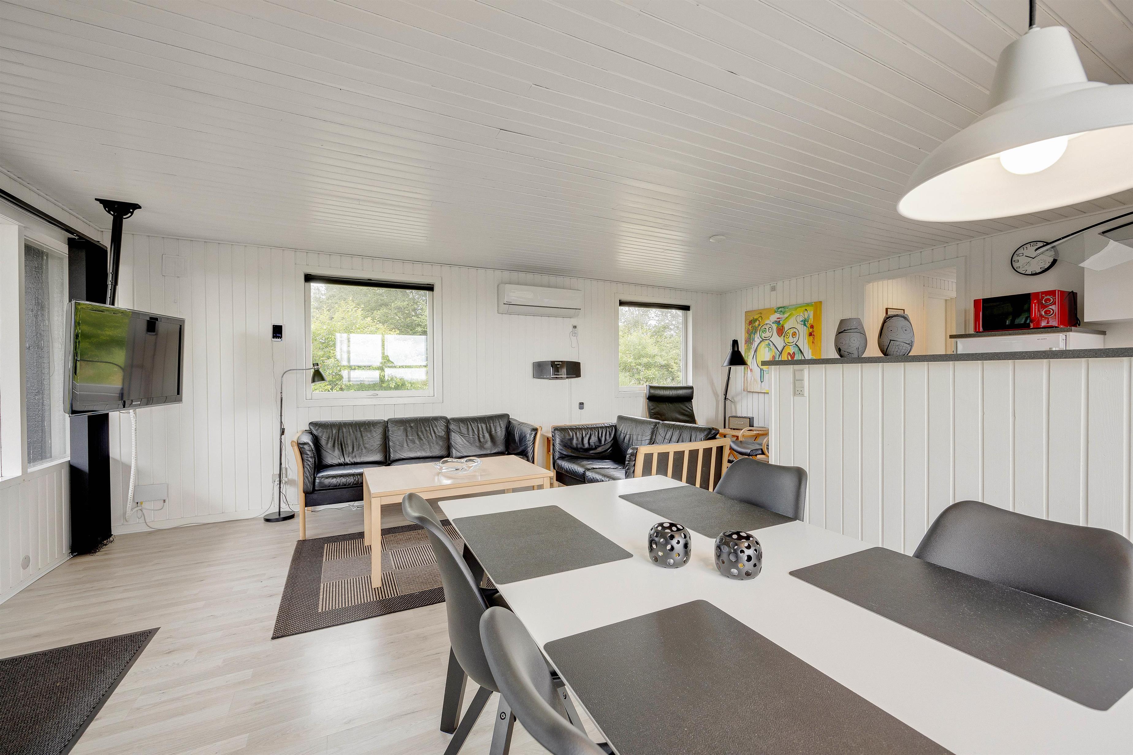 Feriehusets hjerte er alrummet, hvor køkken, stue og spiseplads er forenet. Her kan I samles i køkkenet til hyggelig madlavning, omkring spisebordet til sjove spil eller foran tv’et til gode film. Takket være Chromecasten kan I endda streame jeres yndlingsfilm.