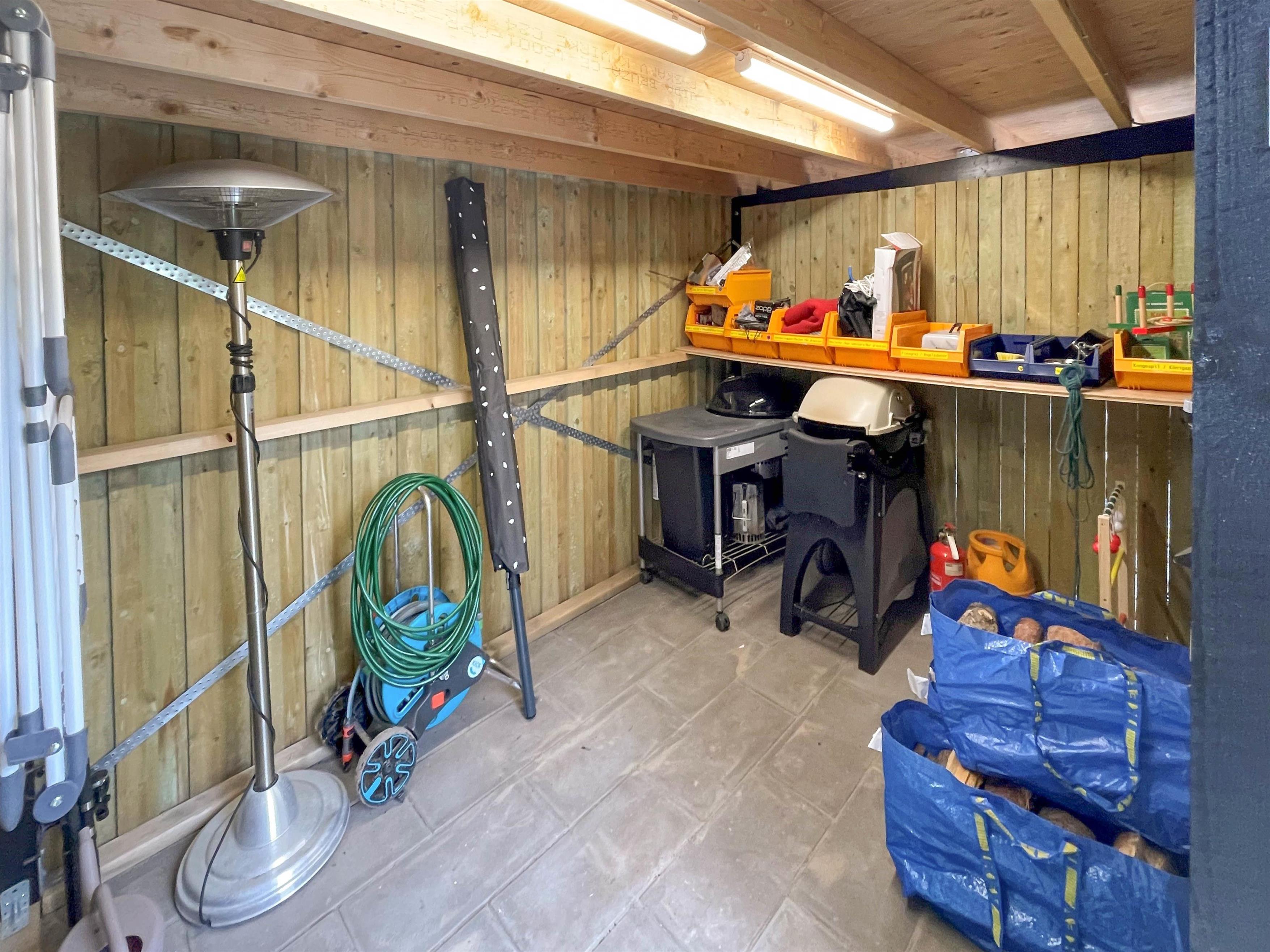 De feriedage, hvor solen står højt på himlen og temperaturerne er høje, skal I da nyde udendørs på terrassen, der løber hele vejen rundt om feriehuset. Der er både et åben og et overdækket terrasseområde. Her har I både havemøbler og liggestole til rådighed, som I kan finde jer til rette i, mens I bare nyder ferien. Der er også en gasgrill til rådighed, hvor I kan grille diverse lækkerier.