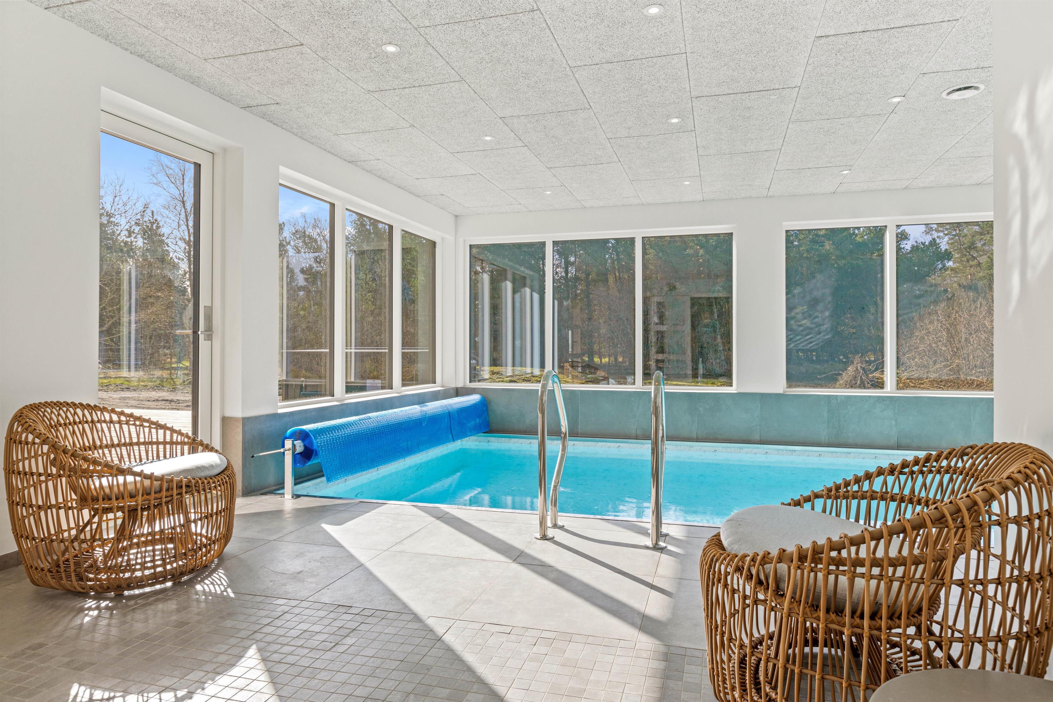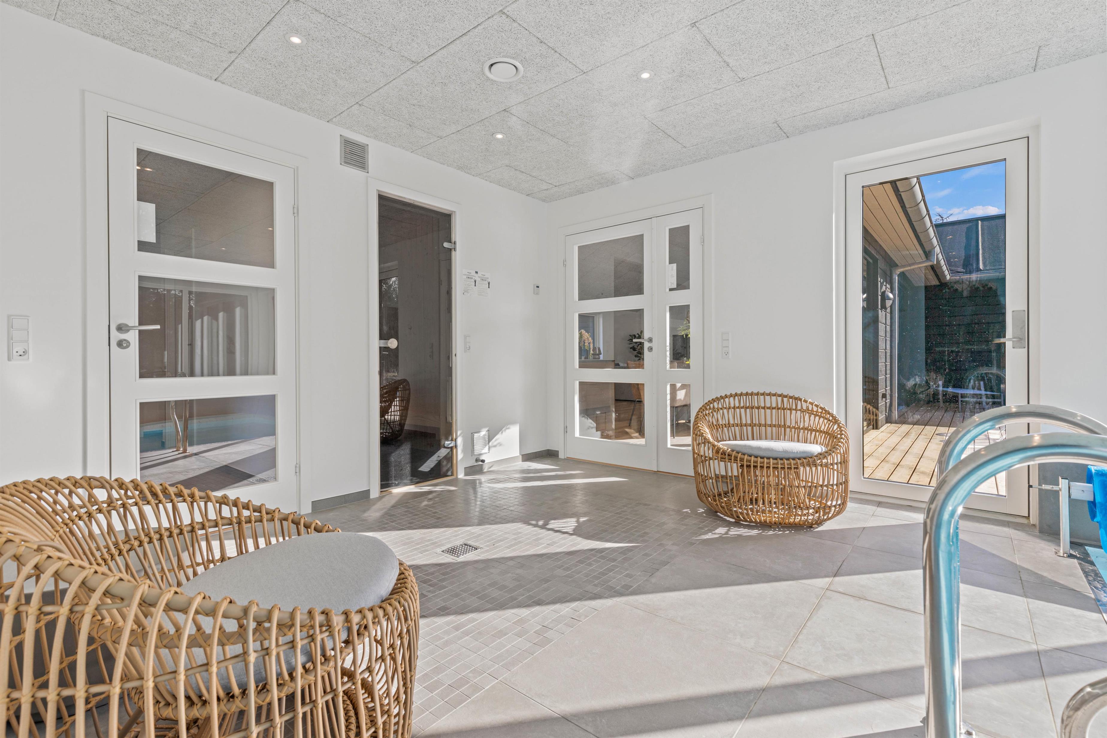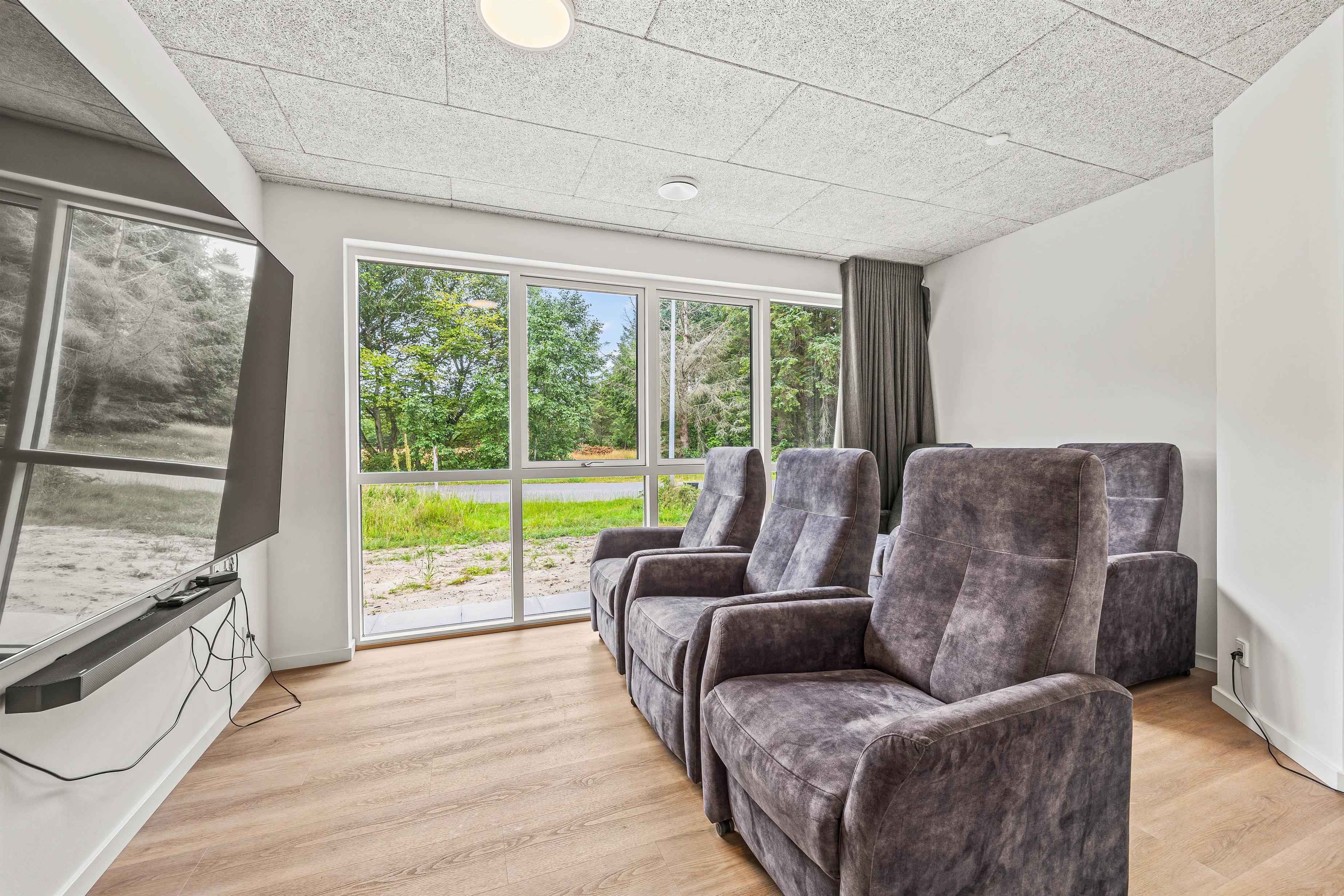 Som noget helt særligt har dette feriehus også en biograf, hvor yndlingsfilmene eller fx en James Bond 007 maraton kan nydes. Når hjernen er mæt af indtryk og I trænger til at forkæle kroppen lidt, kan I hoppe i den 24 m2 pool eller tage en tur i saunaen. Skulle lidt afslapning i spaen lokke, må I ud på en dejlige terrasse og sænke jer i det varme vand - måske er I heldige at kunne se stjernehimlen.