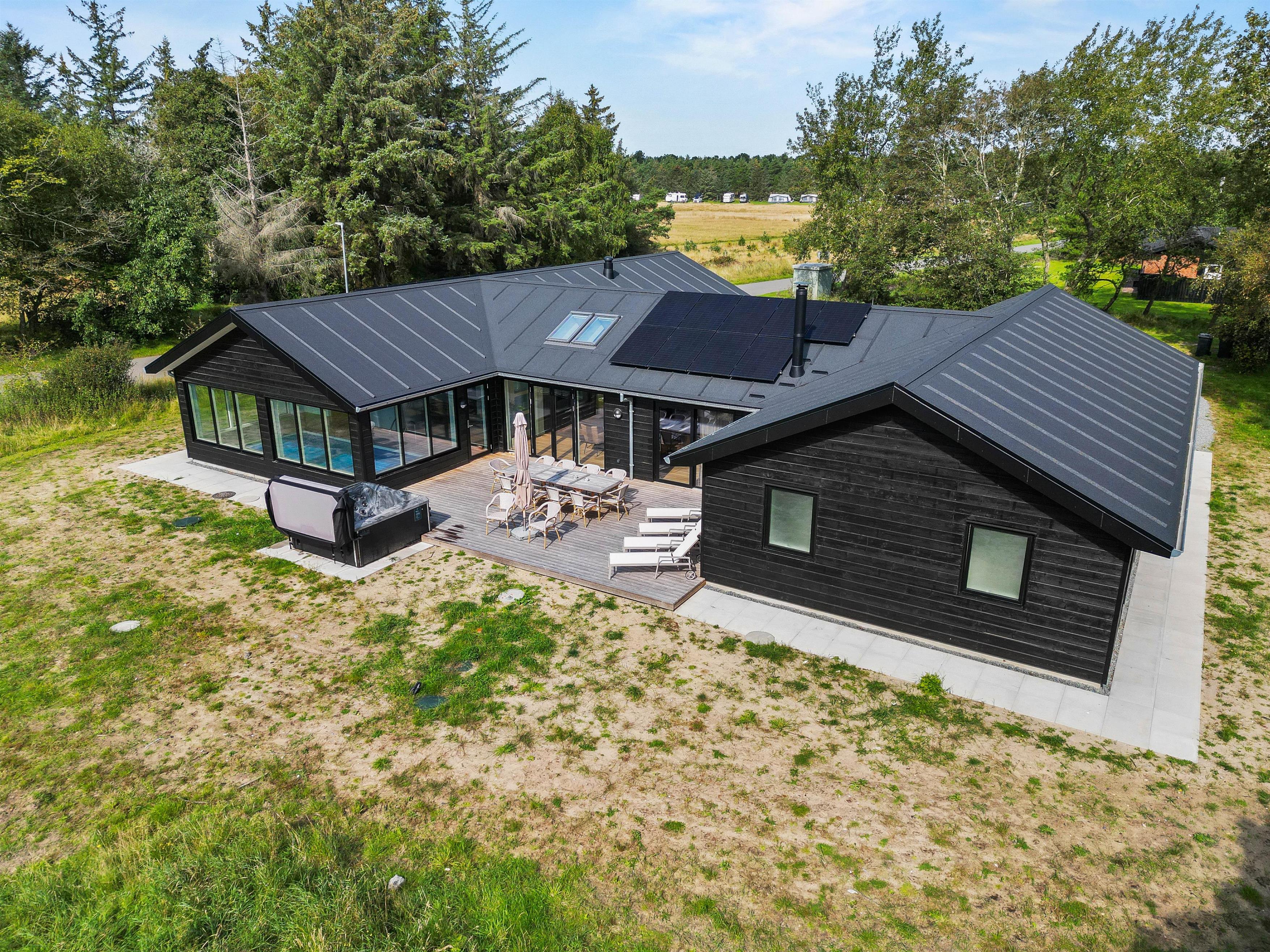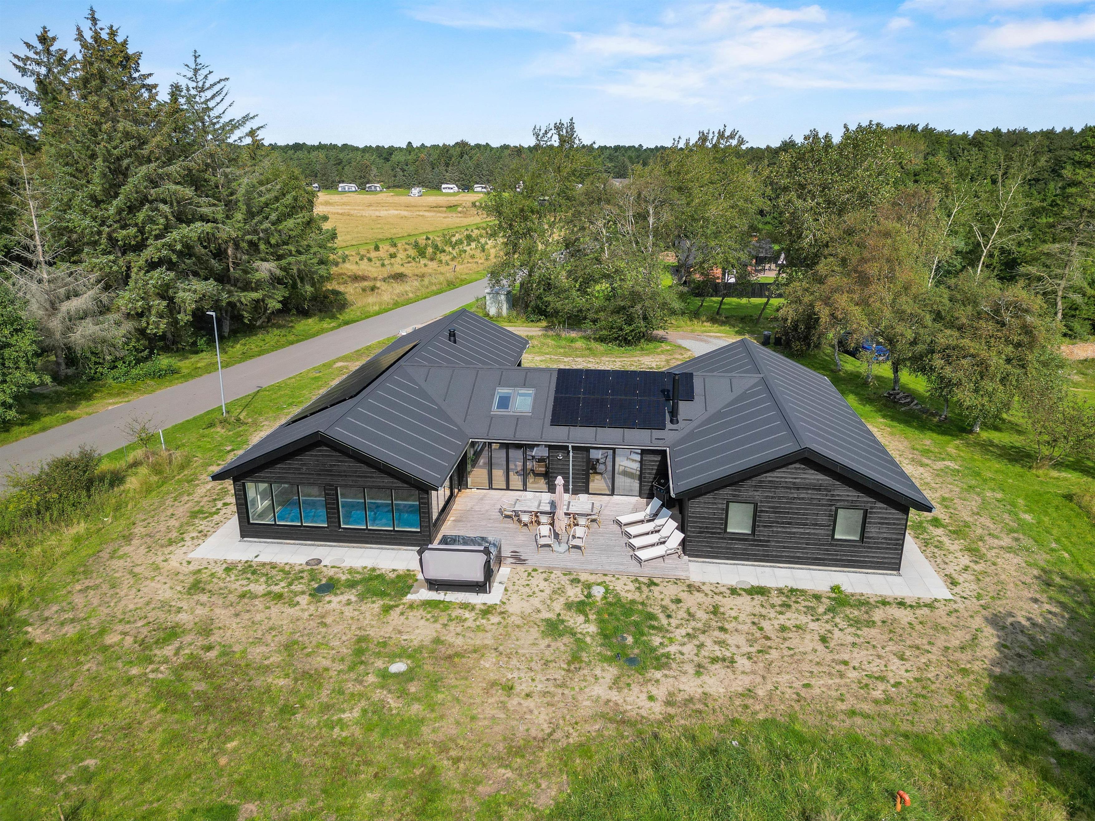 Skal I forkæle jer selv med et ophold i den vildeste luksus, skal I tage til Skallingevej 7B i Ho, hvor et helt nyt hus bygget i udsøgte materialer og med alle ønskelige faciliteter venter på op til 10 personer. Udover at elforbruget er inklusive i lejeprisen får I: soveværelser med eget badeværelse, biograf, aktivitetsrum med bordtennis og billard, 24 m2 pool, sauna, udespa, carport med ladestander (husk kabel/adapter).