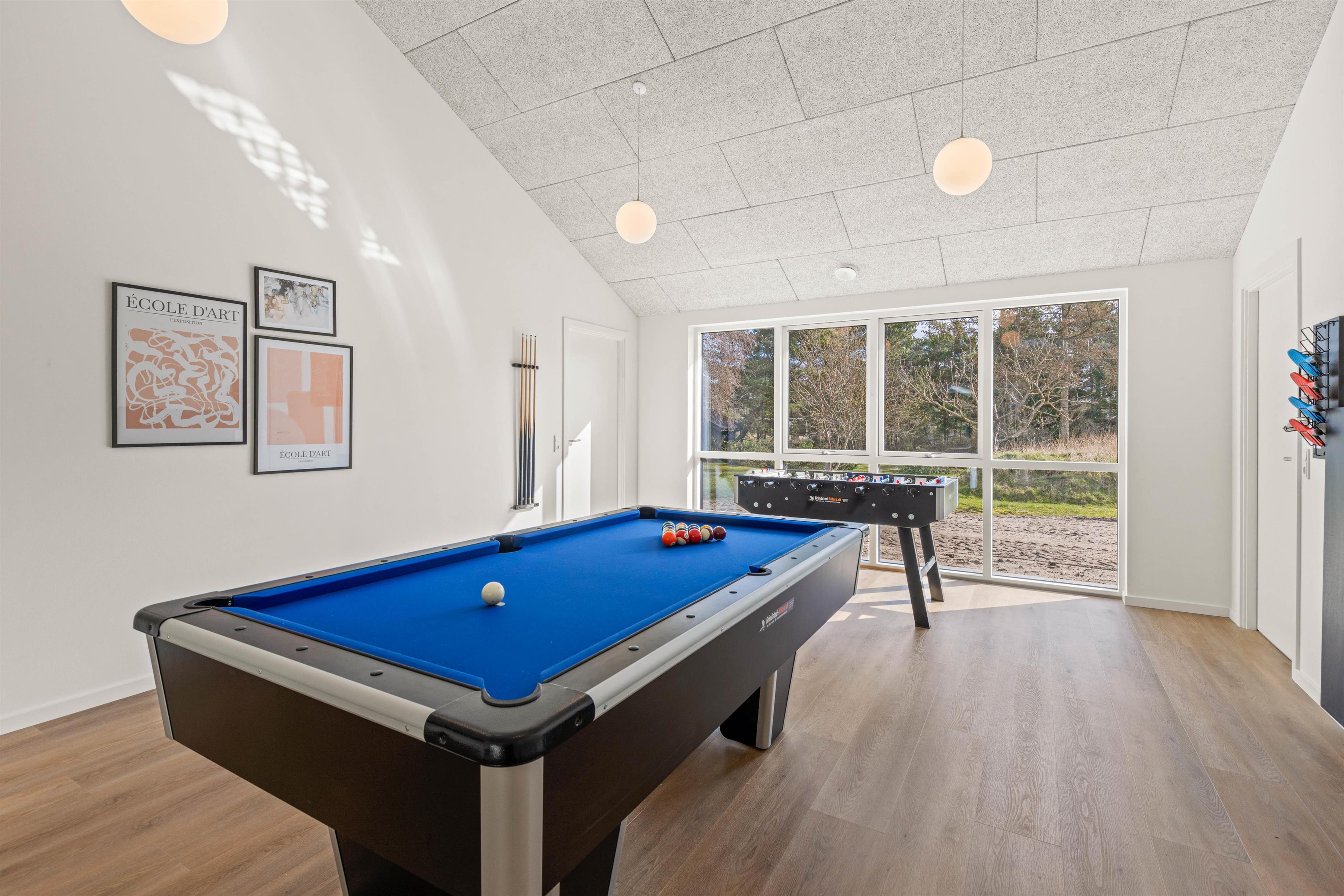 Direkte fra stuen er der adgang til det 30 m2 store multirum med både bordtennis og billard og mon ikke I finder tid til at kåre ferien mester.