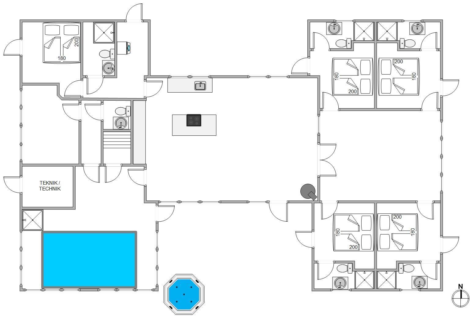 Det 269 m2 store luksushus kan danne rammen om en uforglemmelig ferie, hvor I i den grad forkæler jer selv. Den fine planløsning giver god plads til alle og gode muligheder for at være samme – også hver for sig. Lige fra ankomsten i den rummelige entre, hvor der er mulighed for at komme af med overtøjet, og videre ind i husets hjerte: det store køkken/alrum.