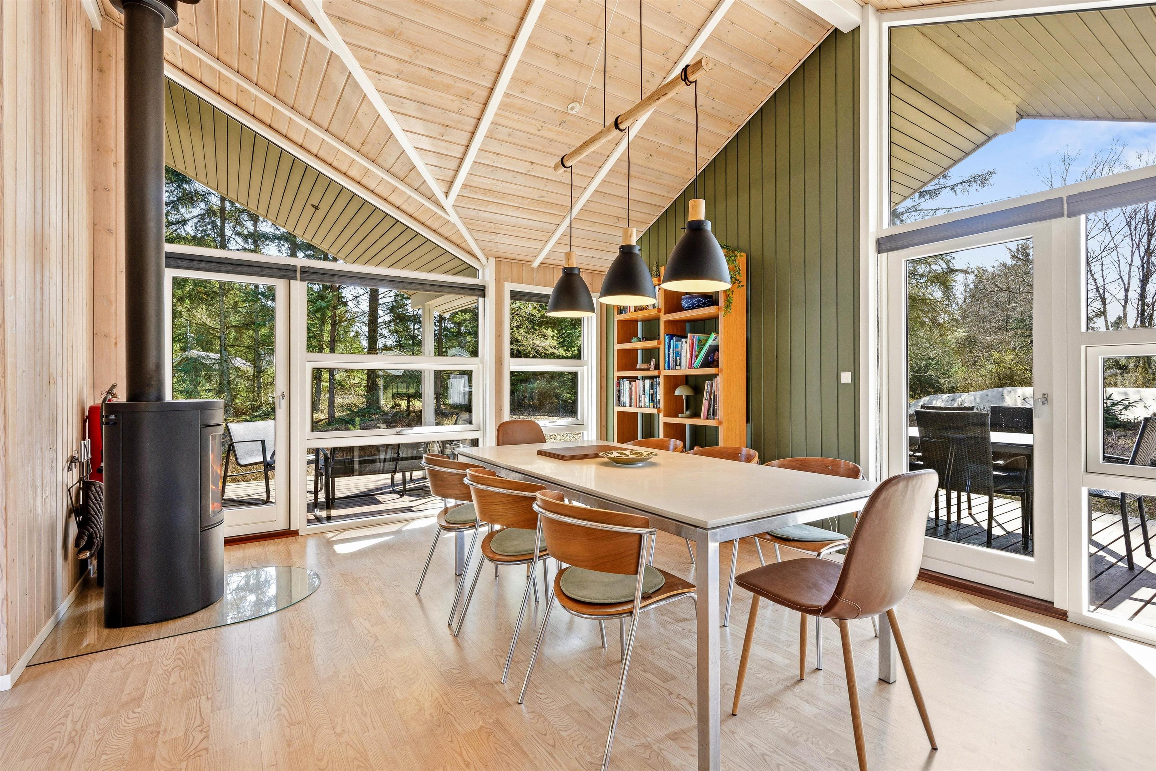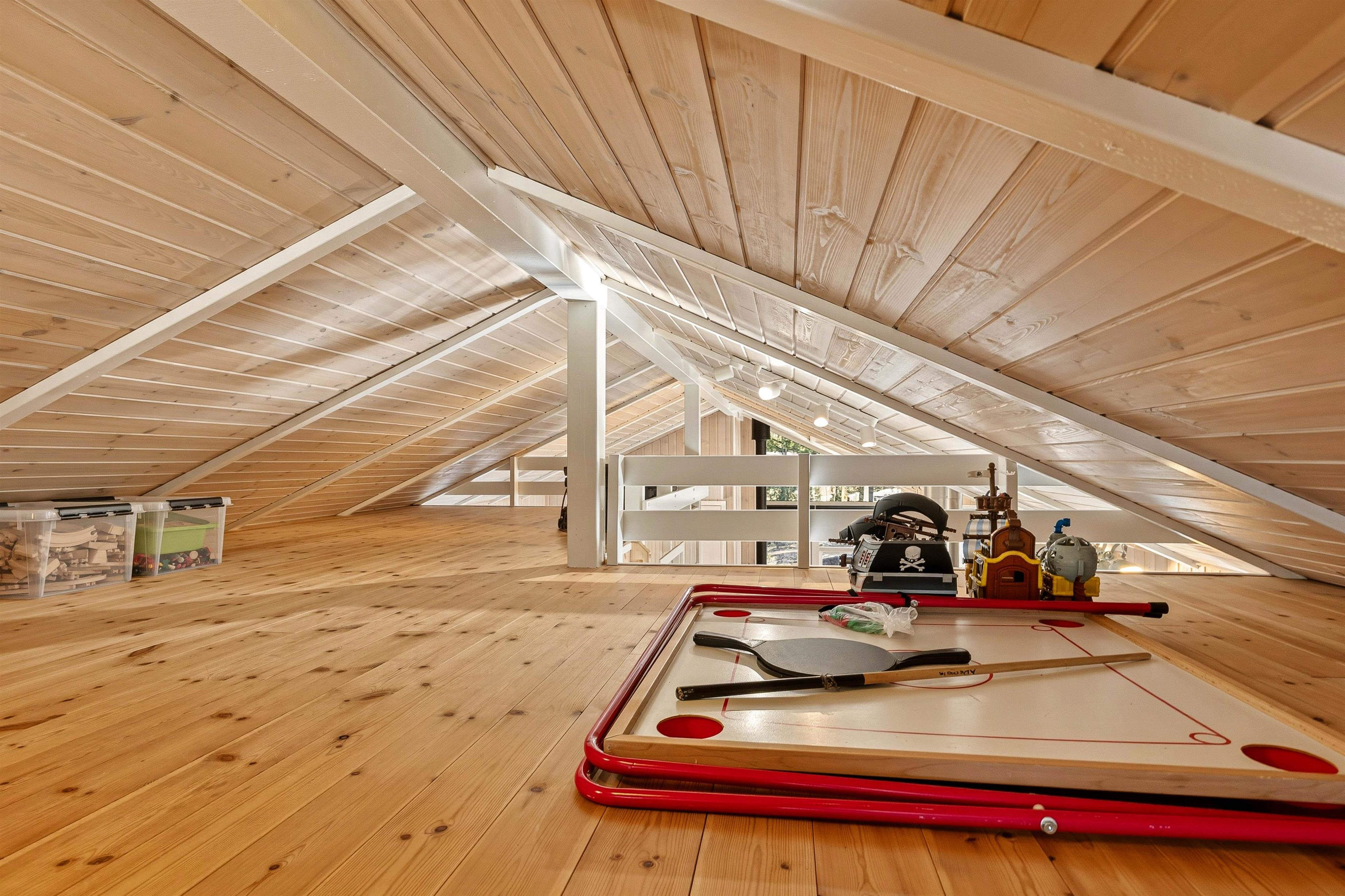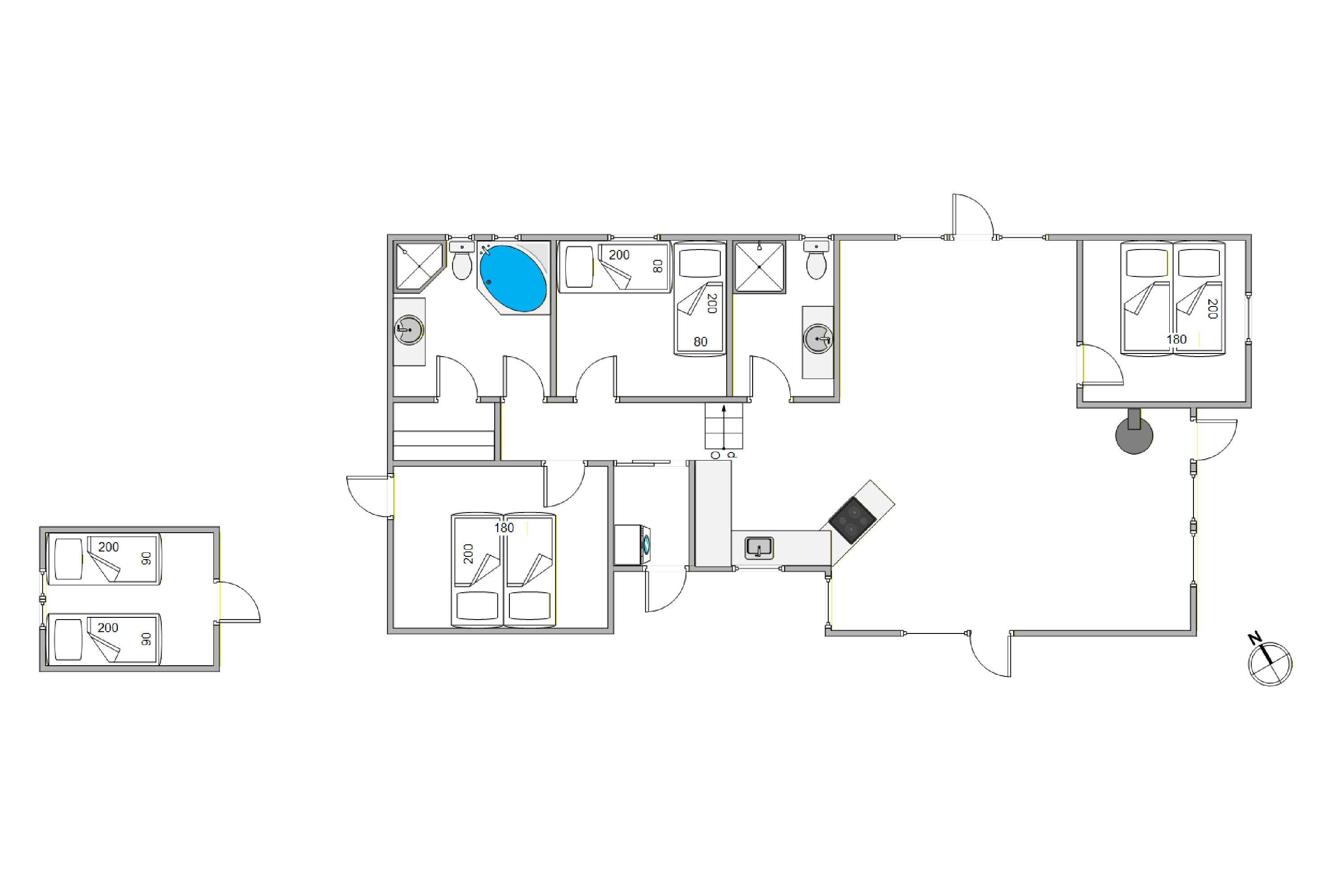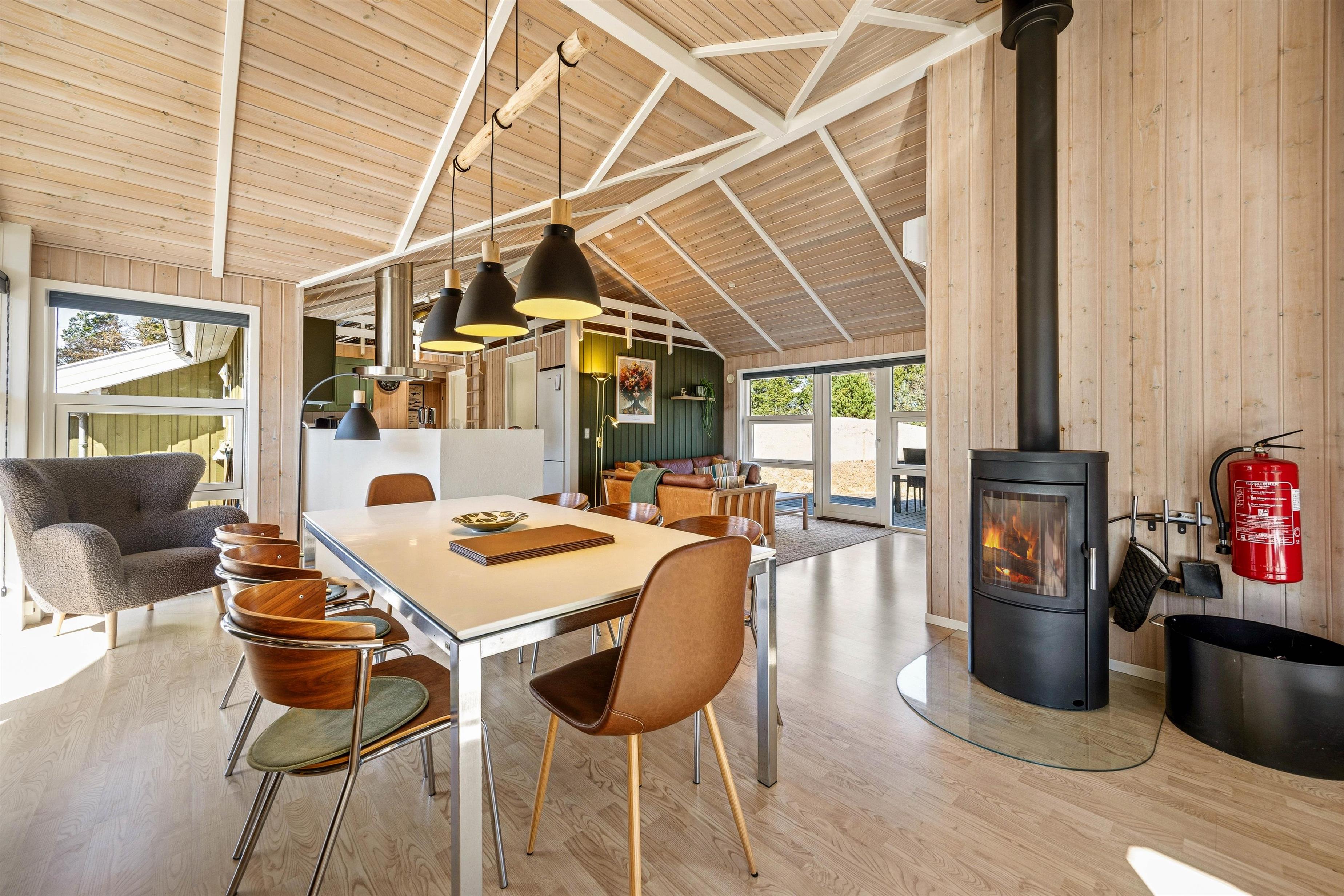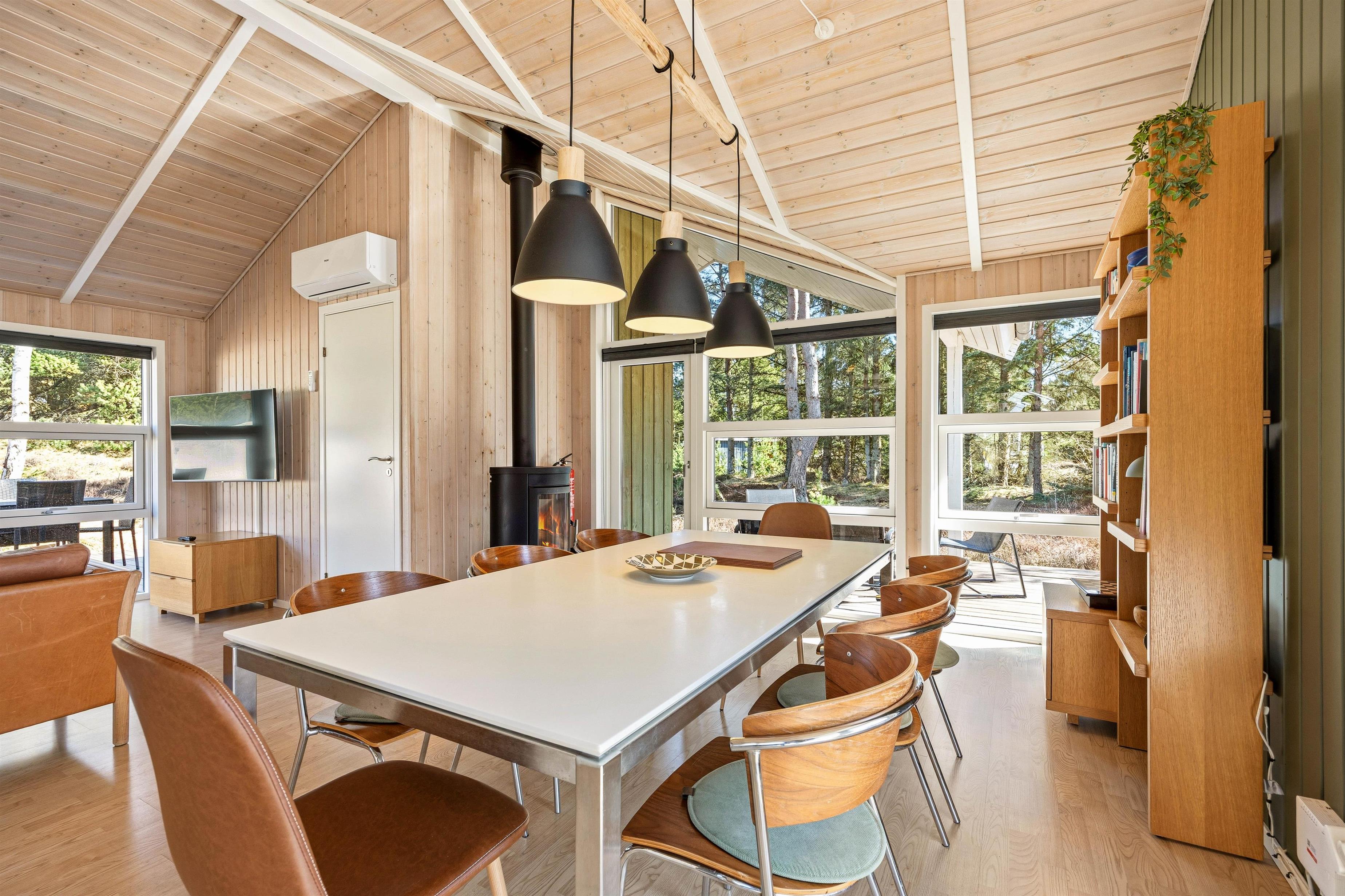 Sommerhuset er indrettet med 3 soveværelser og 1 anneks, så du får fleksible rammer, når I fordeler jer. Det gør det let at skabe både privatliv og fællesskab, uanset om I rejser som familie eller flere voksne sammen. De 2 badeværelser gør hverdagen mere smidig, især om morgenen, og gulvvarmen i badeværelset tilføjer en behagelig detalje, når dagen starter. Luft til luft varmepumpe hjælper med at holde et stabilt indeklima, og brændeovnen sætter prikken over i’et på aftener, hvor du vil nyde varmen og den særlige stemning, som kun levende flammer giver. Huset er udstyret med et Smart TV, så I selv kan logge ind på jeres streamingtjenester og se film og serier, når det passer jer.