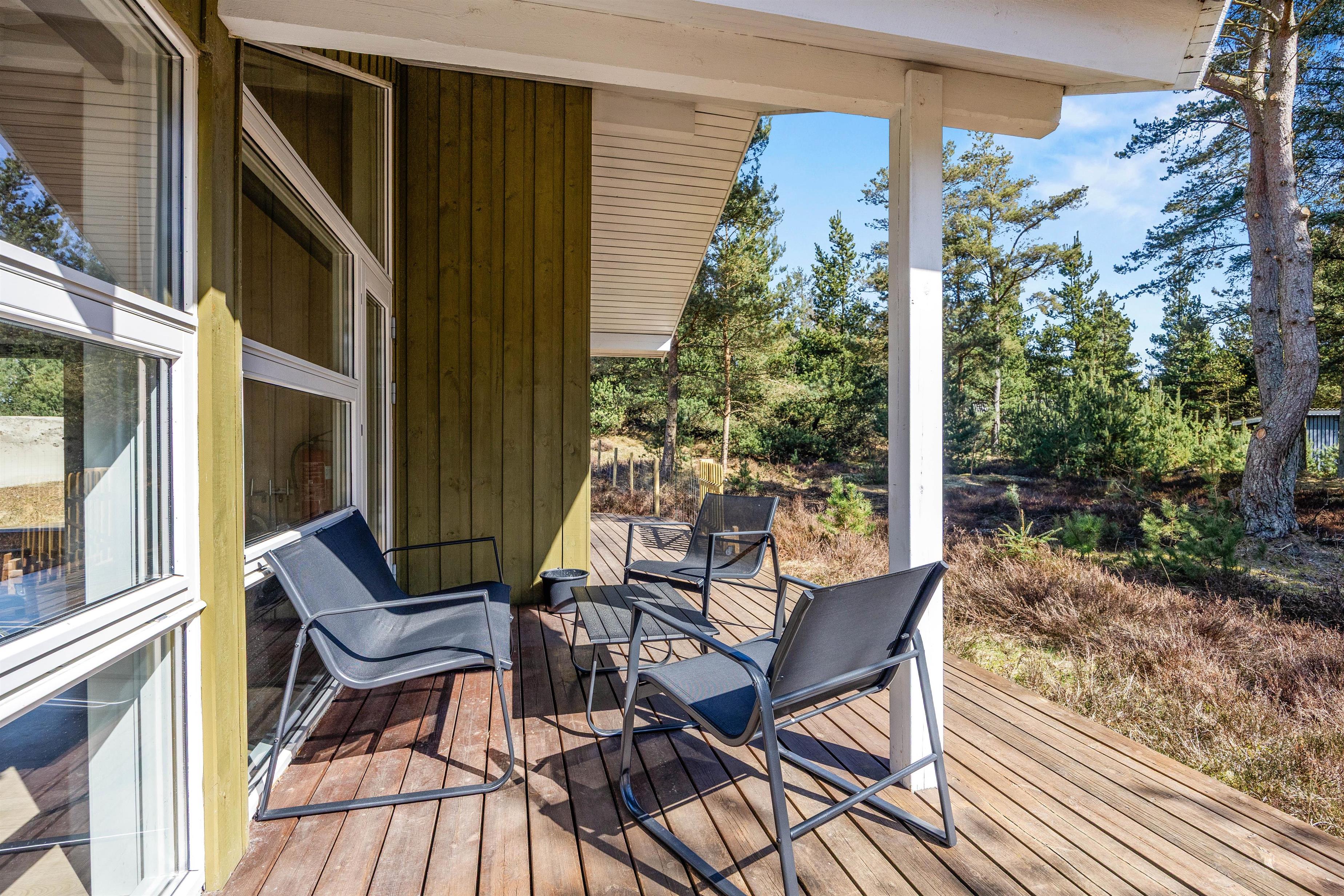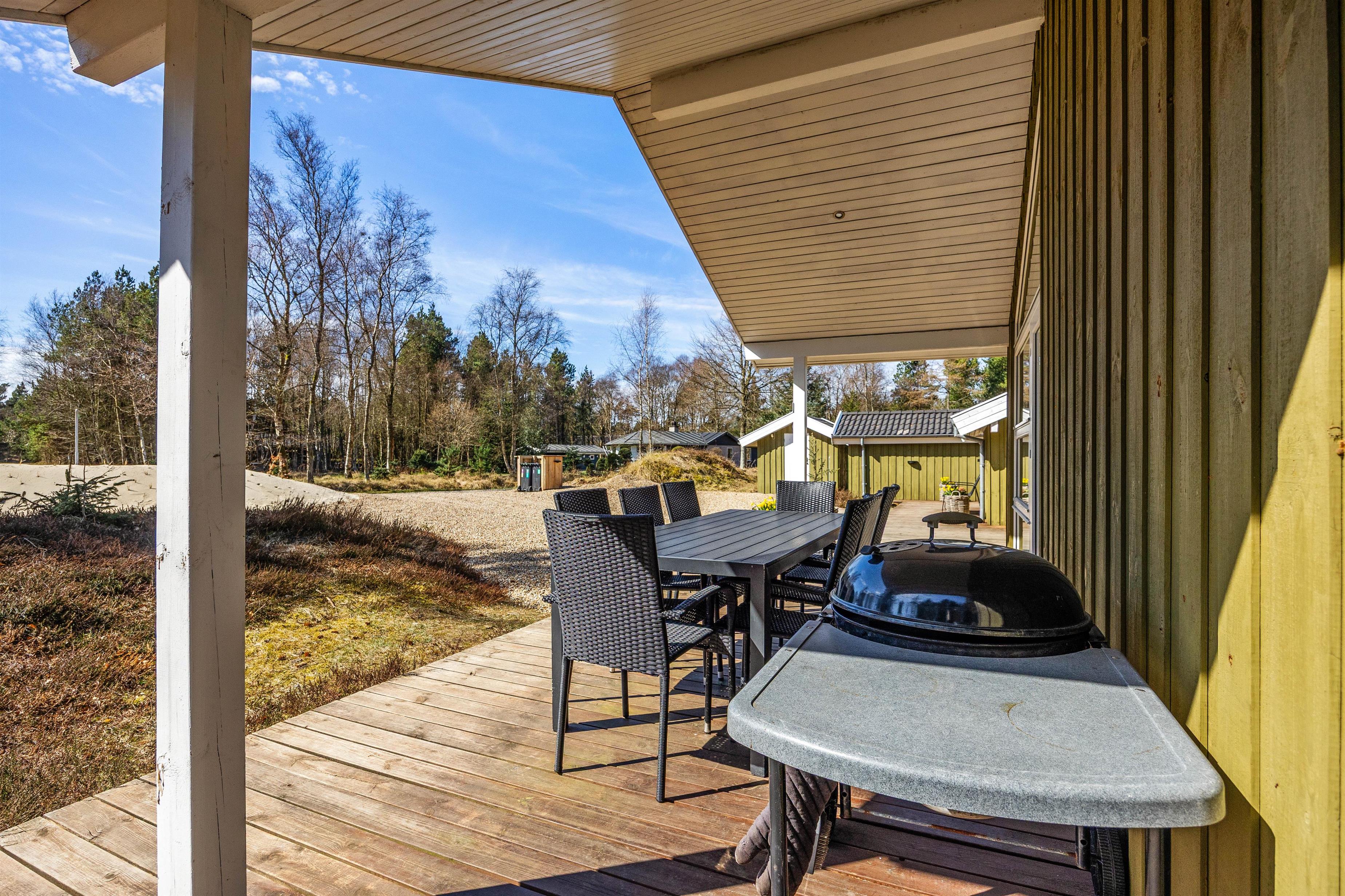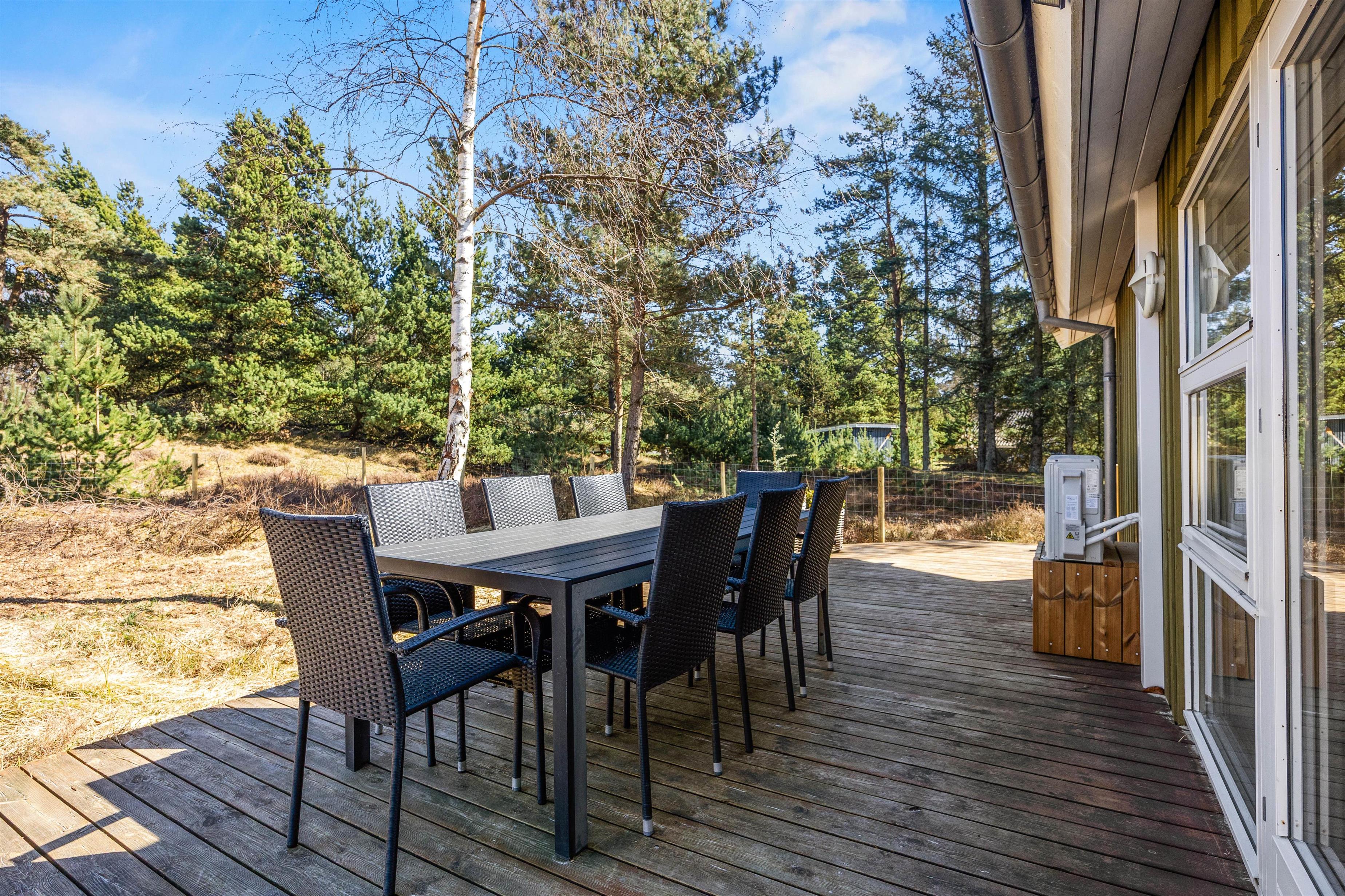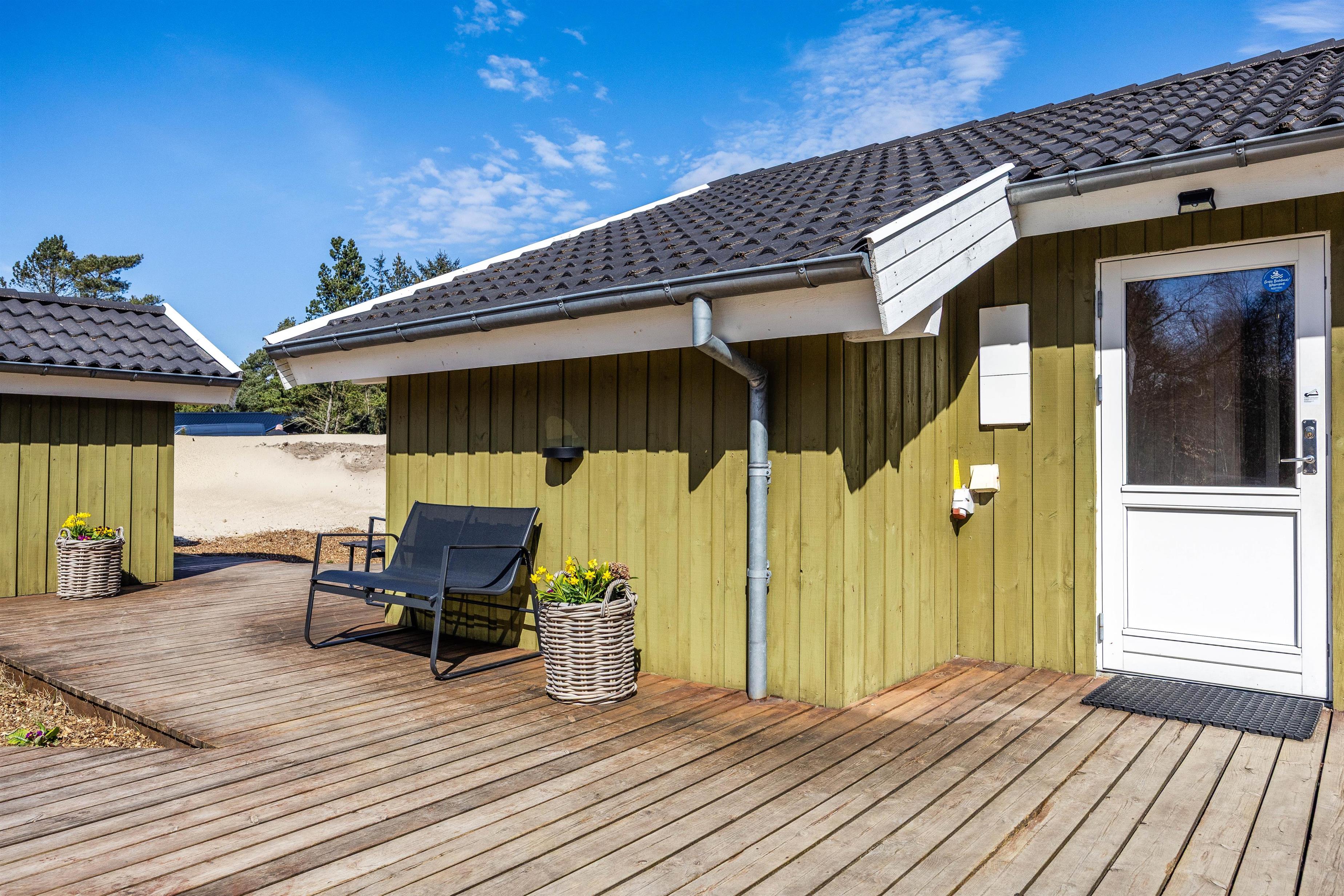 Udenfor kan du bruge den overdækkede terrasse som et naturligt samlingspunkt til måltider og pauser i det fri, også når vejret skifter. Den indhegnede grund er en stor fordel, når du rejser med hund, da hund er tilladt, og der må medbringes maksimalt 1 hund. Det giver en mere afslappet ferie, hvor du kan nyde udelivet med god tryghed omkring rammerne. Der er cirka 3500 m til havet, så du nemt kan tage turen til stranden, når du får lyst til en gåtur ved vandet eller til at mærke sandet mellem tæerne.