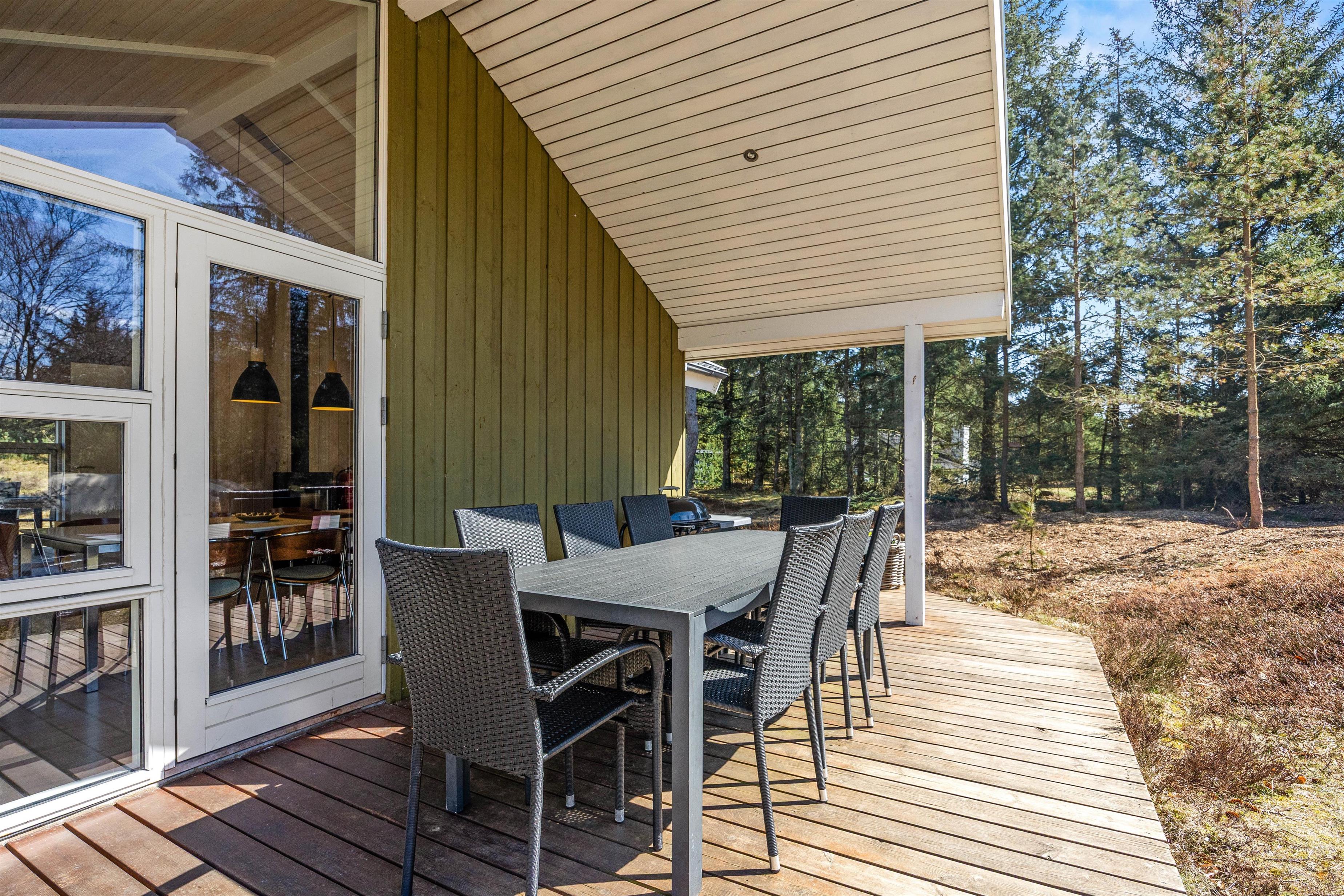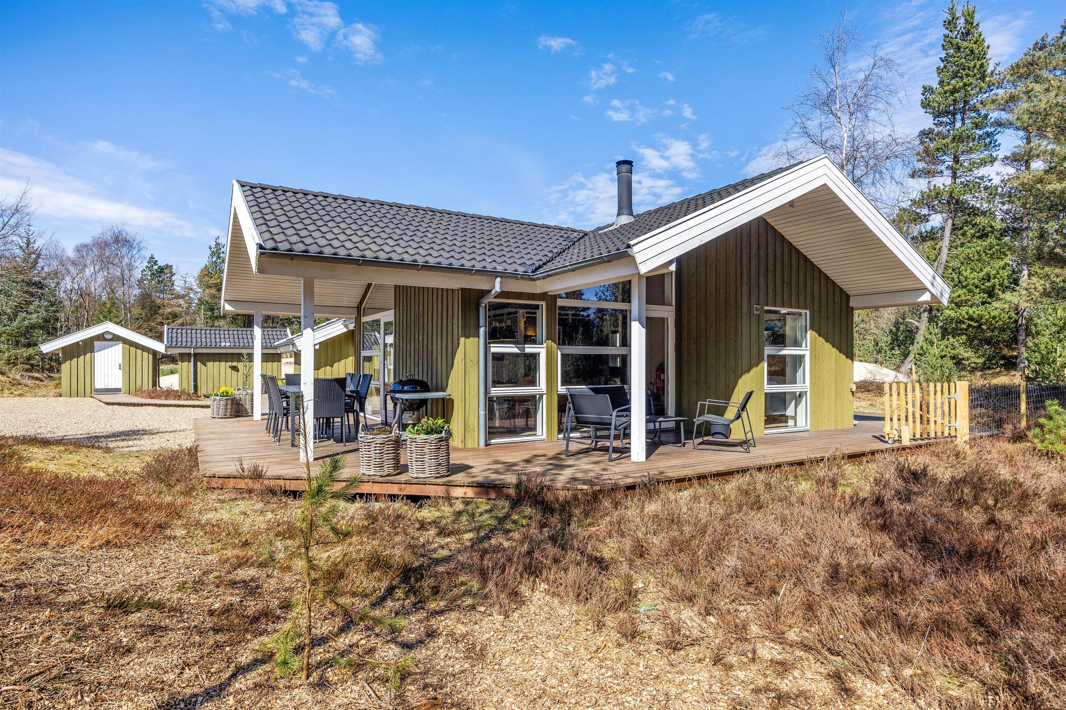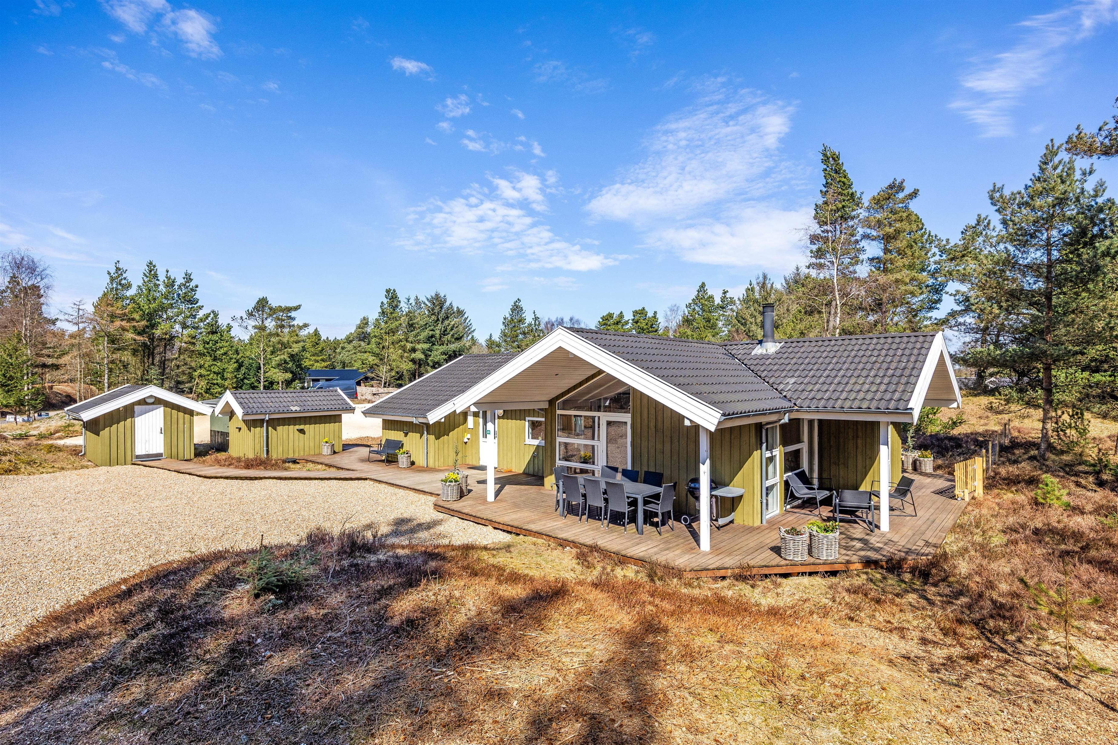 Udenfor kan du bruge den overdækkede terrasse som et naturligt samlingspunkt til måltider og pauser i det fri, også når vejret skifter. Den indhegnede grund er en stor fordel, når du rejser med hund, da hund er tilladt, og der må medbringes maksimalt 1 hund. Det giver en mere afslappet ferie, hvor du kan nyde udelivet med god tryghed omkring rammerne. Der er cirka 3500 m til havet, så du nemt kan tage turen til stranden, når du får lyst til en gåtur ved vandet eller til at mærke sandet mellem tæerne.