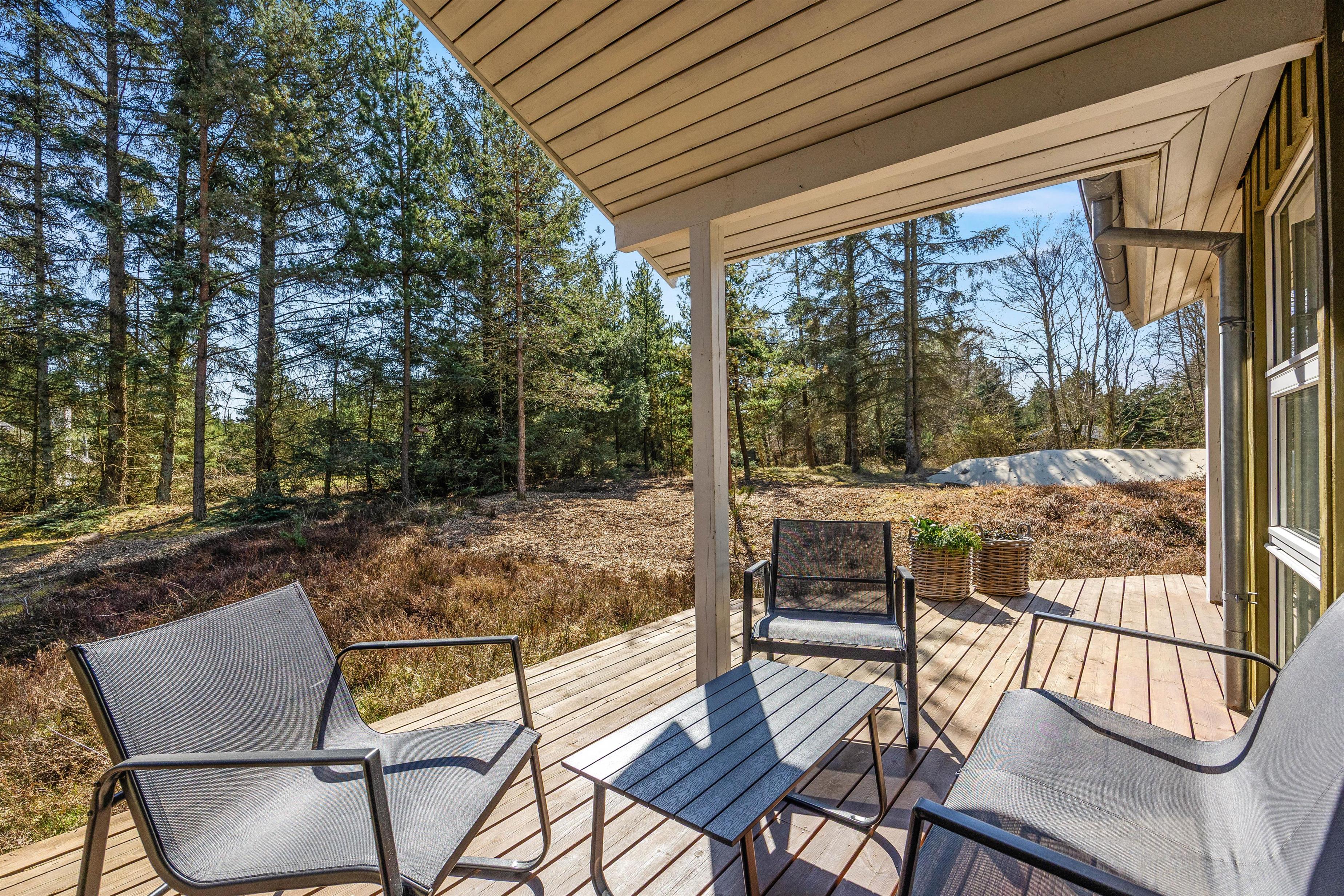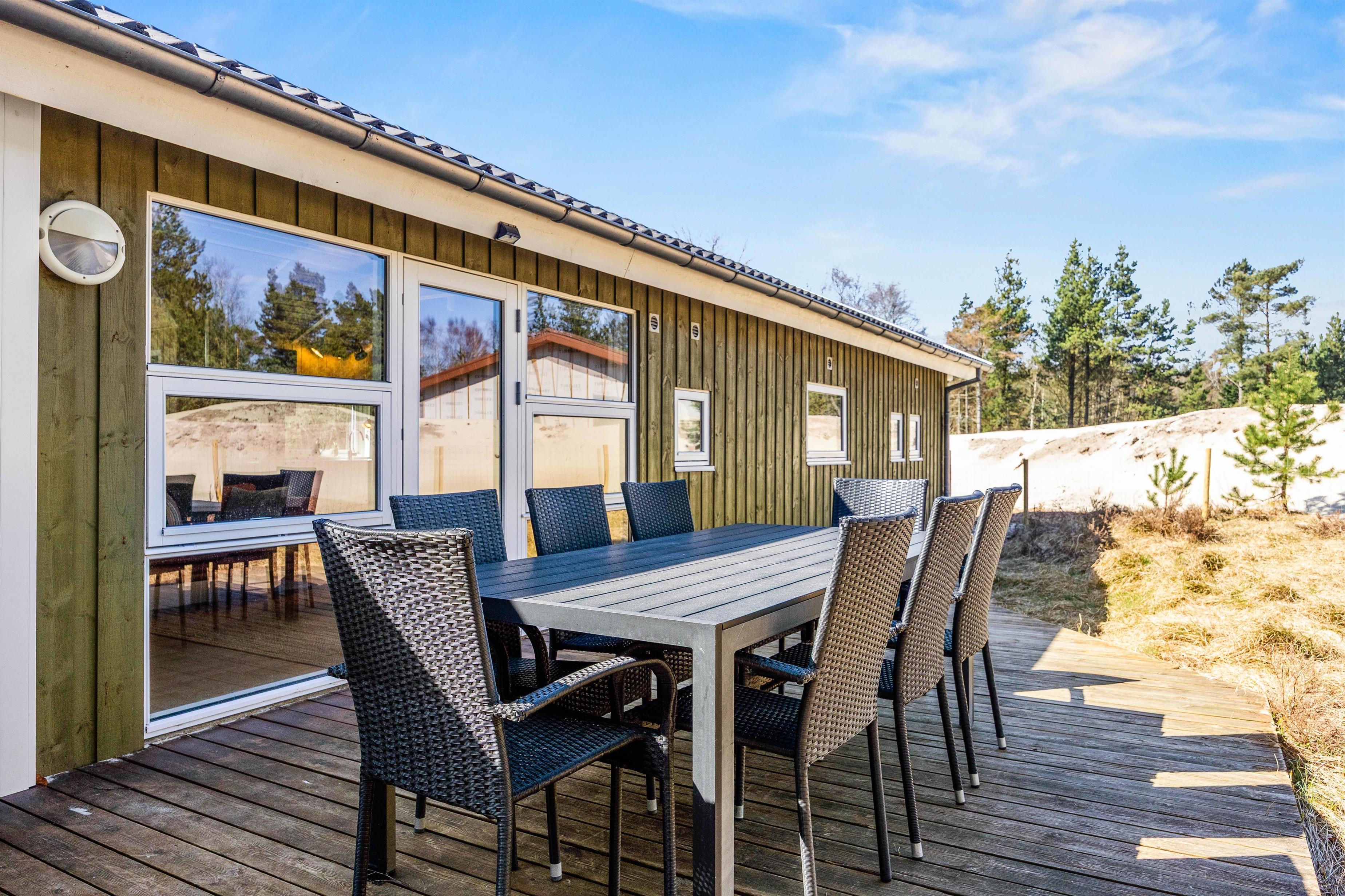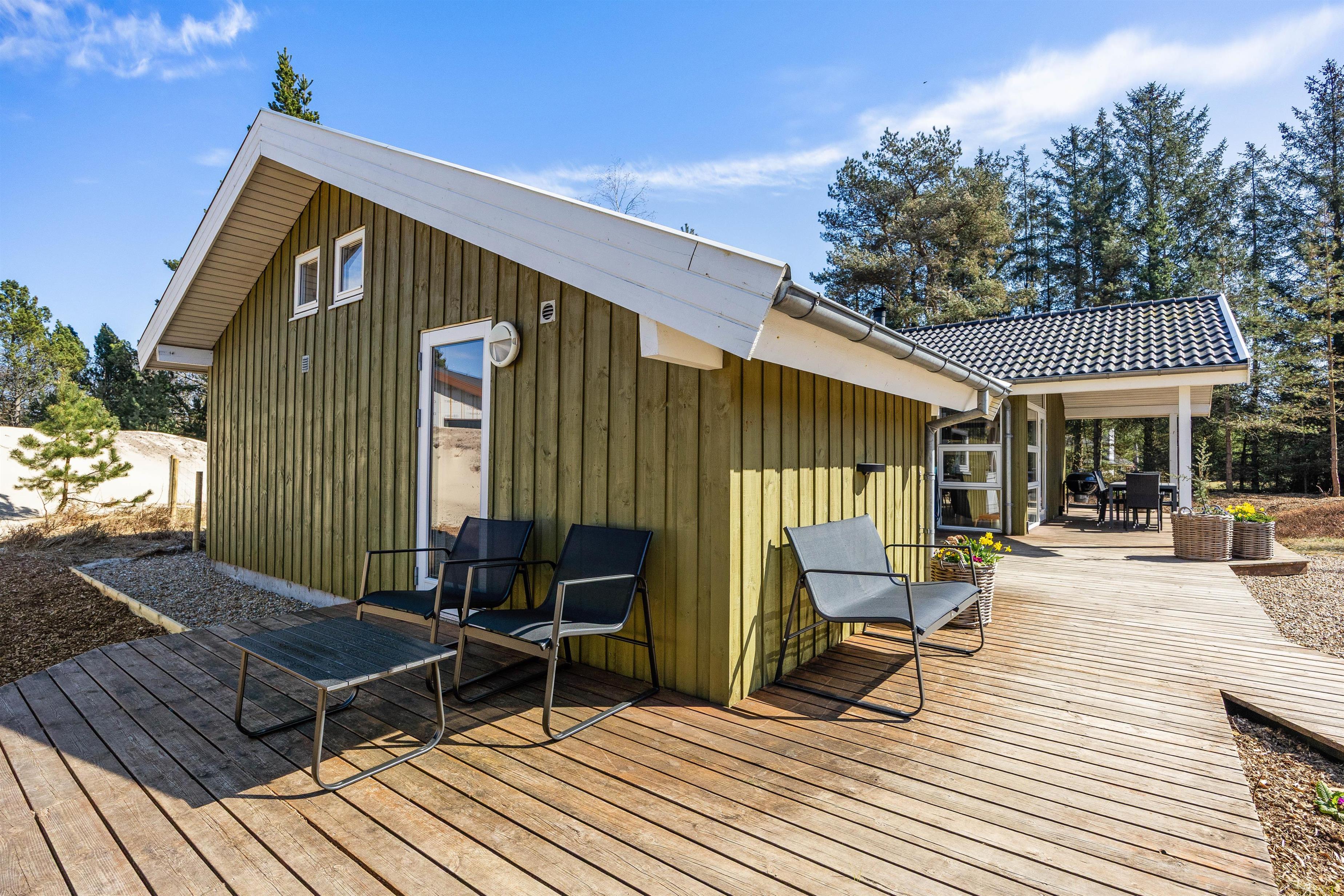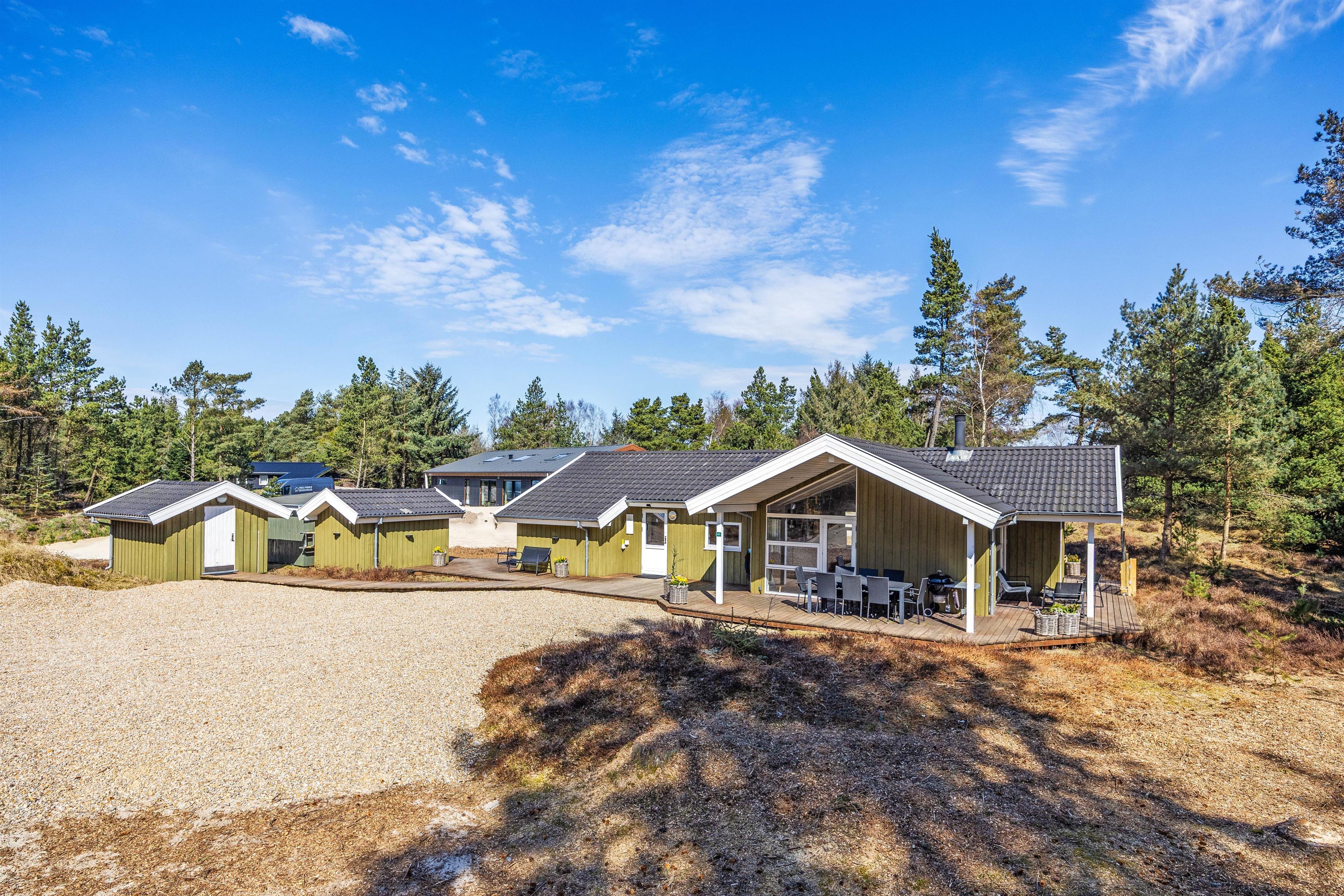 Udenfor kan du bruge den overdækkede terrasse som et naturligt samlingspunkt til måltider og pauser i det fri, også når vejret skifter. Den indhegnede grund er en stor fordel, når du rejser med hund, da hund er tilladt, og der må medbringes maksimalt 1 hund. Det giver en mere afslappet ferie, hvor du kan nyde udelivet med god tryghed omkring rammerne. Der er cirka 3500 m til havet, så du nemt kan tage turen til stranden, når du får lyst til en gåtur ved vandet eller til at mærke sandet mellem tæerne.