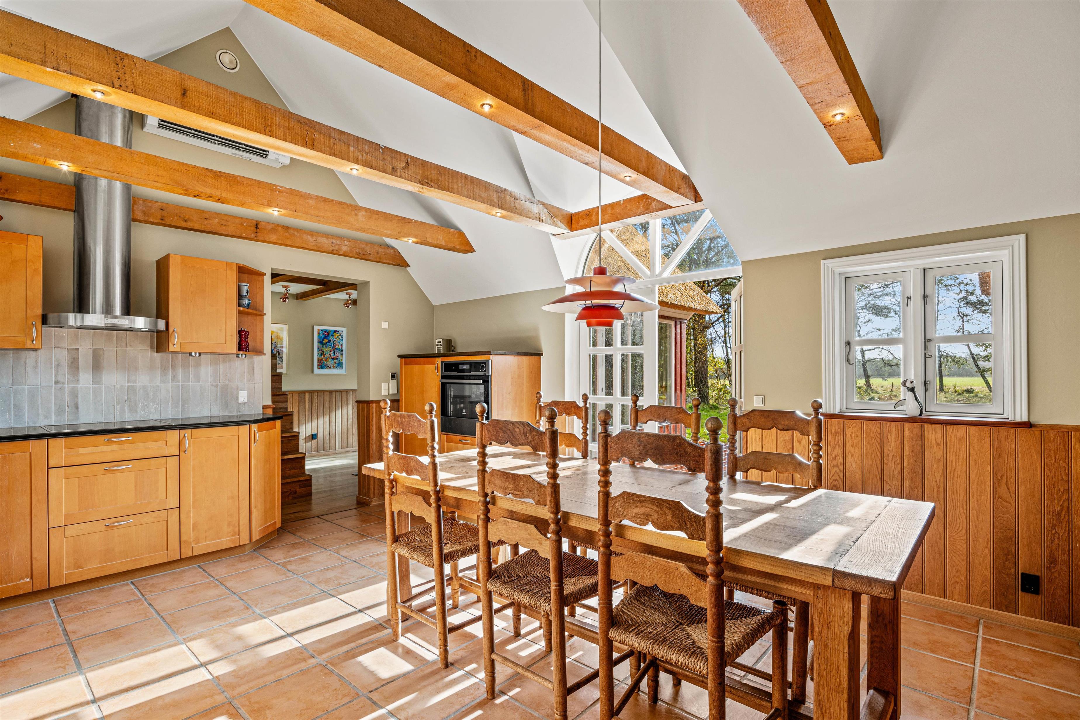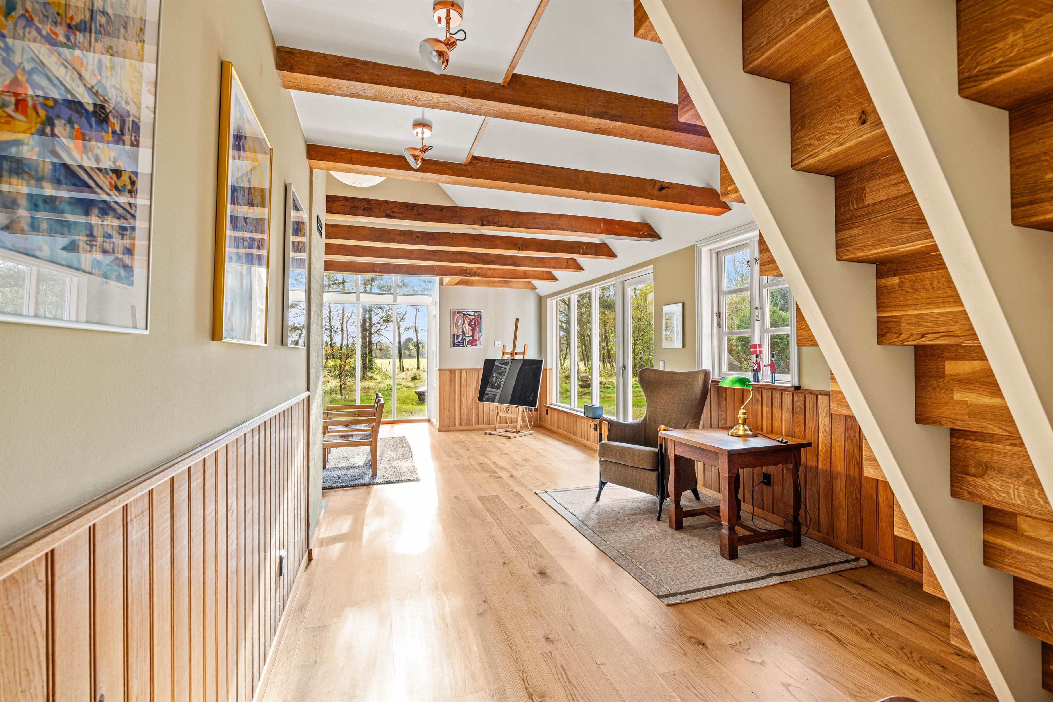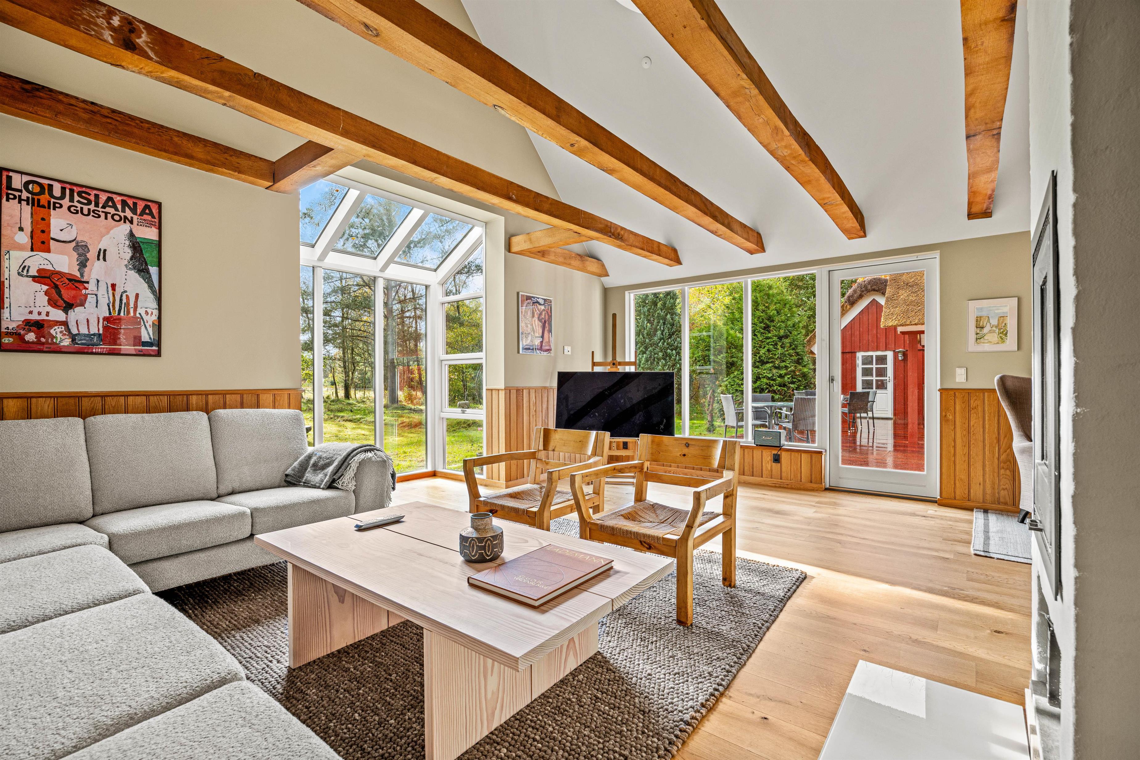 Allerede når du træder ind, vil du bemærke den varme og indbydende atmosfære i dette hus. Den rummelige stue på 117 m2 tilbyder plads nok til alle medrejsende, så I kan opleve skønne øjeblikke sammen.