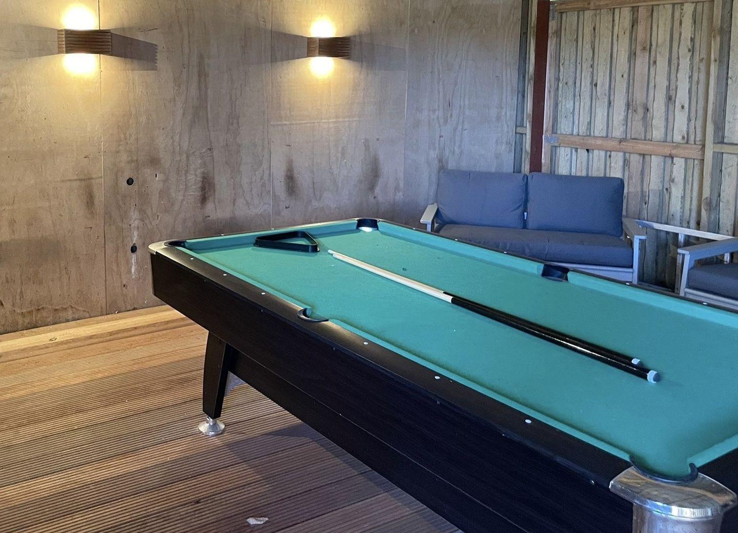 Es gibt einen Aktivitätsraum, wo der Billiardtisch steht und eine Sitzgelegenheit.