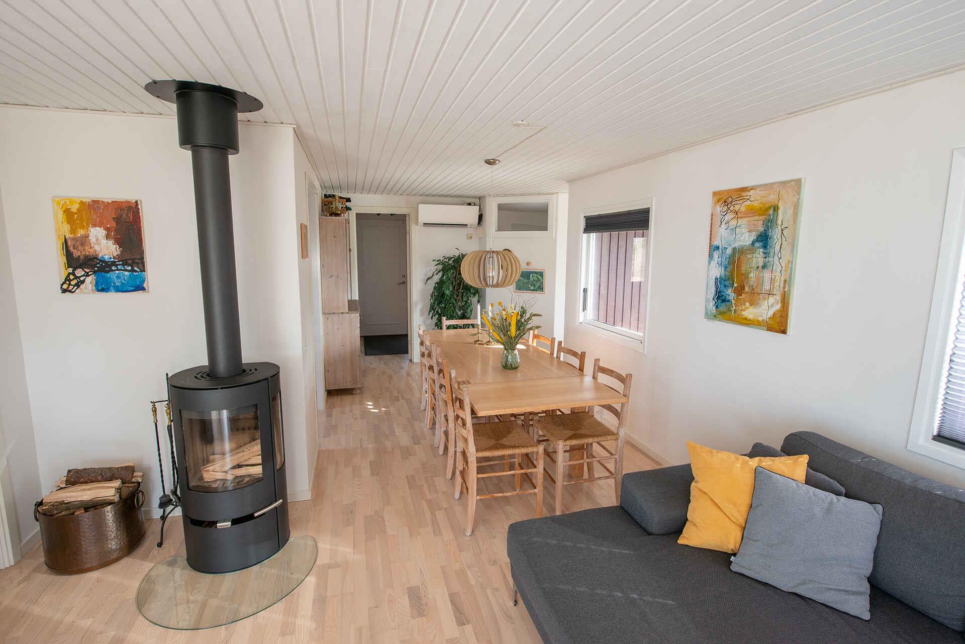 Oplev den stille ro ved Lammefjorden! Fra den indbydende træterrasse får du en uforlignelig panoramaudsigt over vandet og et beskyttet naturområde. Den sydvendte del tilbyder sol og læ med et overdækket område. Solnedgangen fra marts til september er et syn, der fanger enhver. Indendørs byder 92 m² på en rummelig kombineret spise- og opholdsstue. To soveværelser med dobbeltsenge og et hyggeligt køjesengsværelse gør det ideelt til op til 6-7 personer. Køkkenet er veludstyret; alt lige fra en klassisk kaffemaskine til en Nespresso med mælkeskummer. Udendørs er børnefamiliens paradis. En rummelig græsplæne med gynger og rutsjebane venter på leg og hygge. Og et stenkast derfra finder du Kisserup Strand, perfekt til små vadeeventyr. For naturelskere er området oplagt. Det praler med en skøn strandeng og Kisserup Strand. Og lystfiskere kan prøve lykken ved kysten. For dem med en el-bil, er huset er forberedt med ladeinfrastruktur. Kom og oplev alt dette, kun en kort gåtur fra bus nr. 505 fra Holbæk Station. En ferieoplevelse venter!