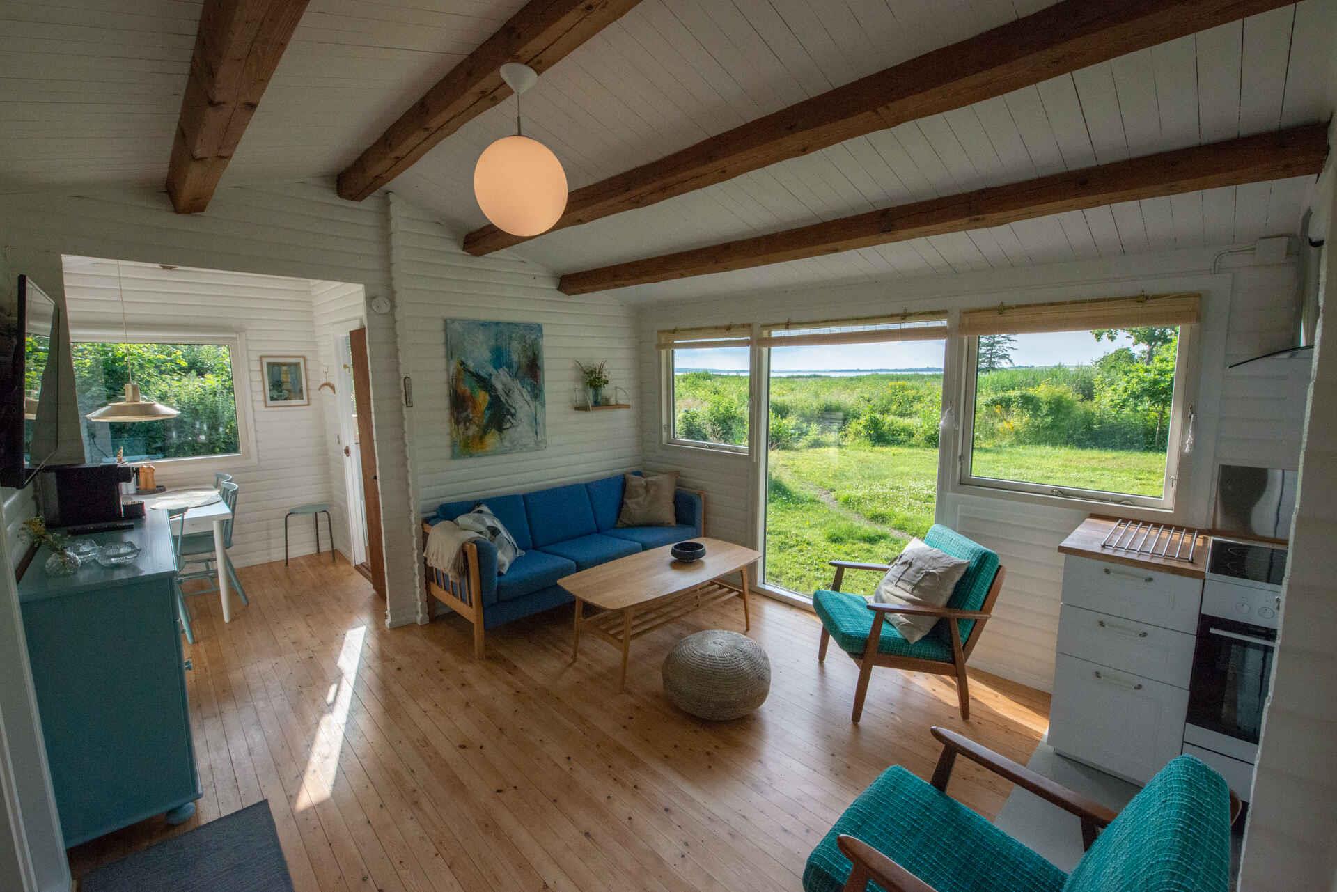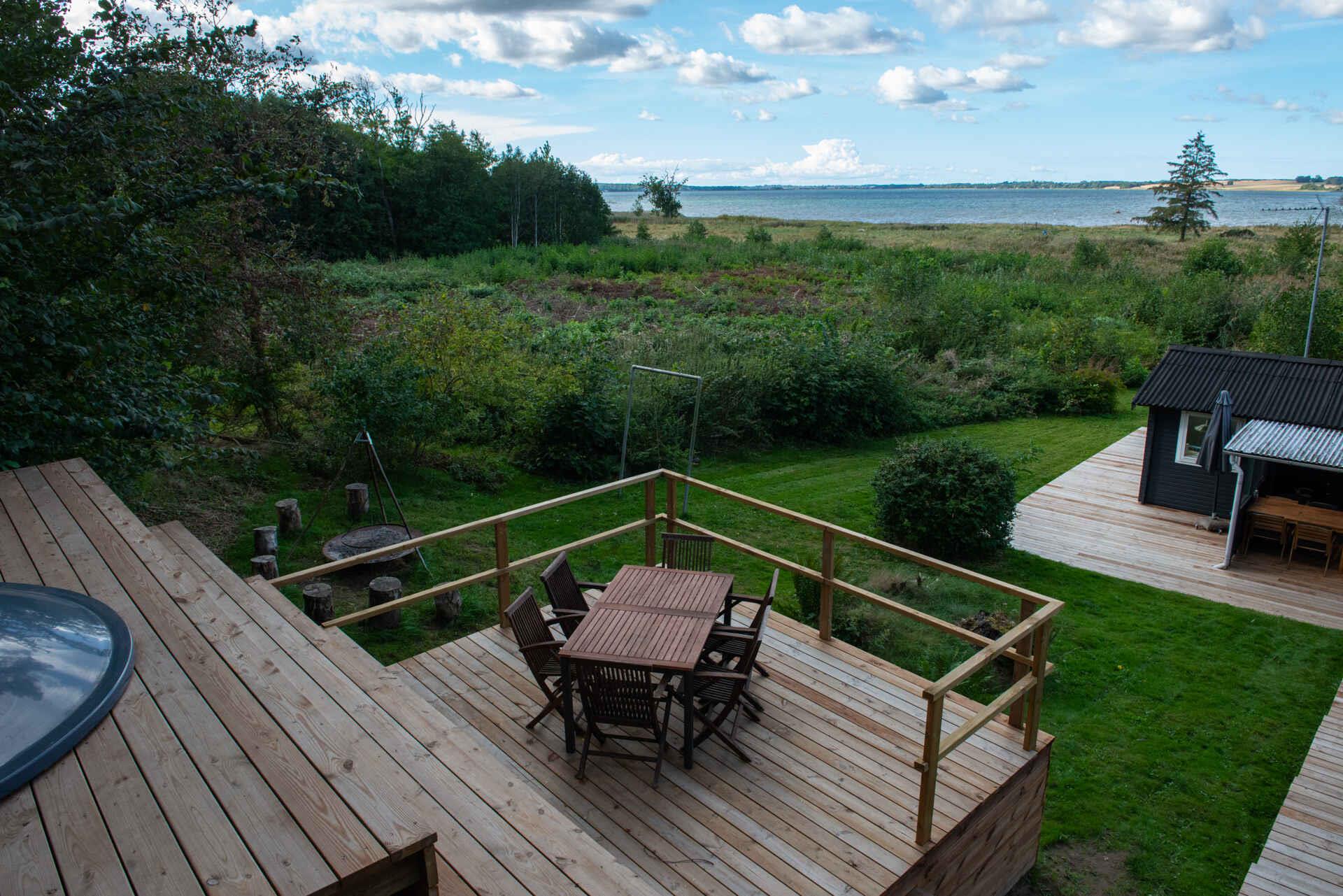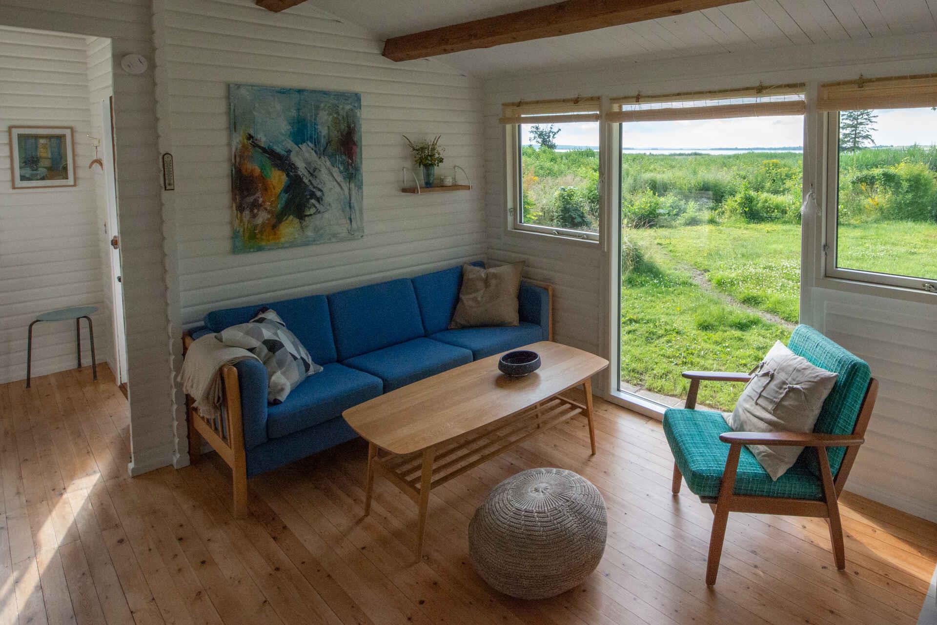 Hyggeligt sommerhus, beliggende direkte til naturområde og kun 130 meter fra vandet. Med fortryllende udsigt over Lammefjorden - med himlen og vandet som et altid skiftende maleri. Vildmarksbad er integreret i terrassen og højt placeret med udsigt.