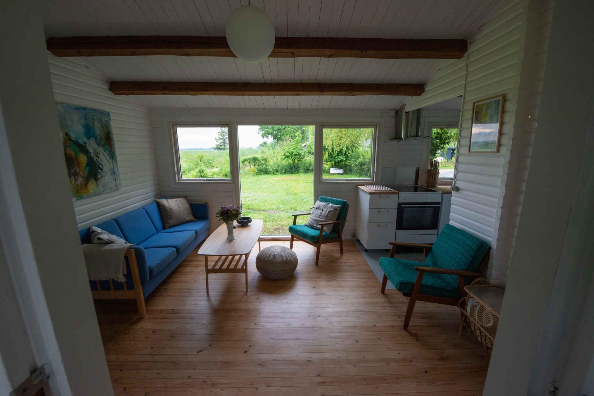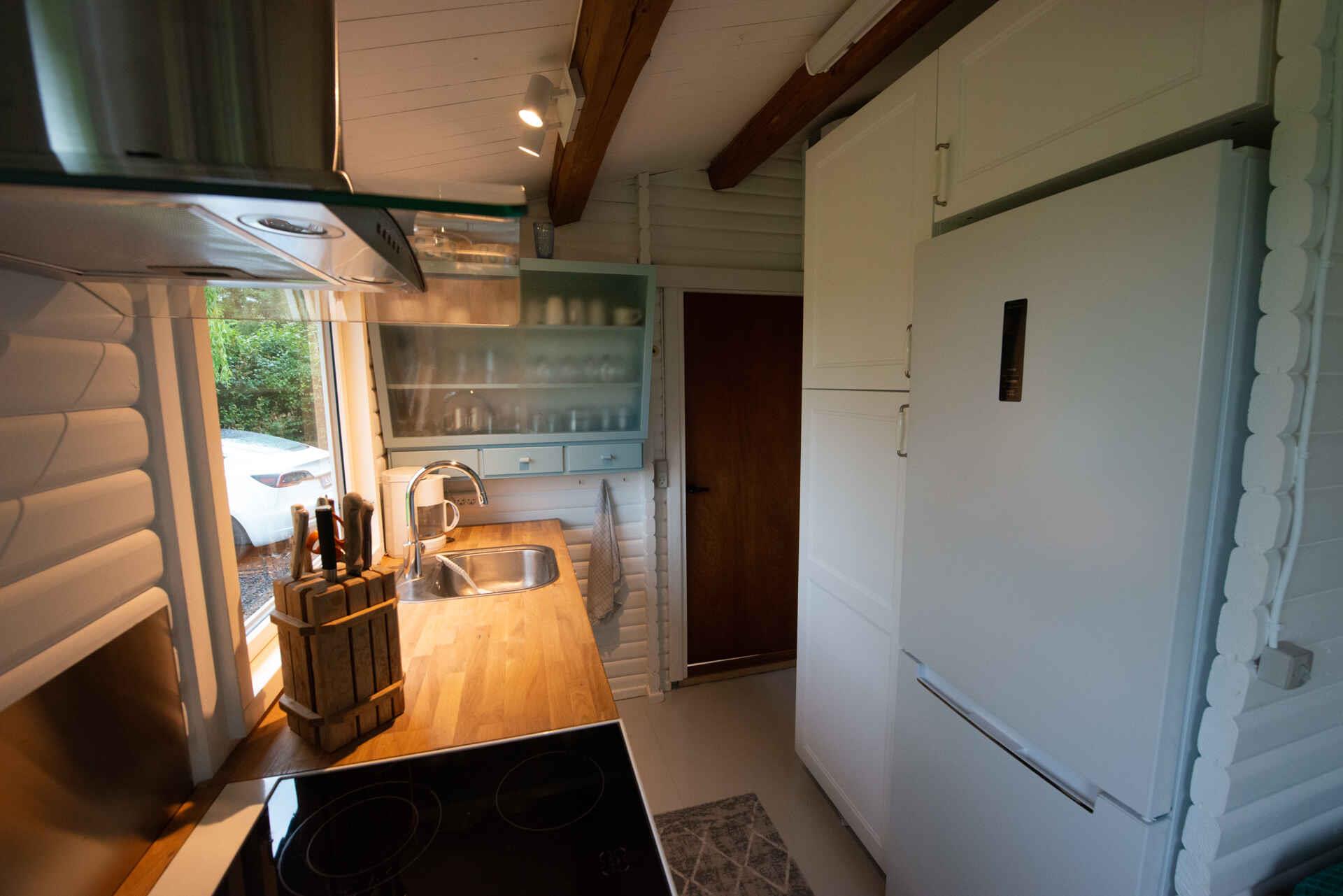 Sommerhuset, beliggende for enden af en stille vej, er omsluttet af natur. Mod vest og nordvest træder Lammefjorden og kystområdet frem. Her byder landskabet på skønne strandenge. Terrassen mod syd garanterer solskinstimer, og når dagen ebber ud, betages man af solnedgangen over fjorden fra april til august. Indendørs venter en integreret spise- og opholdsstue, hvor vandet ligeledes trækker blikket. Med to soveværelser, hvoraf det ene har en overkøje, tilbyder huset plads til fire voksne og et barn. På de 42m2 er der også et veludstyret køkken, som intet lader mangle. Udenfor lokker den grønne græsplæne til leg, mens et bålsted med brænde inviterer til hyggelige aftener. Kort herfra finder du Kisserup Strand. Den børnevenlige kyst er kompletteret med en lang badebro om sommeren. For den luksusglade er der et opvarmet vildmarksbad med panoramaudsigt over fjorden. Læg dertil parkeringsmuligheder, nem adgang til offentlig transport, og huset bliver den perfekte base. Huset er et blokhus bjælkehus, og om vinteren skal man være opmærksom på at der kan være fodkoldt, så man bør medbringe et par sutsko eller tykke sokker. Der er dog både varmepumpe, gulvarme i badeværelset og elradiatorer i alle rum, så det er ikke et problem at varme huset op. Bemærk: Sikkerhed er prioritet, så hold øje med de yngste nær grøften og skrænten. Kom og oplev roen, naturen og skønheden ved sommerhuset.