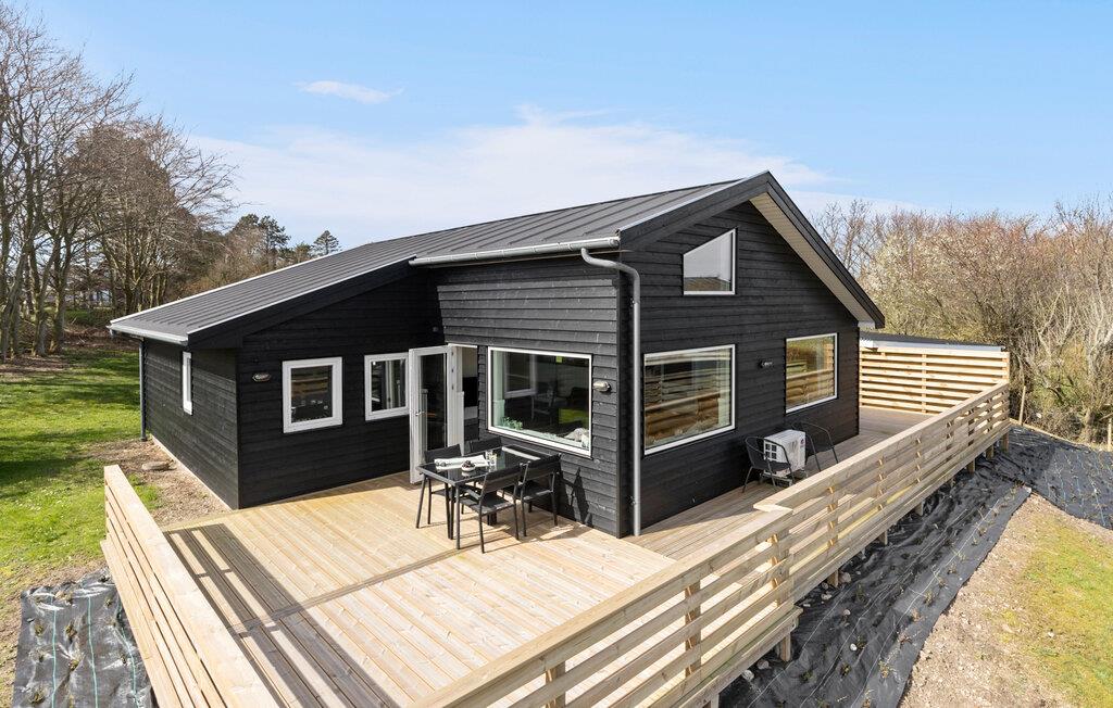 Flot træhus ved Holme Strand med havudsigt, stor terrasse og nærhed til strand og attraktioner i Ebeltoft.