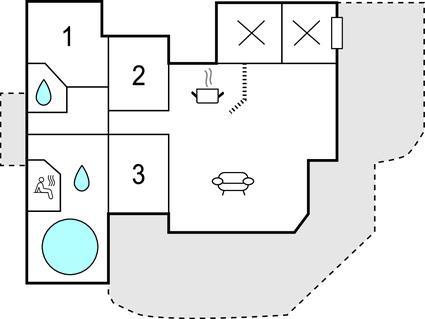 Badeværelse 15m2 (nr. 1) - WC. Varmt og koldt vand. Bruser