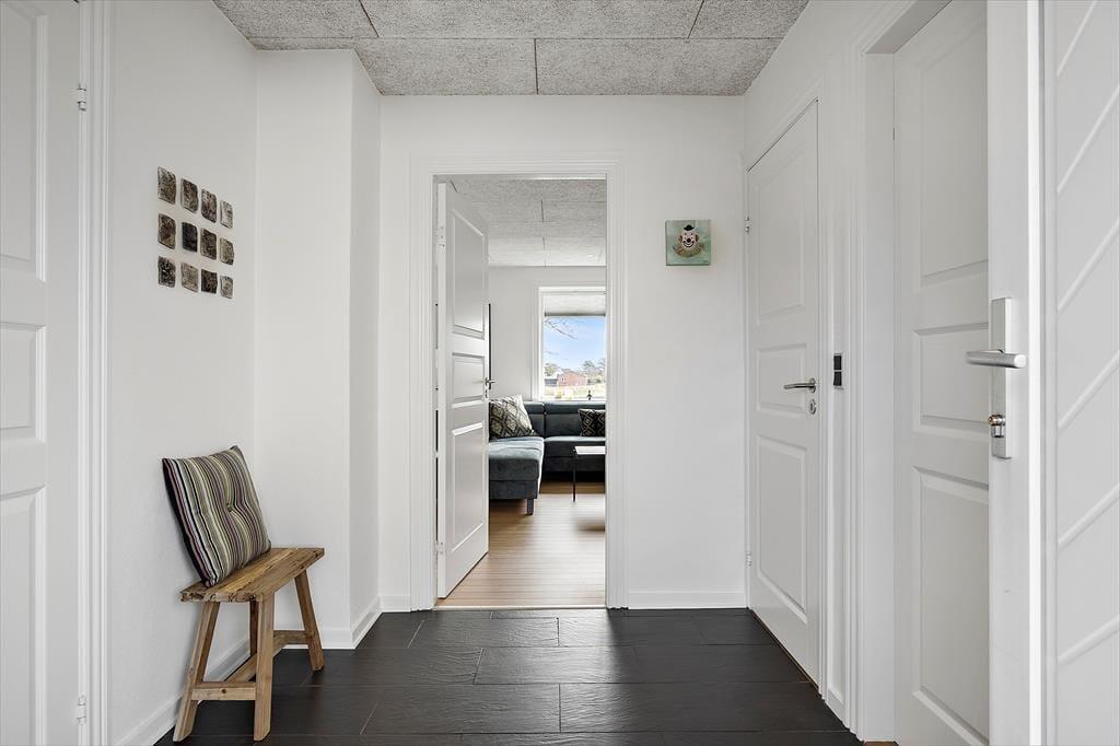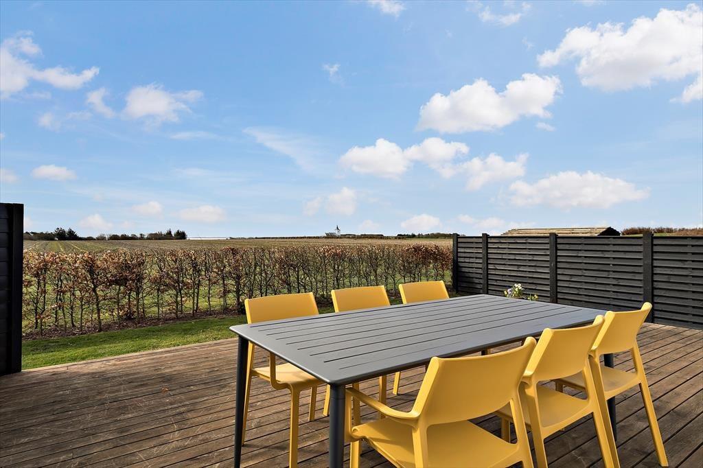 Fra huset har I udsigt over åbne marker mod Ringkøbing Fjord og Gammelsogn Kirke – ikke mindst fra træterrassen, der er orienteret mod syd. Grunden, der måler 800 m2, er anlagt med græsplæne og et grusbelagt areal til parkering. Bemærk, at på grund af den høje kælder skal I tage en trappe for at komme op til husets entré. Derudover skal det nævnes, at I har masser af plads til opbevaring af surfudstyr, cykler og andet grej i husets kælderrum, der er aflåst.