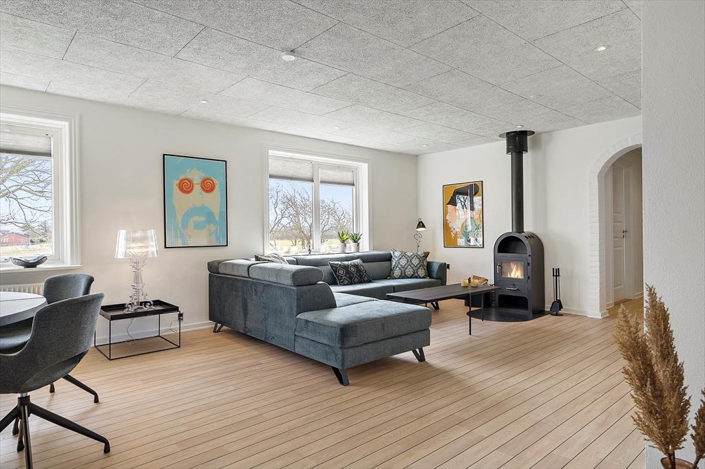 Sommerhuset er oprindeligt opført som en helårsvilla, og efter en renovering i 2023 fungerer det nu glimrende som en stor og moderne feriebolig til seks personer. Planløsningen byder på tre gode soveværelser og et badeværelse med hjørnespa, og i den rummelig kælder er der blandt andet vaskefaciliteter og en stor fryser. I den skønne stue kan I hygge jer ved brændeovnen, og hvis I trænger til underholdning, har I mulighed for at streame film via Chromecast eller vælge blandt danske DR og mange tyske kanaler på fladskærms-tv’et. I kan også bruge tiden på at kræse om maden i det flotte åbne køkken. Det er særdeles veludstyret, med alt lige fra opvaskemaskine og ovn i ståhøjde til en lækker espressomaskine – og så er der for øvrigt amerikanerkøleskab med isterningemaskine, så I nemt kan køle jeres drinks ned, inden de serveres på terrassen.