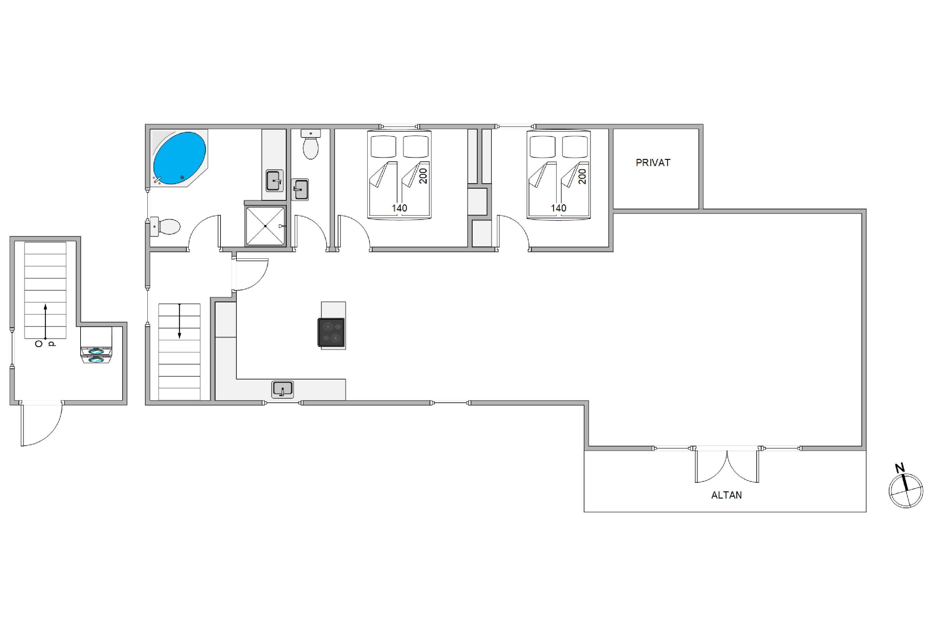 Fra entreen går I op ad en trappe, hvorefter I kommer ind i ferielejligheden på 90 kvadratmeter, der råder over hele 2 gode og rummelige soveværelser. Begge soveværelser er indrettet med en dobbeltseng, og har god med skabsplads, til jeres medbragte ferietøj. Ferielejligheden råder også over 1 badeværelse og 1 gæstetoilet, hvoraf I på badeværelset finder et spabad, hvor I rigtig kan slappe af, og bare nyde I har ferie.