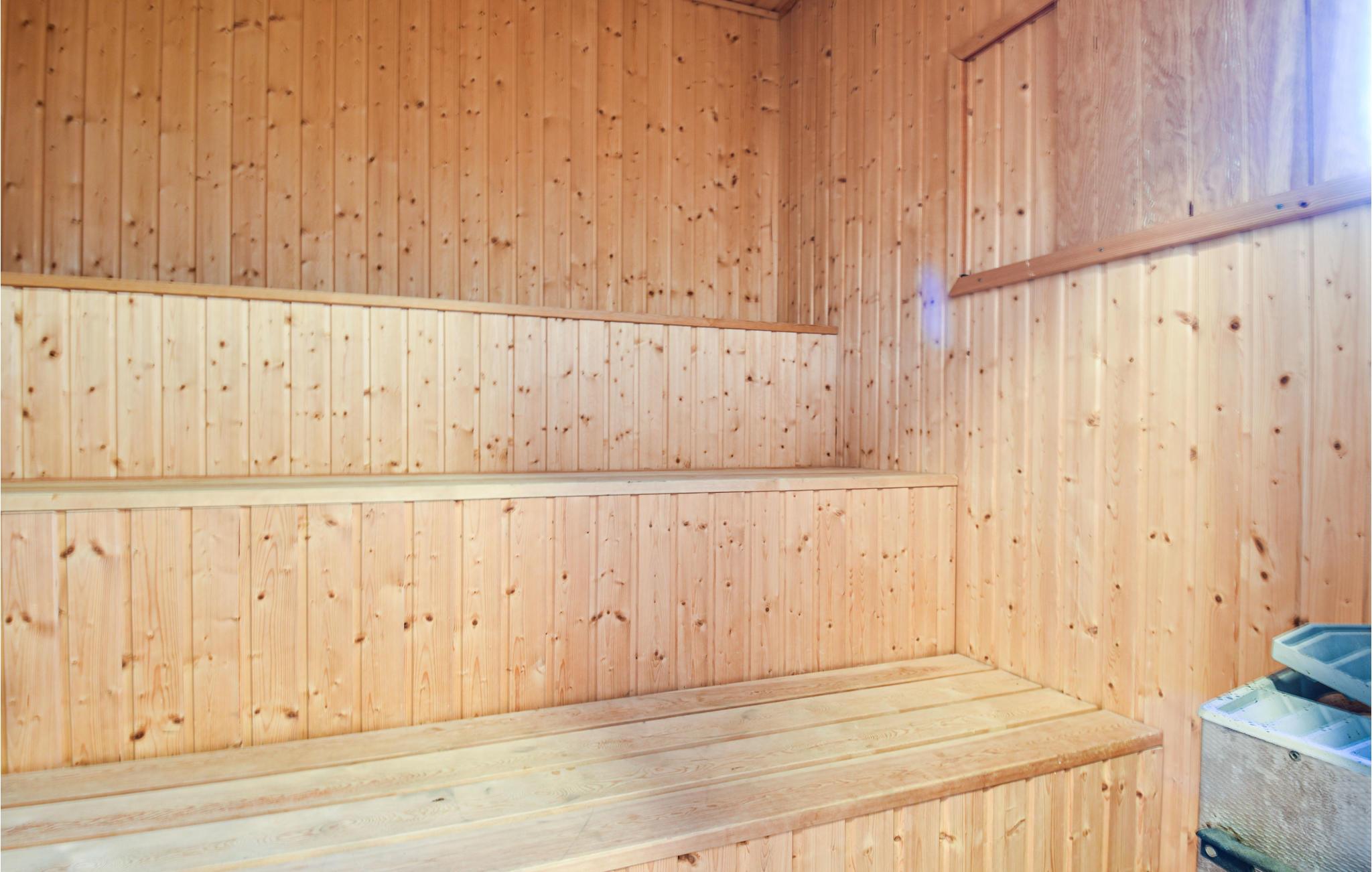 Denne unikke, store og arkitekttegnede feriebolig ligger landligt kun 3 km udenfor Holstebro. Her har I idyllen fra landet og samtidig byens muligheder lige rundt om hjørnet. Huset, med sine imponerende 550 m², danner perfekte rammer for den helt store aktive familieferie. Huset har en kæmpestor swimmingpoolafdeling med en intet mindre end 40 m² stor, oval swimmingpool, standvandsspa til 8 personer og en meget rummelig sauna. Der er omklædningsrum med bruser og et badeværelse tilknyttet poolrummet.