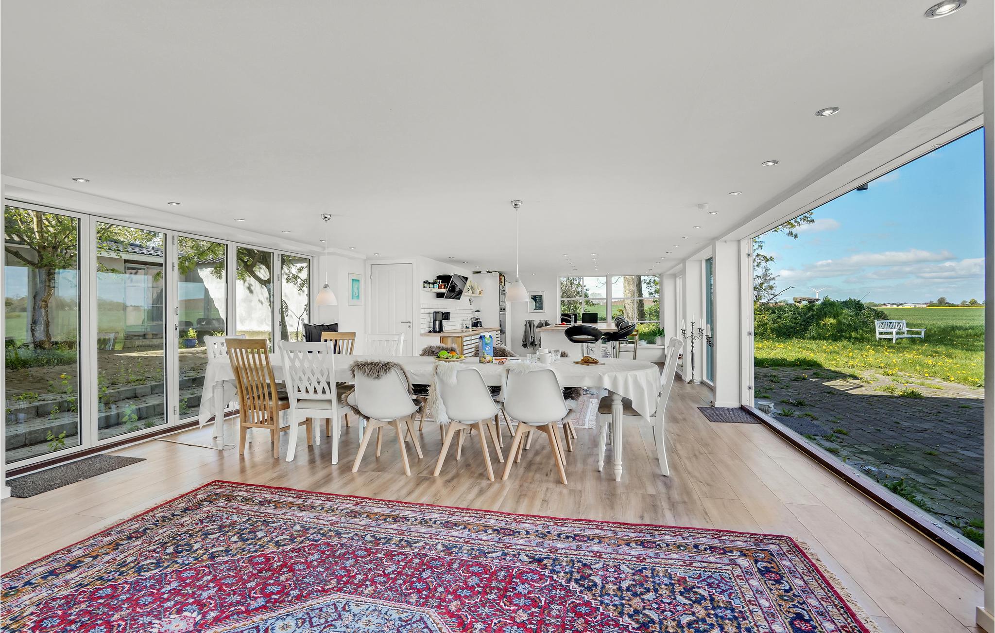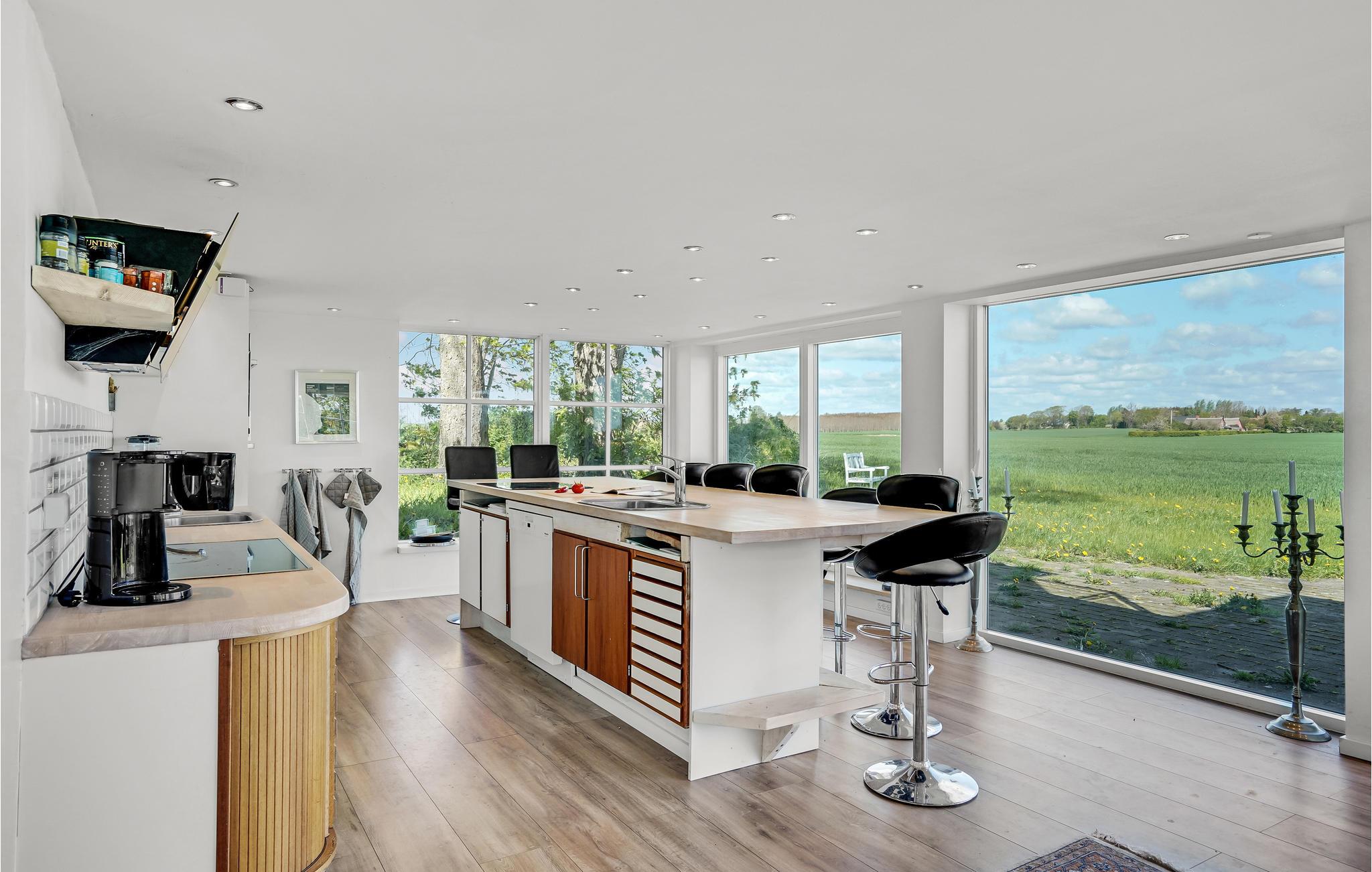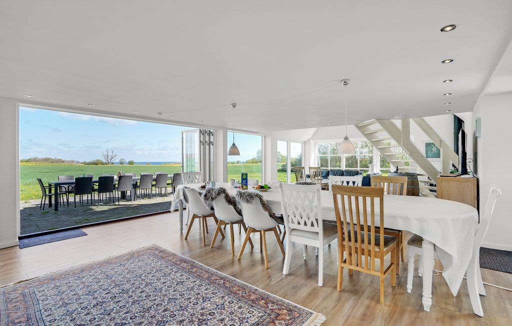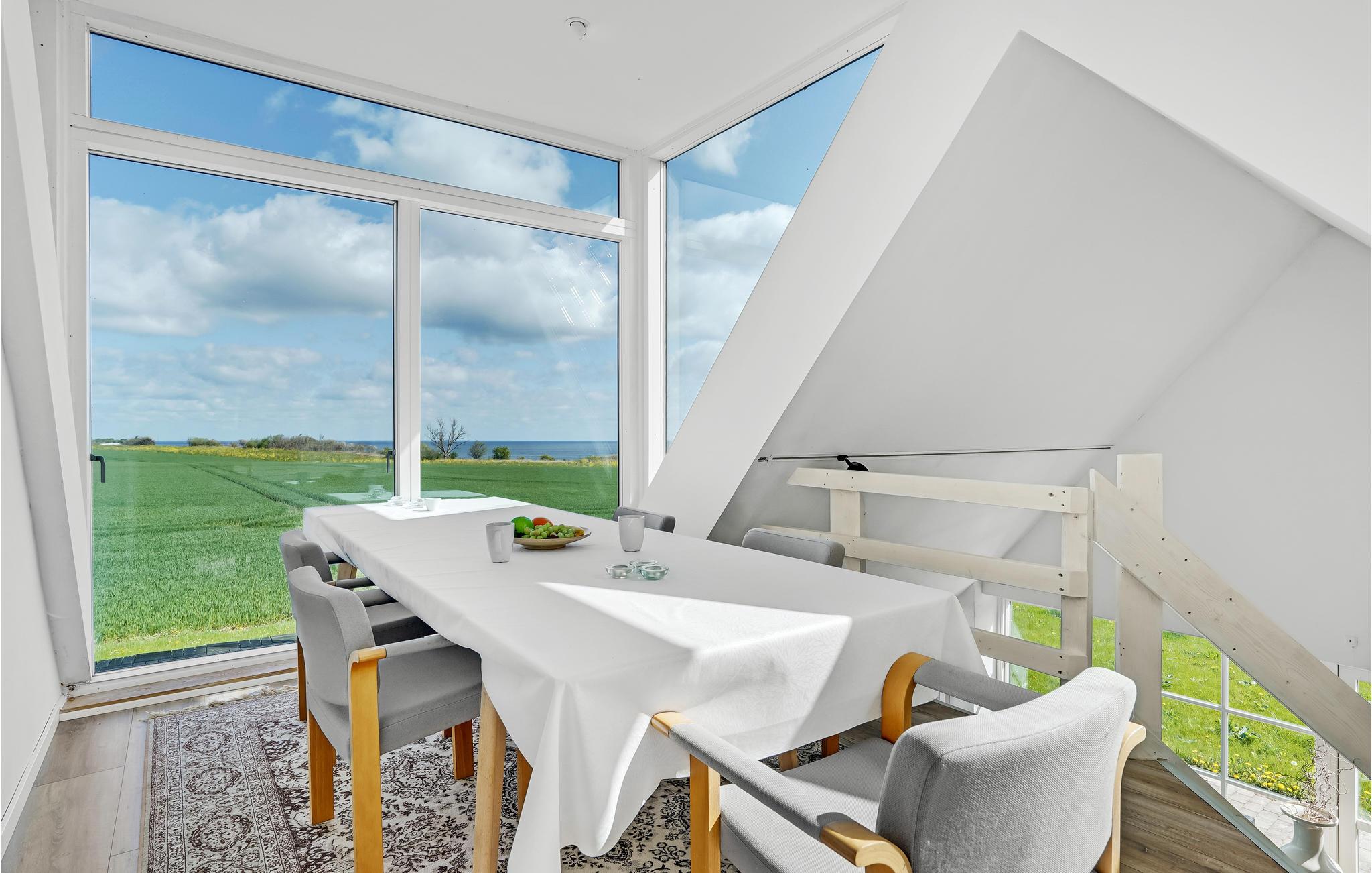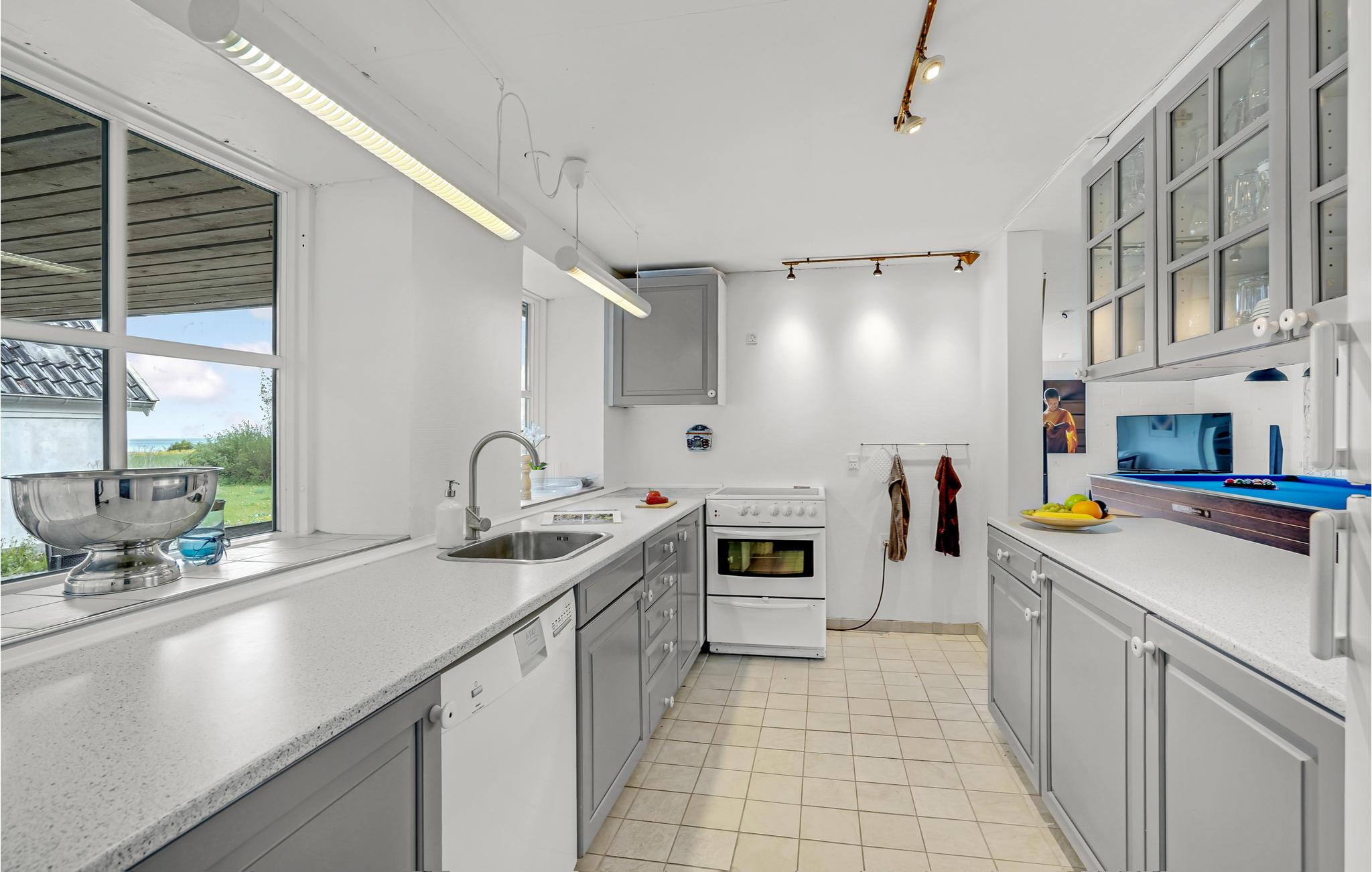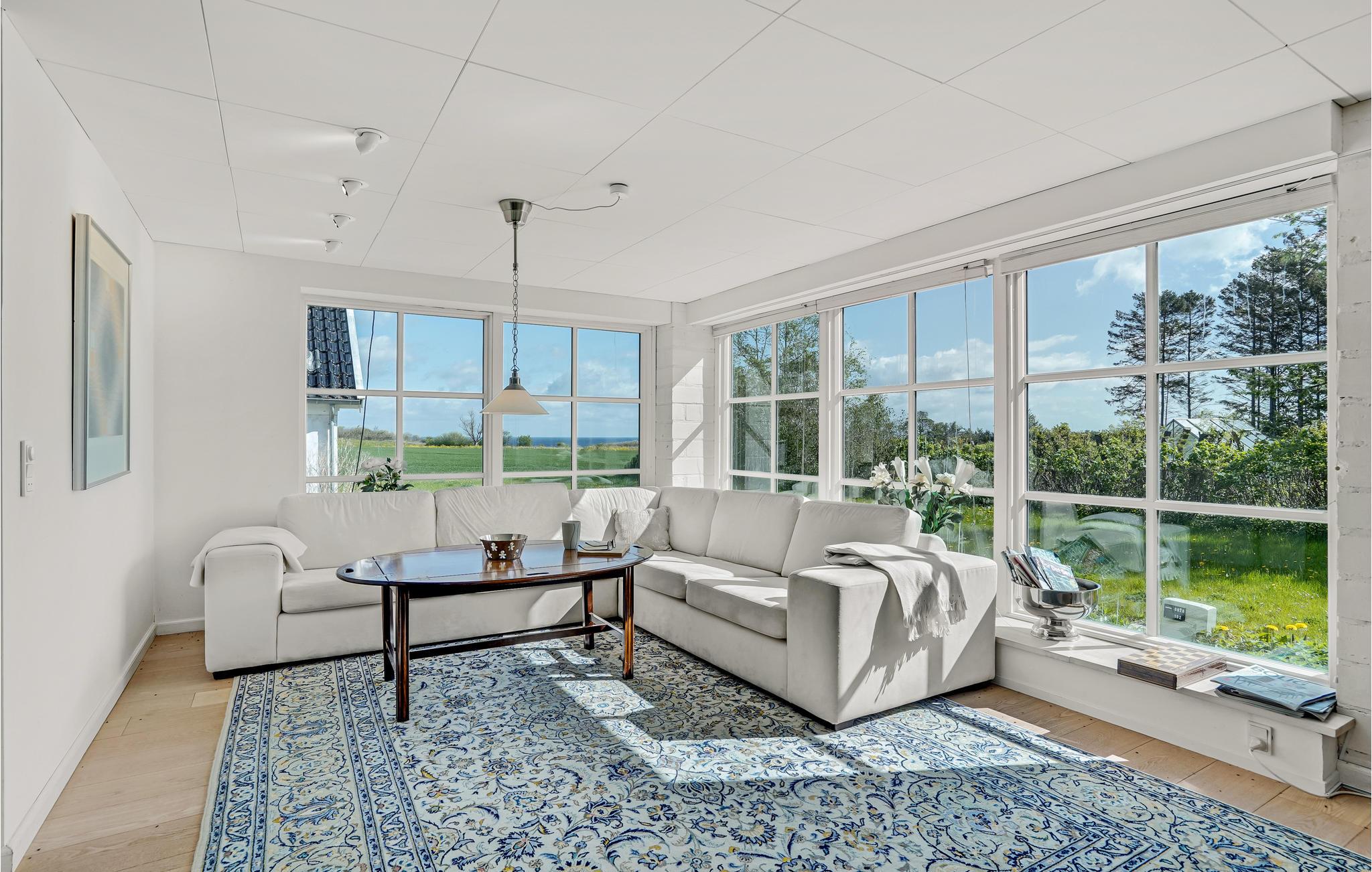 Velkommen indenfor i dette smagfuldt indrettede feriehus med stilfulde møbler. Her kan du hygge dig ved den lune pejs eller med et glas vin i stuen. Den originale, moderne udformning af rummene giver masser af plads og en behagelig atmosfære. Takket være de store vinduesfronter kommer der utroligt meget lys ind, hvilket bidrager til den afslappede, naturnære stemning. Alle gæster får noget for pengene her, ikke mindst i aktivitetsrummet, hvor et poolbord venter på dig. Udenfor er der en rummelig terrasse samt havemøbler og en grill, som inviterer til at nyde morgenmaden i det fri og afslutte dagene med grillmad og havudsigt.