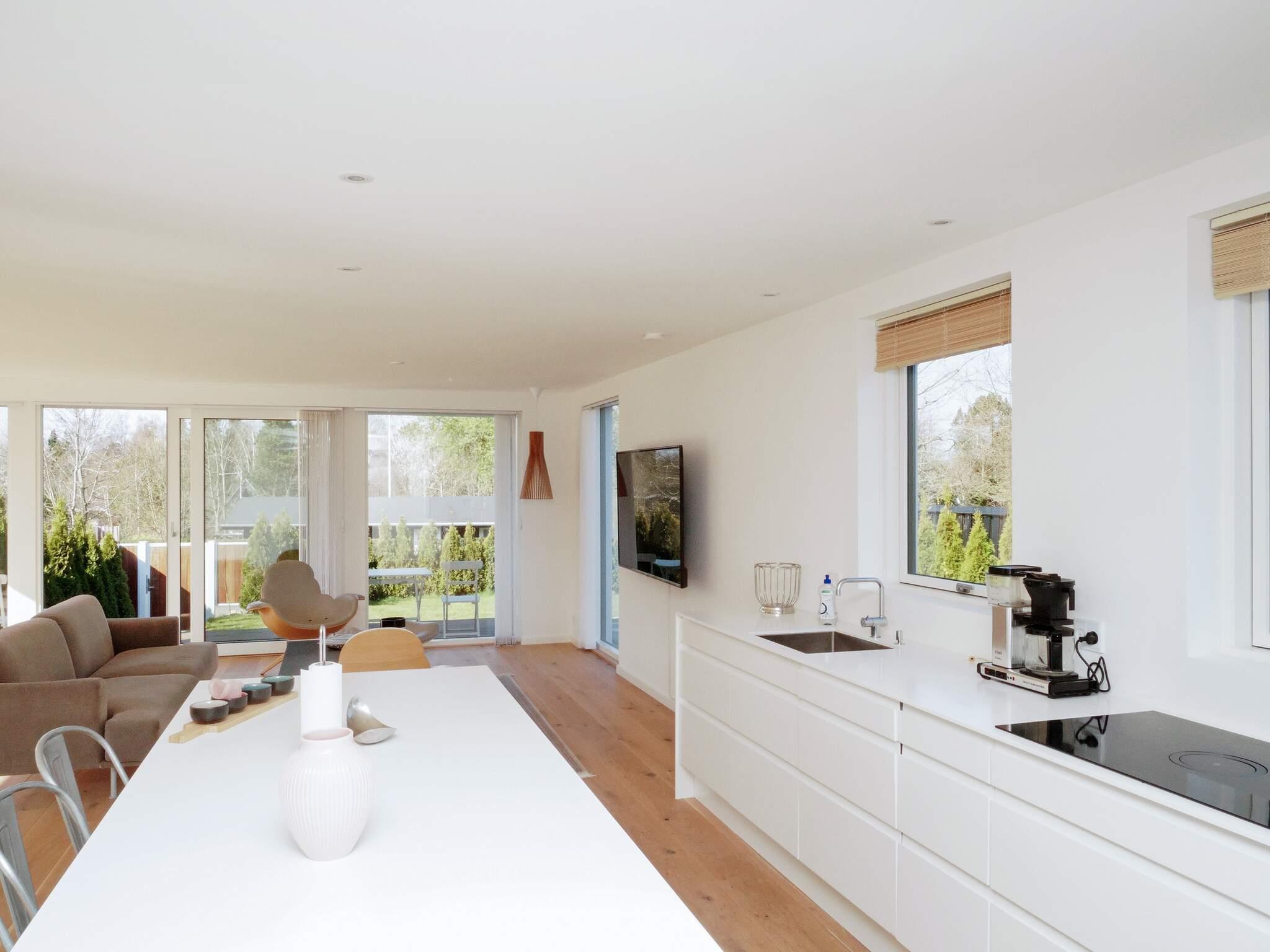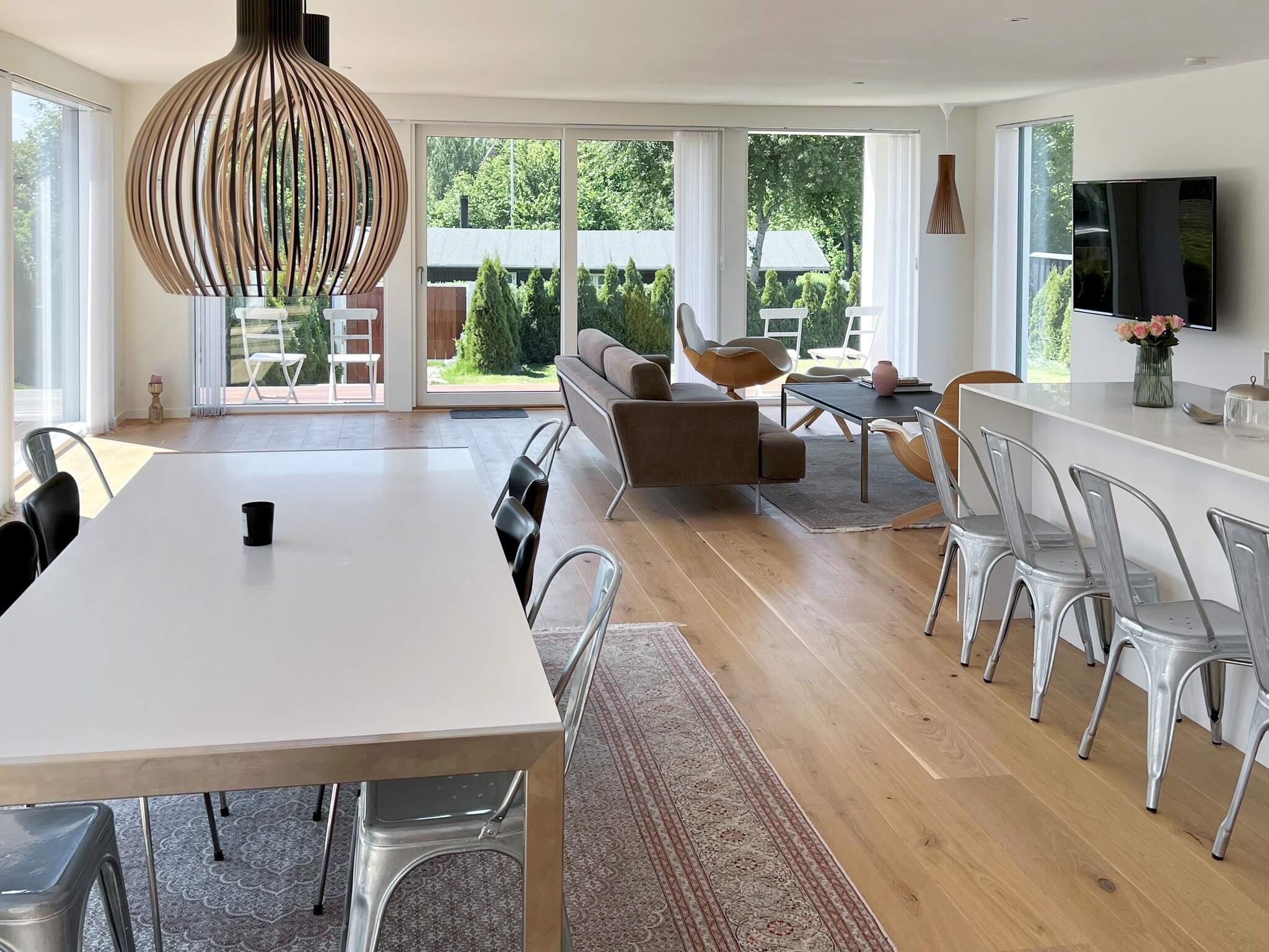 Eksklusivt sommerhus med opvarmet udendørs pool til uforglemmelige sommerdage i Hornbæk. Huset ligger i et populært ferieområde og byder på moderne komfort i lys skandinavisk stil. I hjertet af hjemmet er det rummelige åbne køkken og opholdsstue, indrettet med fjernsyn og Chromecast til streaming, Bluetooth-højttaler og WiFi. Dette er det perfekte sted at lave mad, spise, lege eller slappe af sammen. Køkkenet er veludstyret med induktionskomfur med indbygget emhætte, ovn, stort køleskab, fryser, kaffemaskine og opvaskemaskine. Der er tre soveværelser med dobbeltsenge samt to moderne badeværelser med bruseniche, gulvvarme og kombineret vaskemaskine tørretumbler.