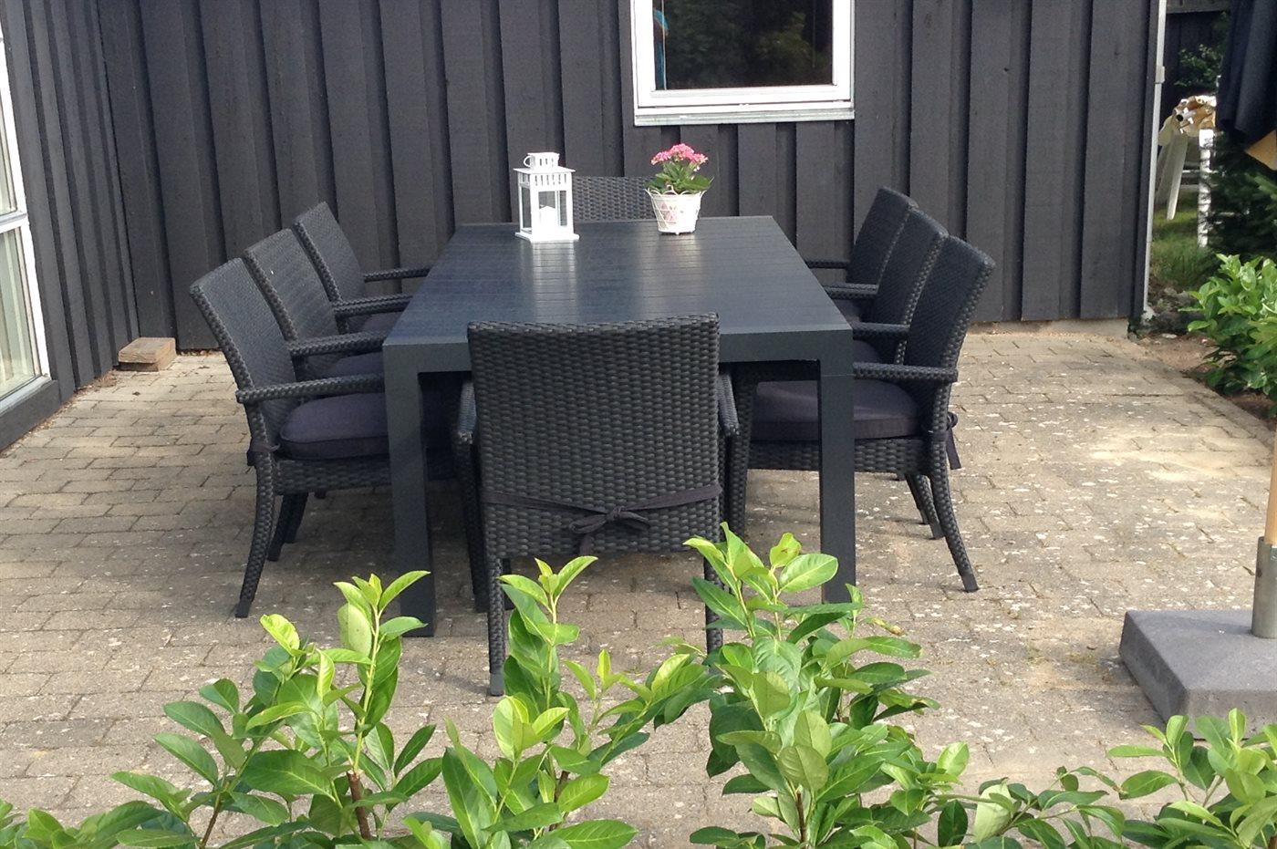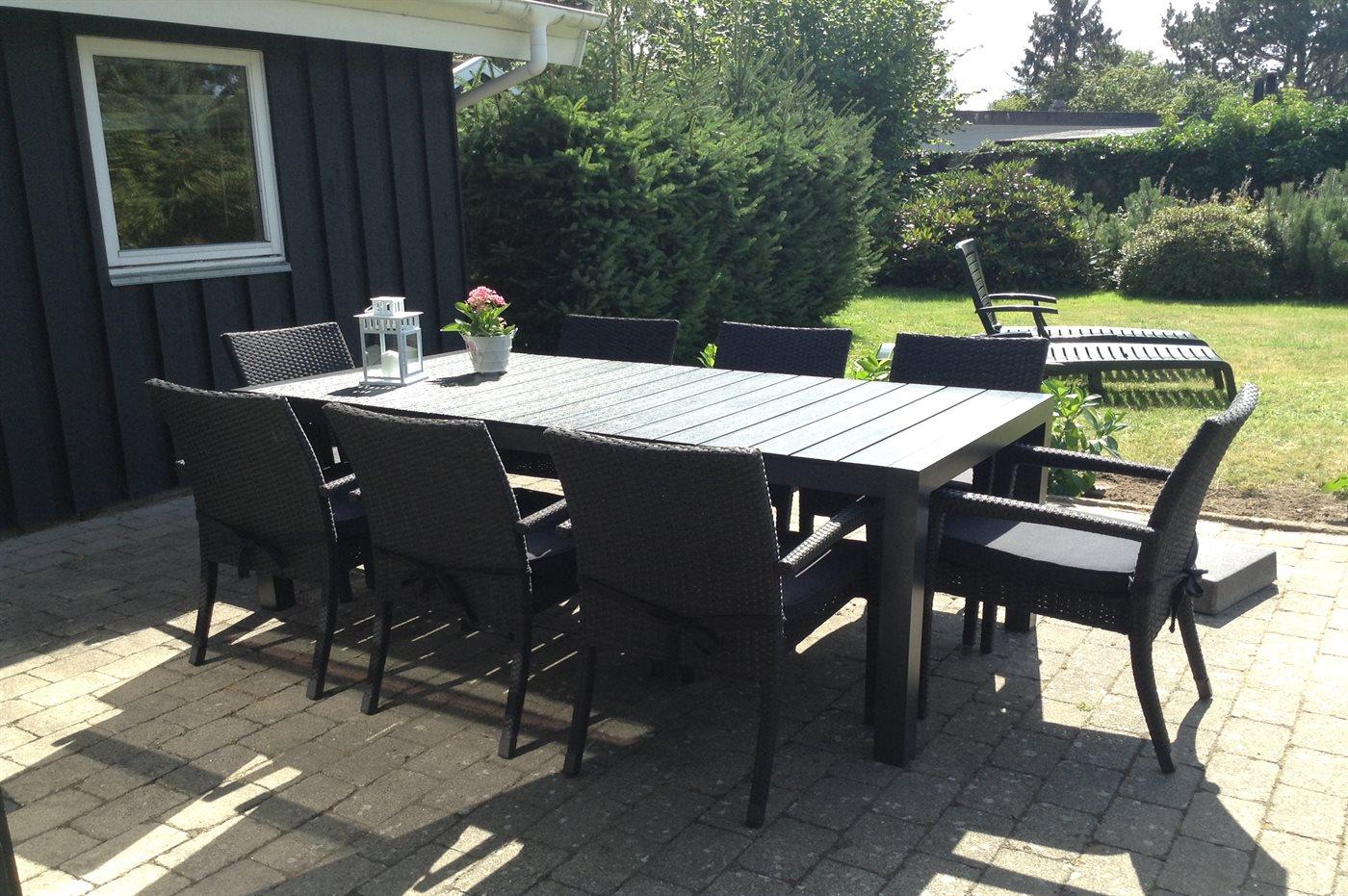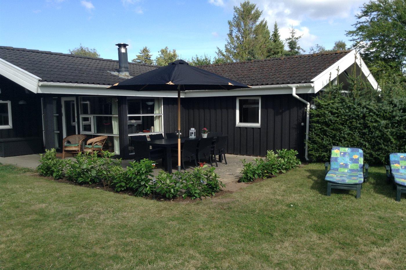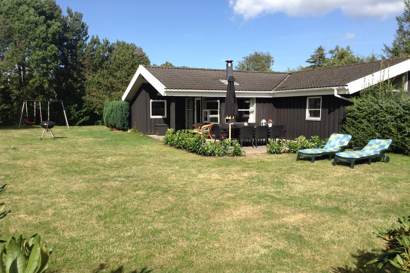 Ferieboligen er beliggende på en 994 m² stor havegrund. Grunden er indhegnet. Der er 250 m til havet. Der er en badebro i nærheden. Nærmeste forretning er beliggende i en afstand af 1200 m. Til ferieboligen hører 21 m² terrasseareal. Desuden er der 12 m² overdækket terrasse. Gynge. Grill til rådighed. Parkering ved ferieboligen.