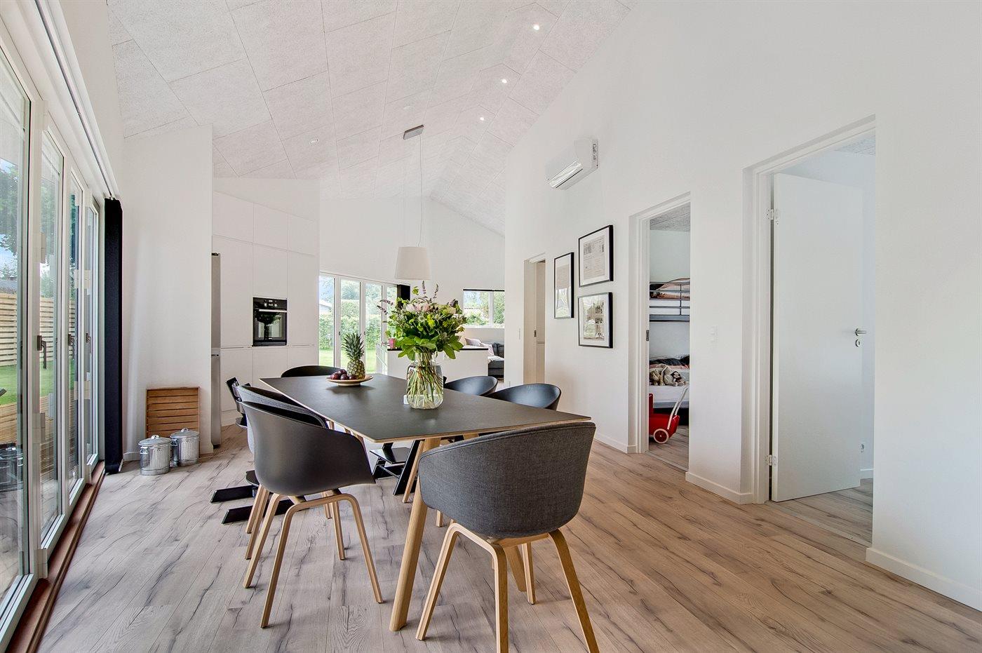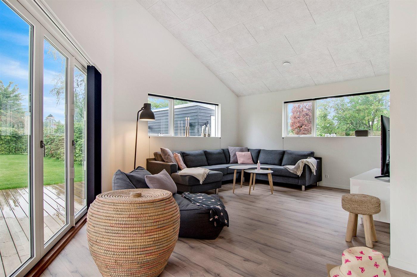 Moderne sommerhus i Hornbæk med energivenlige løsninger og stor terrasse nær havet.