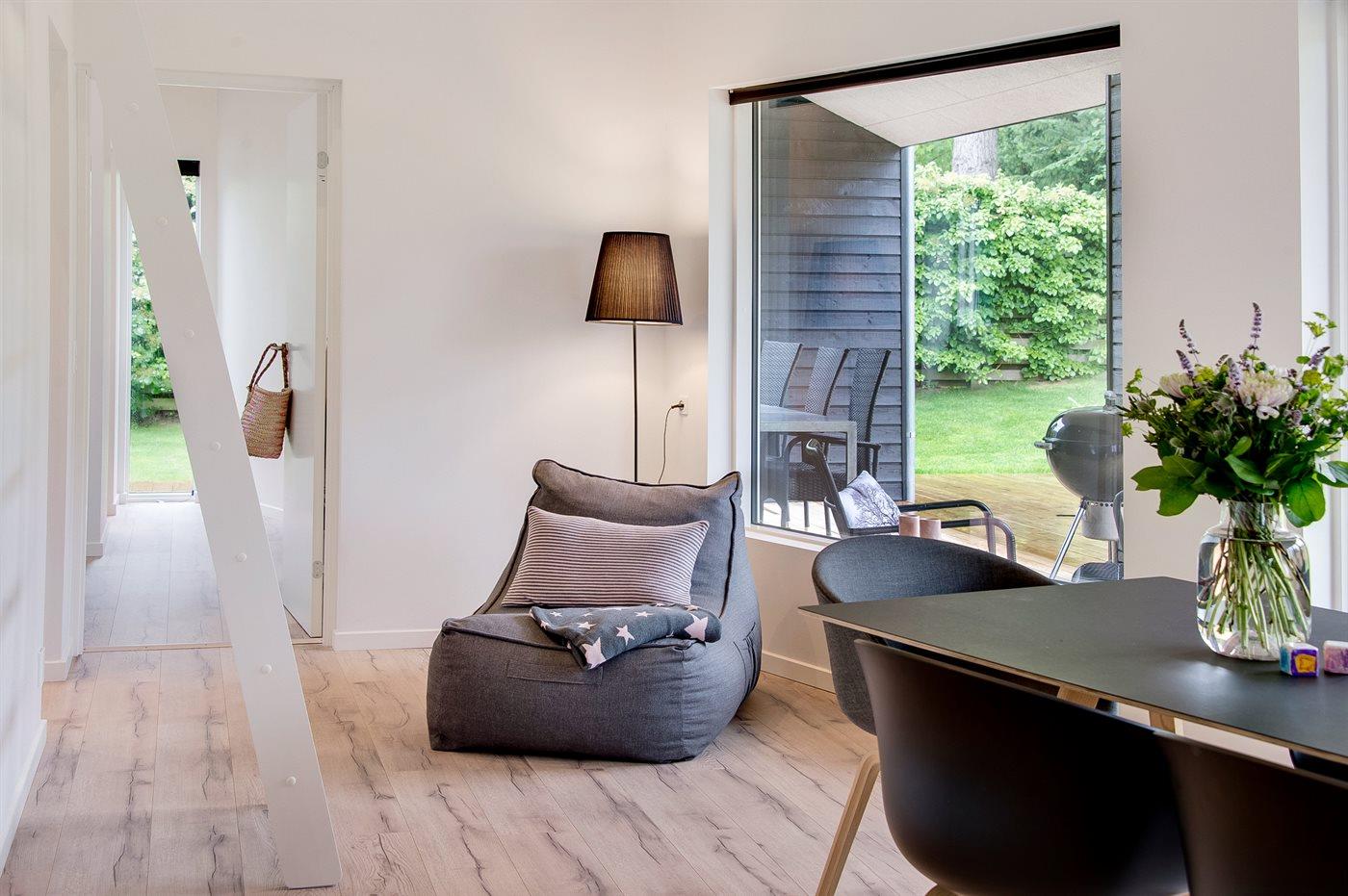 Et lækkert og topmoderne sommerhus med en attraktiv beliggenhed. Bemærk: Udover de 3 soveværelser er huset indrettet med hems, hvor der findes 2 madrasser.