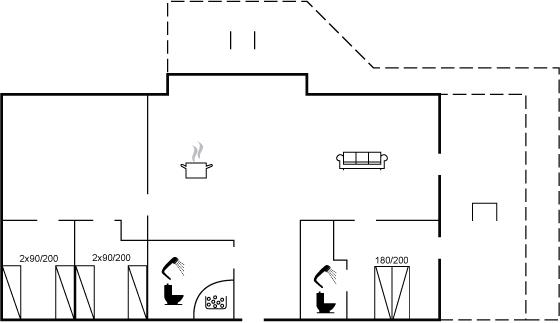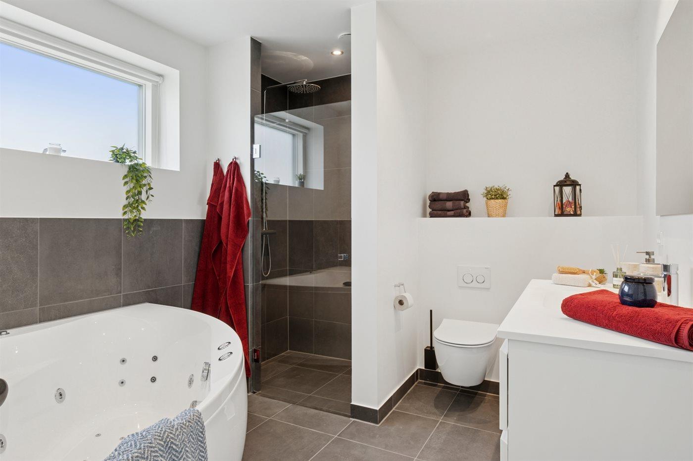 Der er 2 badeværelser med bruseniche og 2 toiletter. Der er gulvvarme på 2 badeværelser.