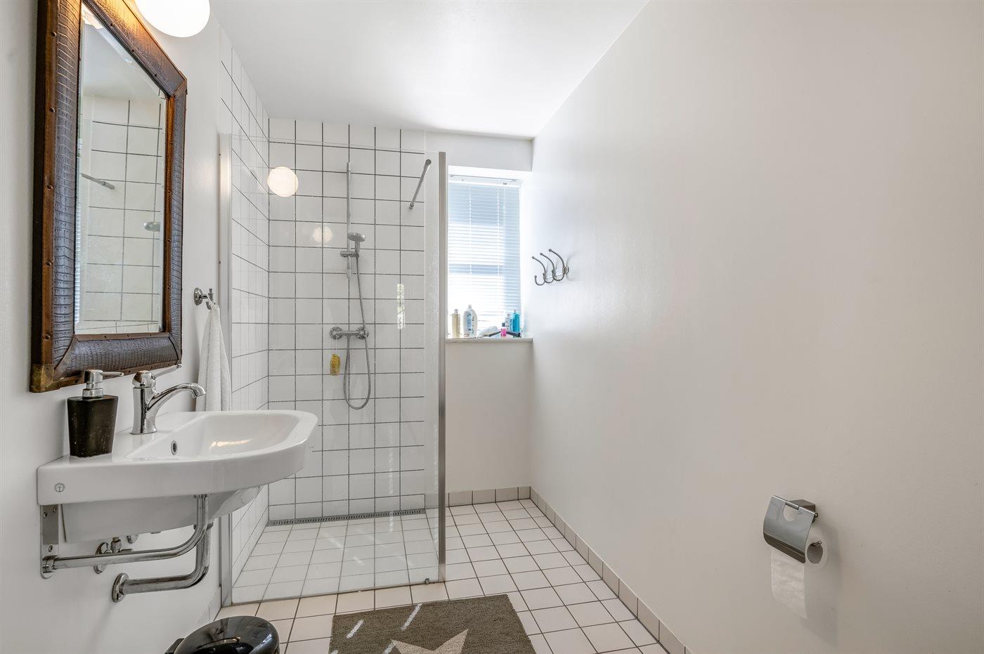 Der er 2 badeværelser med bruseniche og 2 toiletter. Der er gulvvarme på 2 badeværelser.