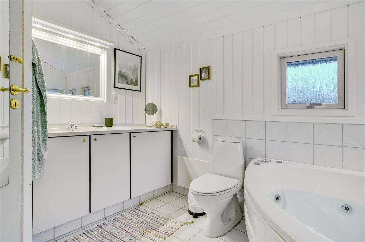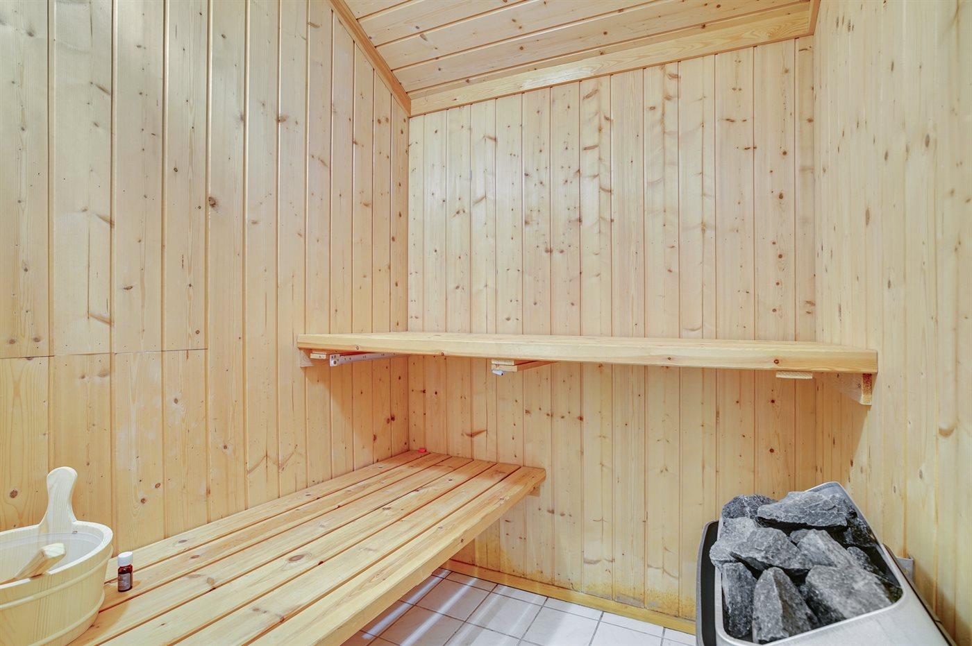 Der er 2 badeværelser med bruseniche og 2 toiletter. Der er gulvvarme på 2 badeværelser. I saunaen er der mulighed for afslapning.