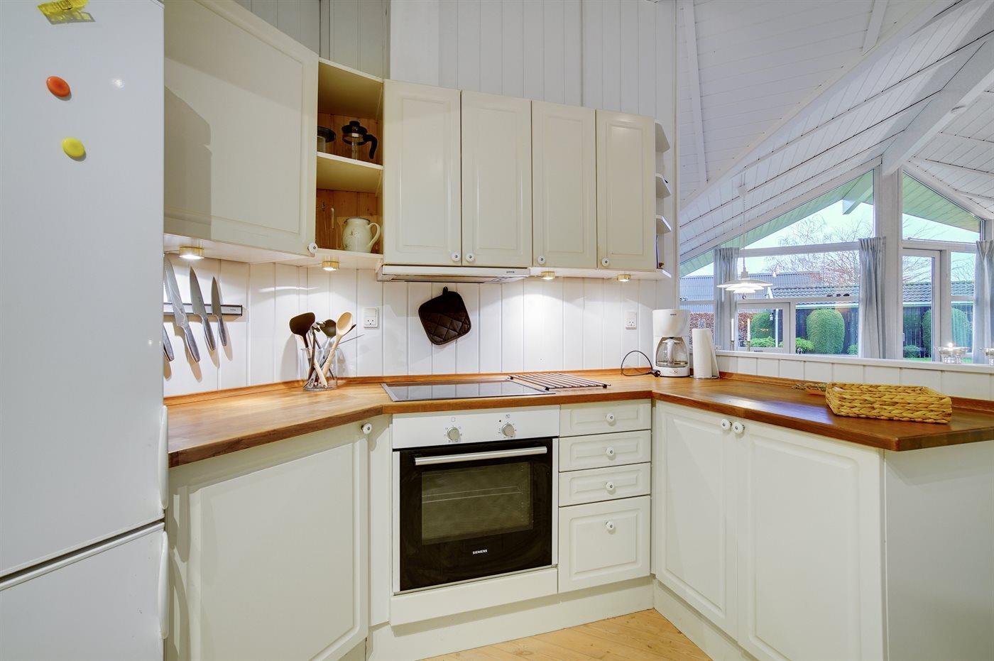 Køkkenet er udstyret med 1 køleskab. Der er 4 keramiske kogeplader, varmluftovn, mikrobølgeovn samt opvaskemaskine.