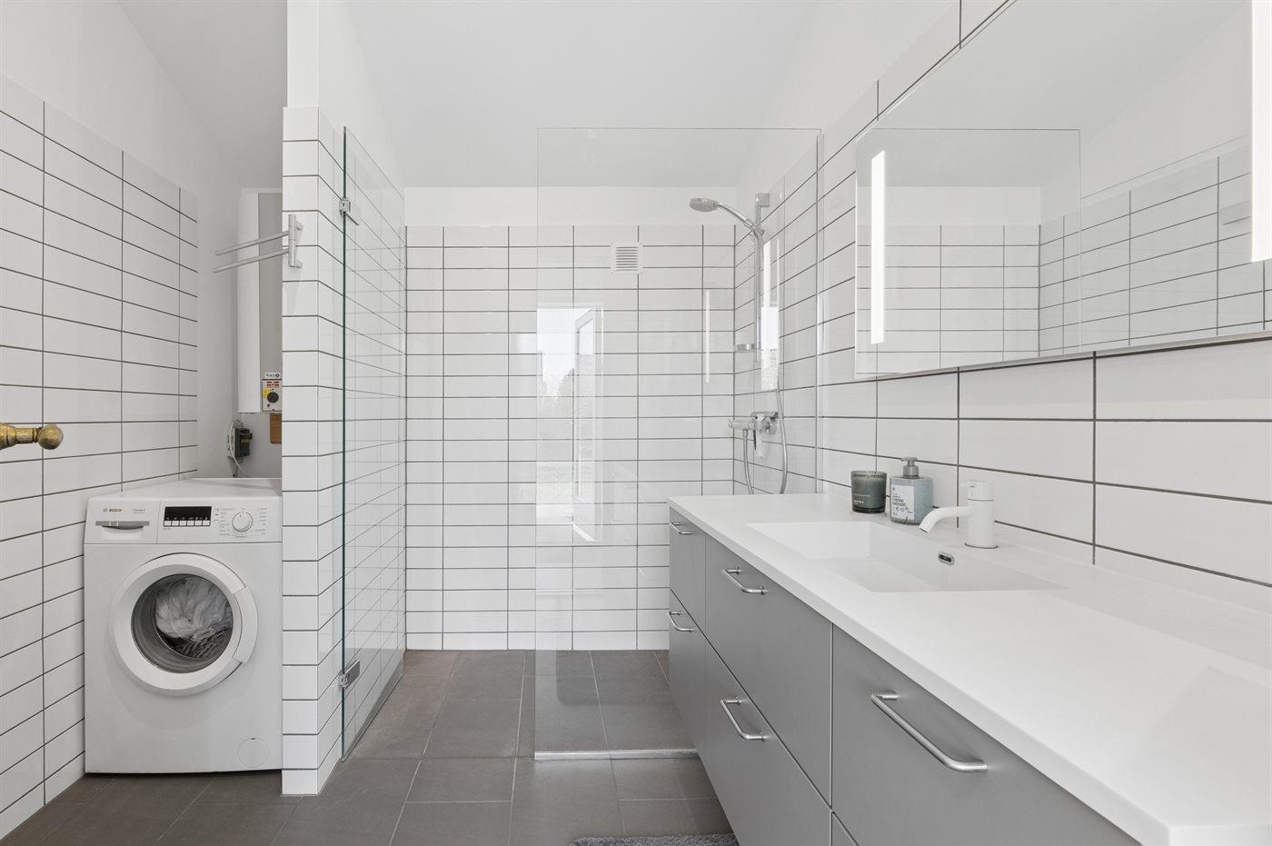 Der er 2 badeværelser med bruseniche og 2 toiletter. Der er gulvvarme på 2 badeværelser.