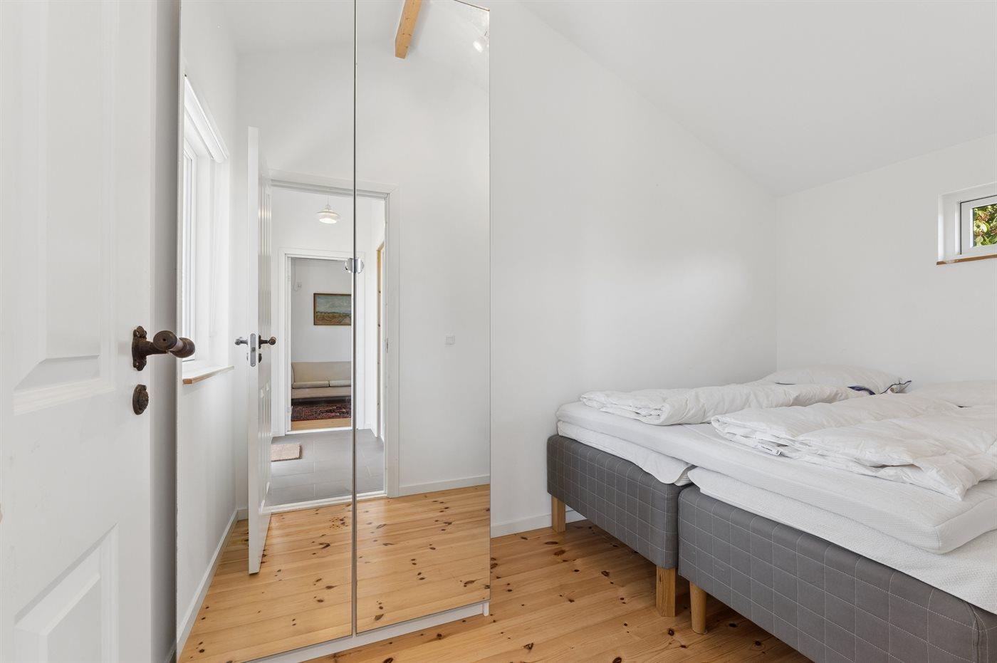 Der er i alt 5 soveværelser. Sovepladserne fordeler sig på: 8 sovepladser i dobbeltsenge. 1 soveplads i enkeltseng. 4 af disse sovepladser befinder sig i et anneks (fordelt på 2 soveværelser). Derudover er der 1 stk. barneseng.