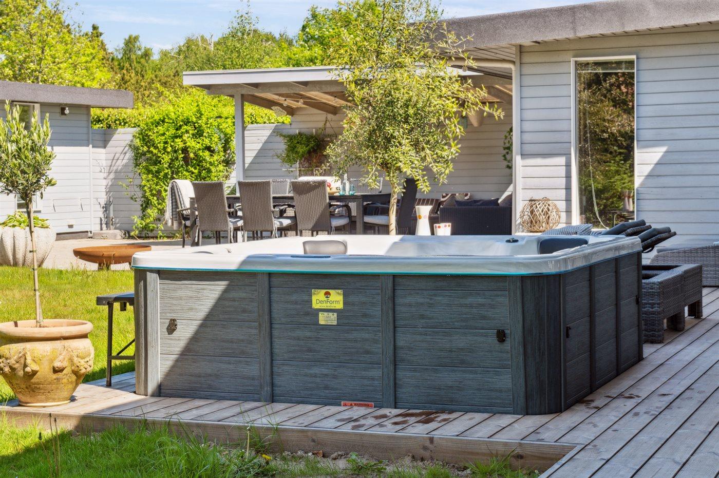 Der er mulighed for afslapning i udendørs standvandsspa til 5 personer.