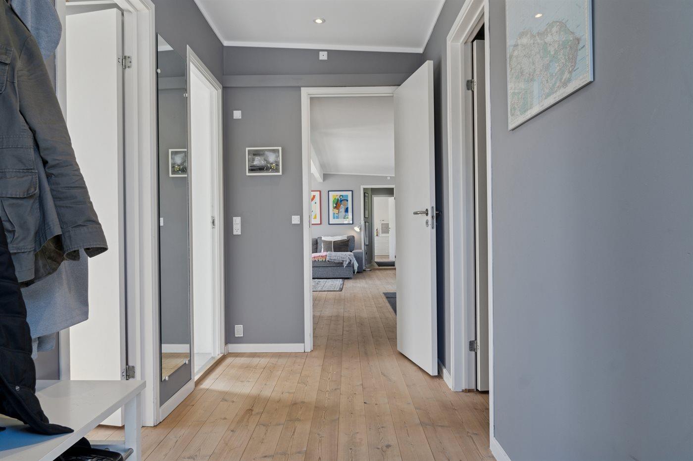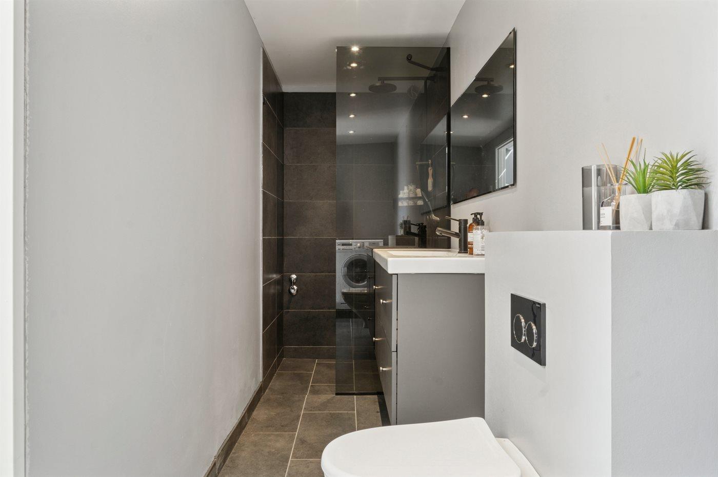 Der er 2 badeværelser med bruseniche og 2 toiletter. Der er gulvvarme på 2 badeværelser.