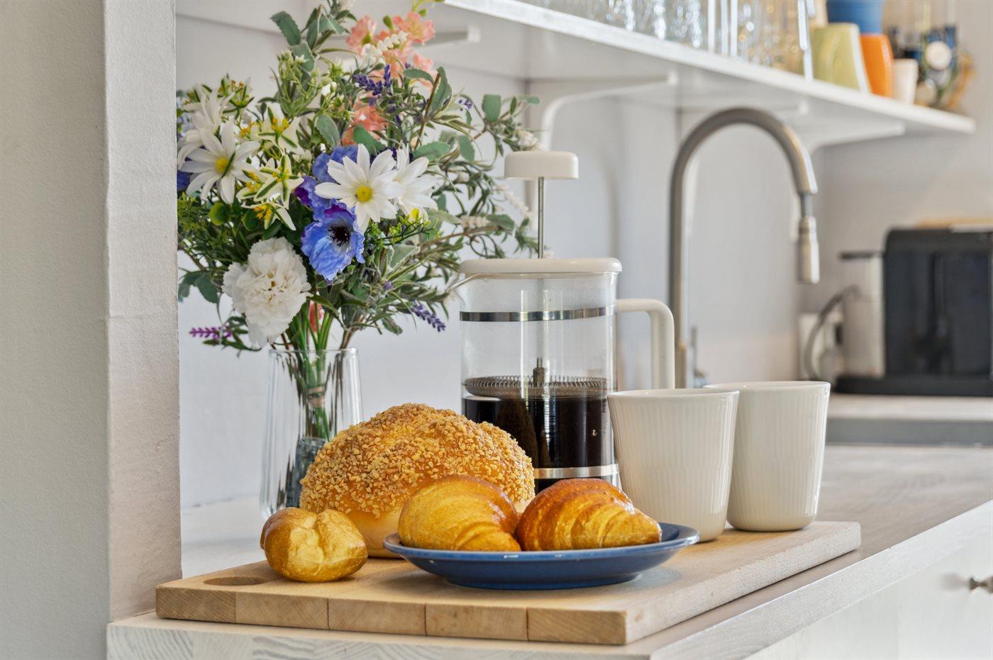 Huset har et stort køkken-alrum med plads til afslapning og hygge. Tre soveværelser og et badeværelse i hovedhuset. I annekset finder du soveværelser og eget badeværelse.